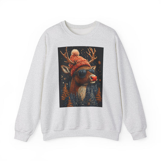 Rudolf Reindeer Sweatshirt — Red Hat & Glasses Holiday Crewneck
