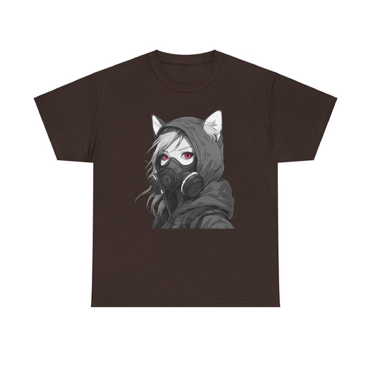 Futuristisches Anime Girl mit Gasmaske T-Shirt / Schwarzes Unisex Streetwear Shirt, Katzengirl Design, Geschenk für Anime- und Sci-Fi-Fans