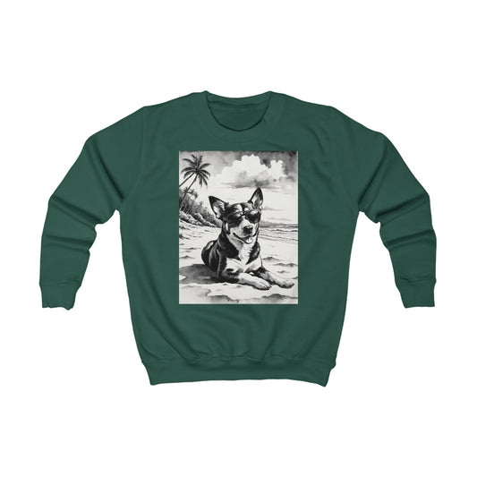 Kids Cool Beach Dog Sweatshirt Kinderbekleidung Lustiges Hundemotiv mit Sonnenbrille für Sommer Vibes Geschenk für Hundeliebhaber