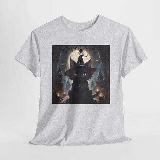 Halloween Witch Kitten Tee, Spooky Cute Shirt, Trick or Treat Costume Top, Black Cat Magic Tshirt, Creepy Kitty Outfit, Funny Holiday