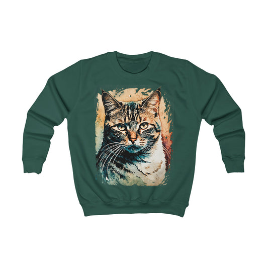 Wasserfarben Kunstwerk Katze / Detailliertes Katzenportrait in Wasserfarbenstil auf Sweatshirts / Künstlerisches Design für Katzenliebhaber