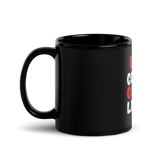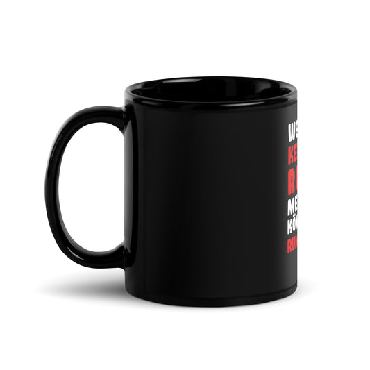 Black glossy mug "Dragon with Nordic ornaments calligraphy"