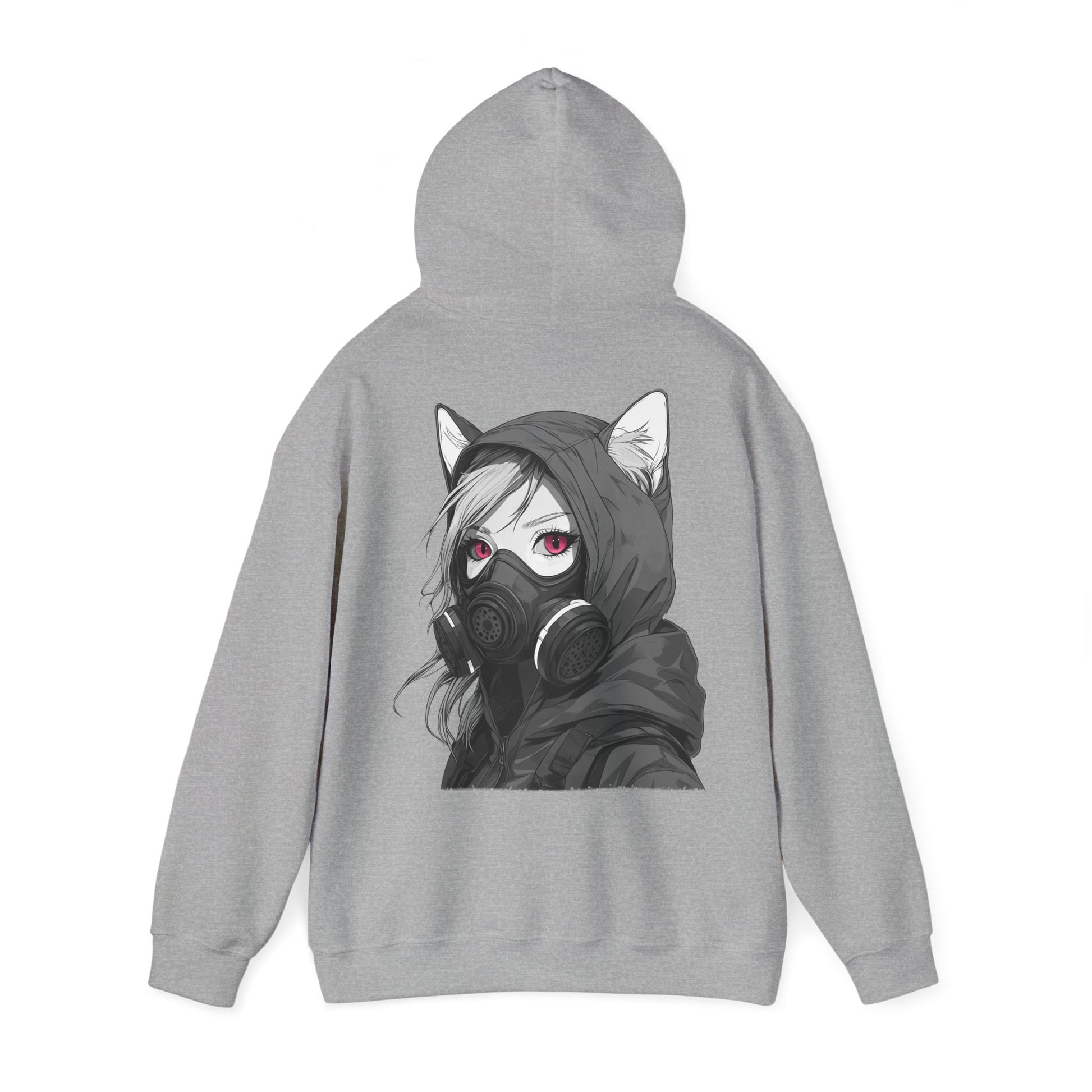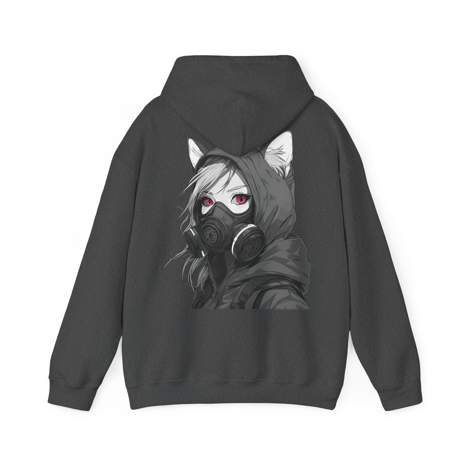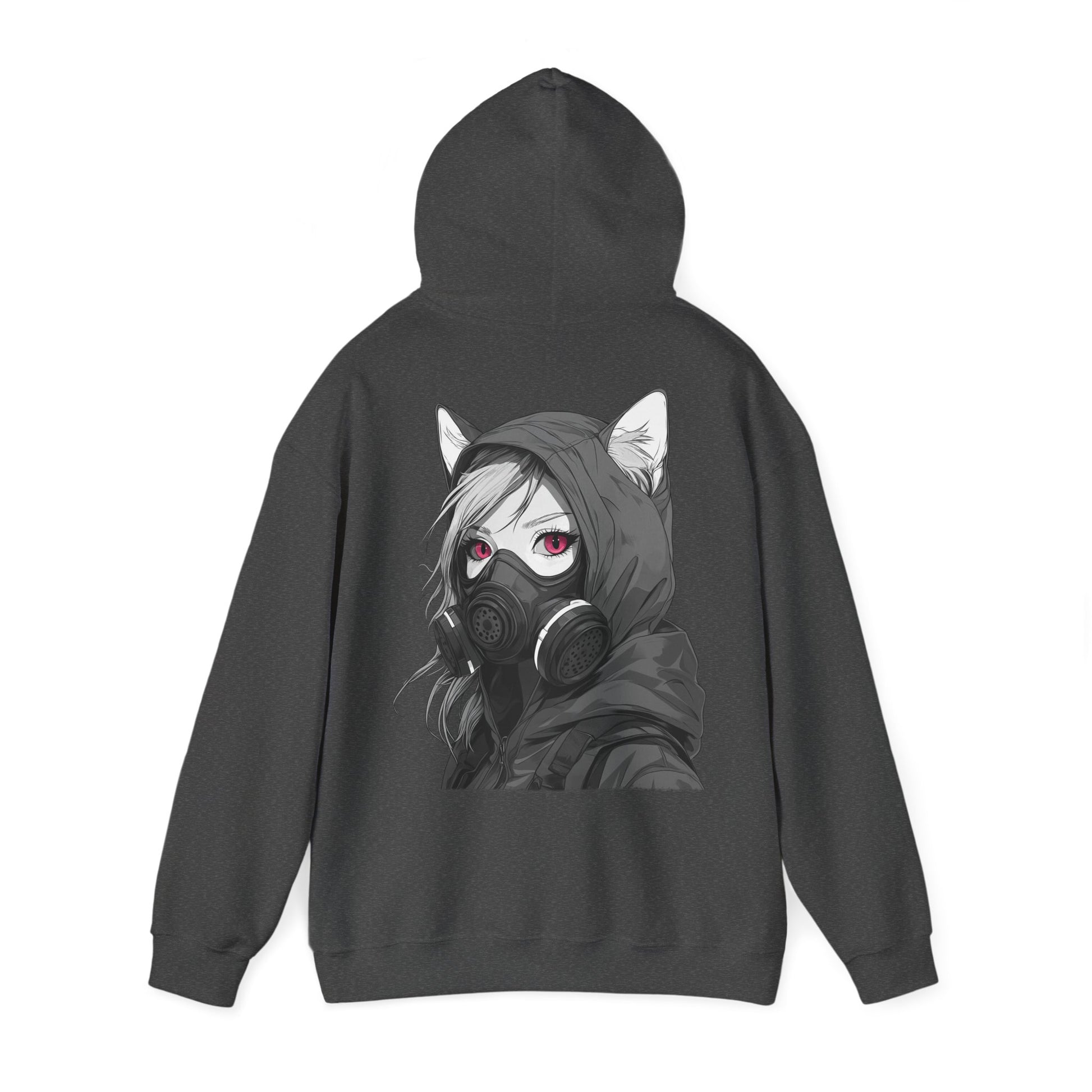 Anime Girl mit Gasmaske T-Shirt / Mask, Schwarzes Unisex Hoodie, Katzengirl Design, Geschenk für Anime- und Sci-Fi-Fans Unisex Heavy Blend™