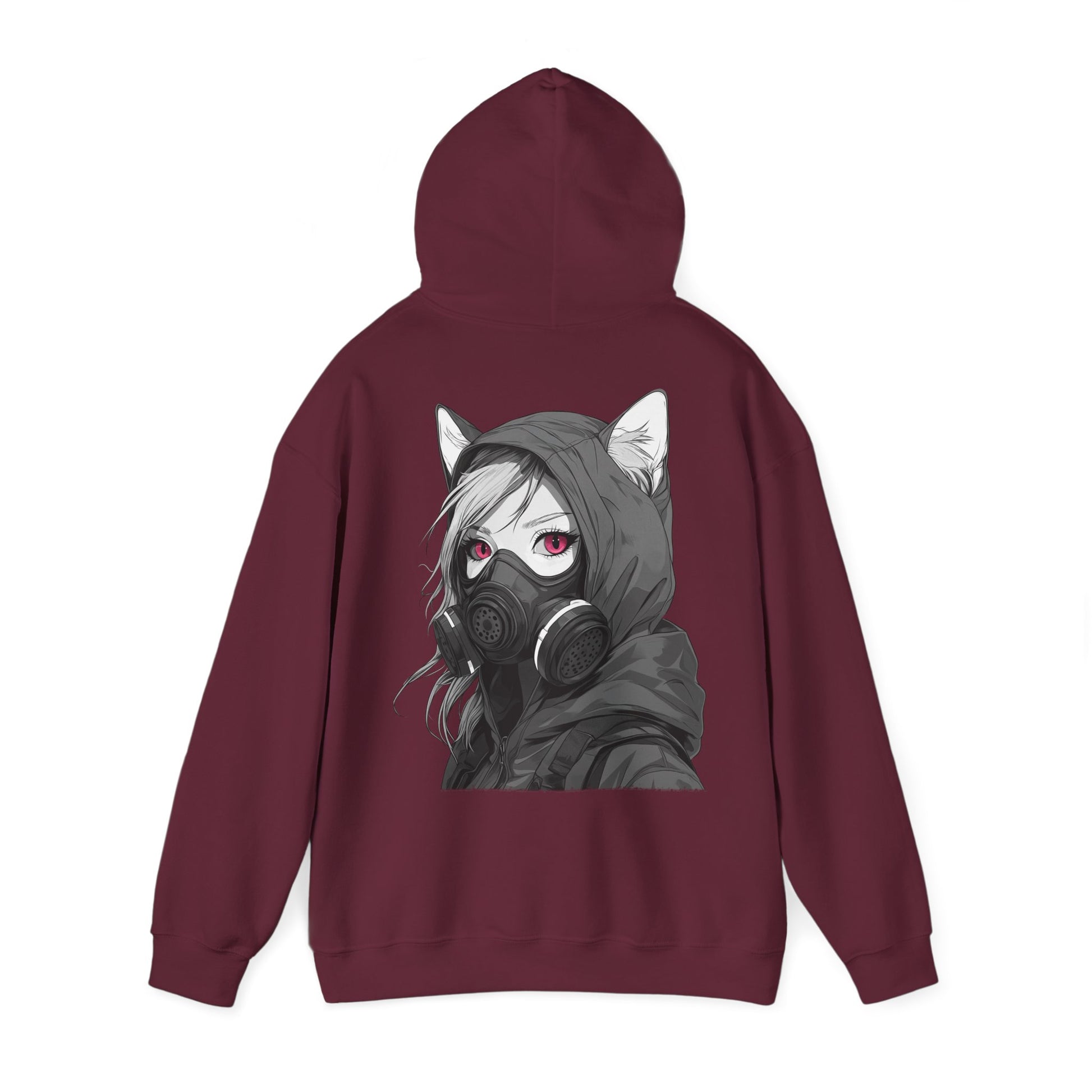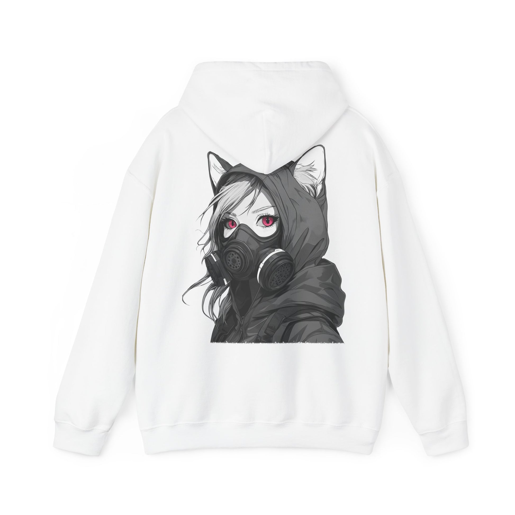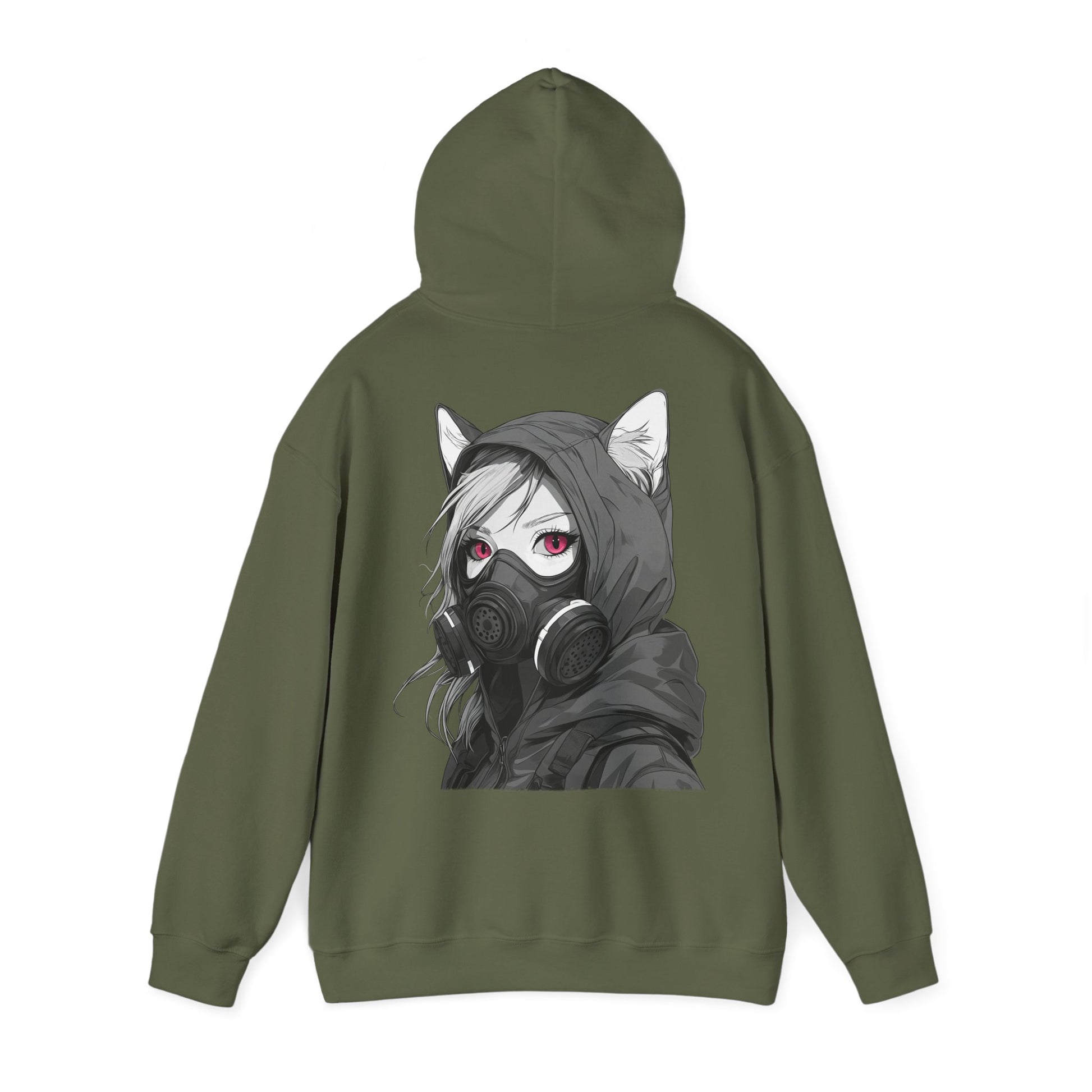Anime Girl mit Gasmaske T-Shirt / Mask, Schwarzes Unisex Hoodie, Katzengirl Design, Geschenk für Anime- und Sci-Fi-Fans Unisex Heavy Blend™