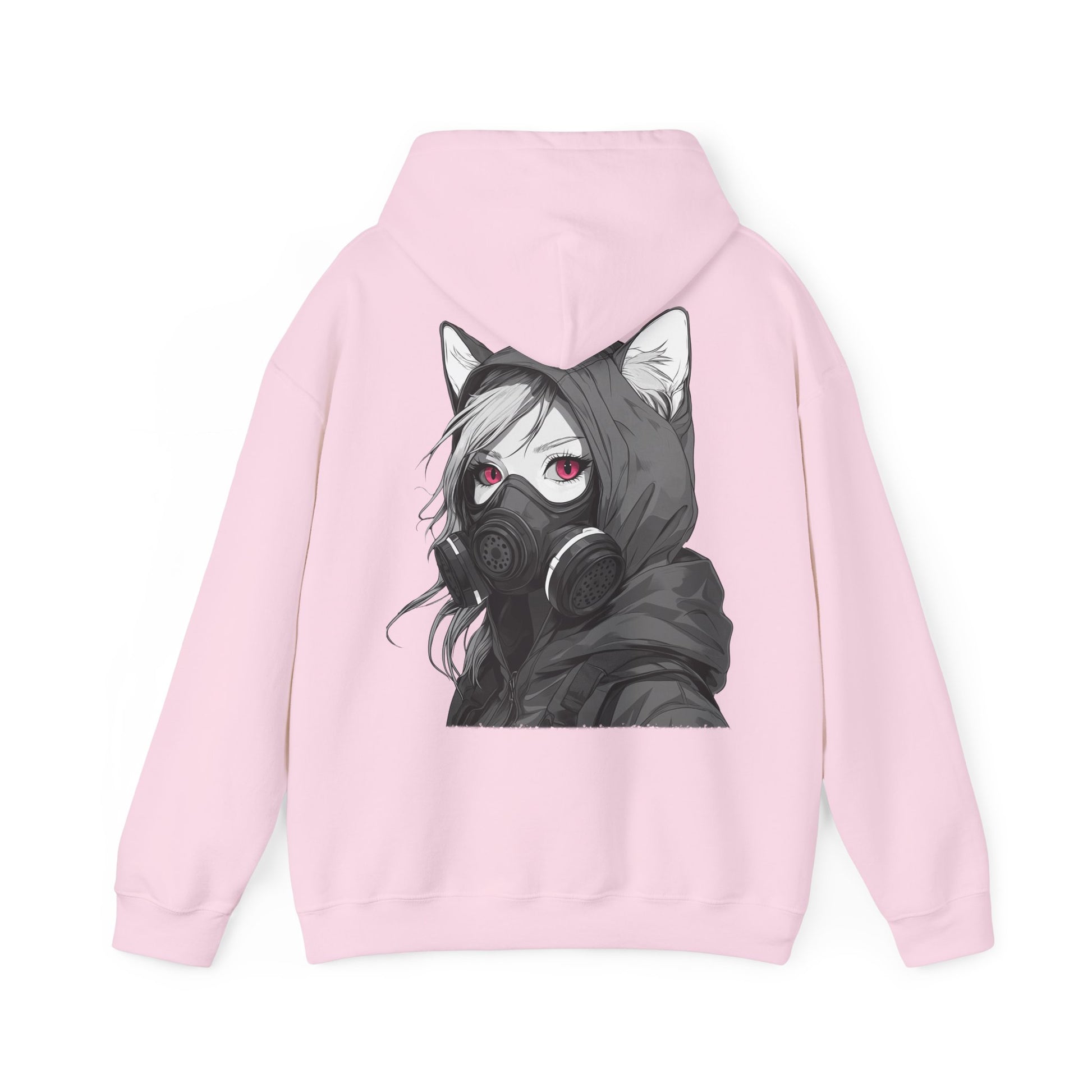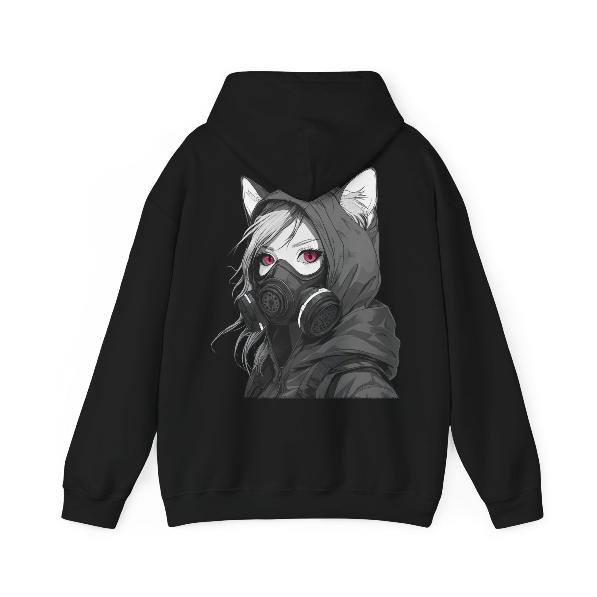 Anime Girl mit Gasmaske T-Shirt / Mask, Schwarzes Unisex Hoodie, Katzengirl Design, Geschenk für Anime- und Sci-Fi-Fans Unisex Heavy Blend™
