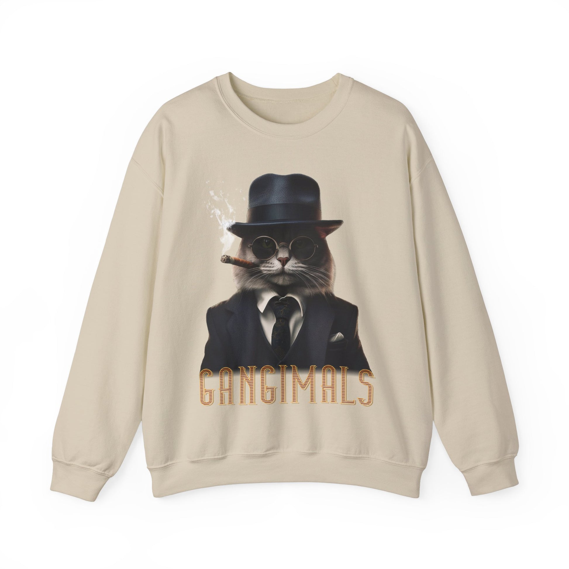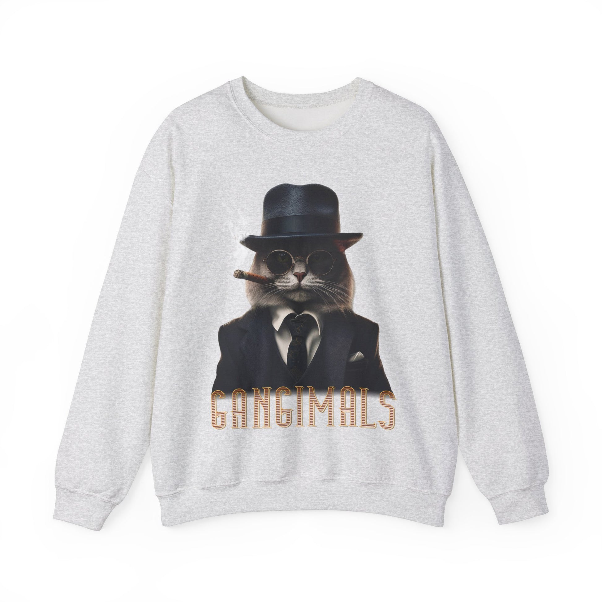 Cat Gangster Sweatshirt | Cool Cat in 1930s Suit Design, Unisex Crewneck Jumper, Gangimals Apparel, Vintage Feline Shirt, Animal Lover Gift