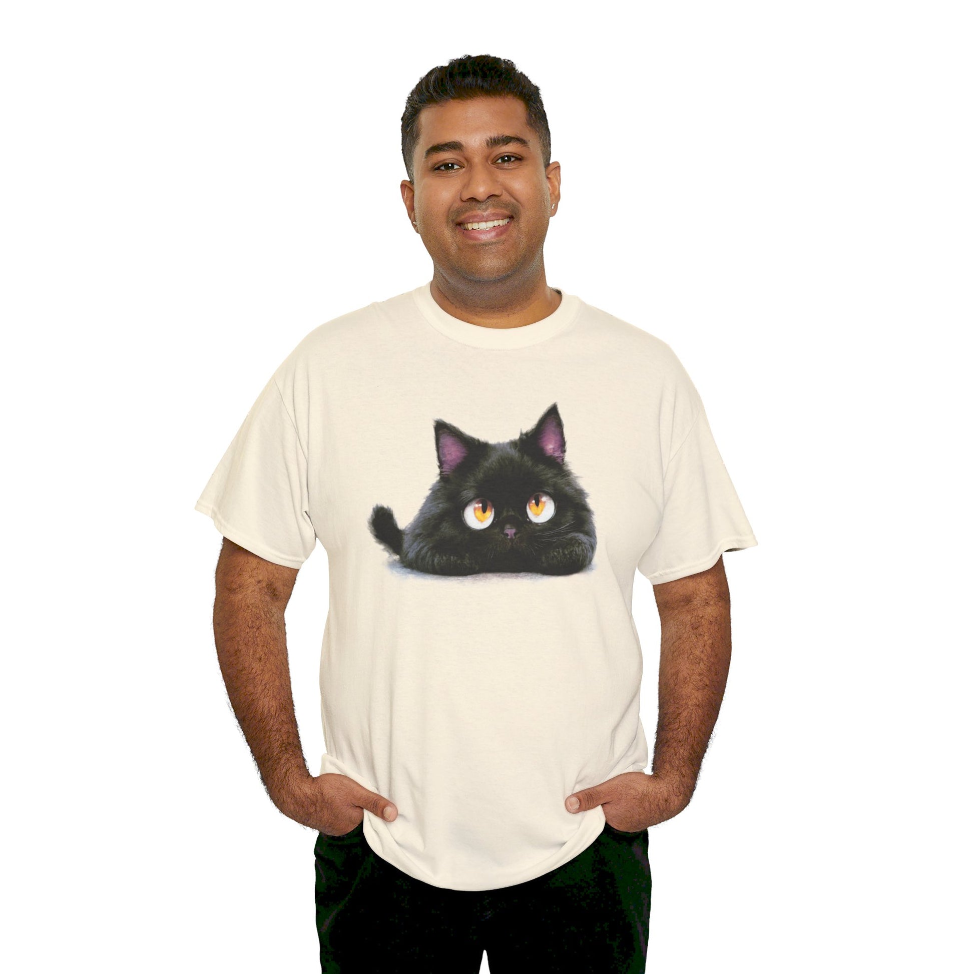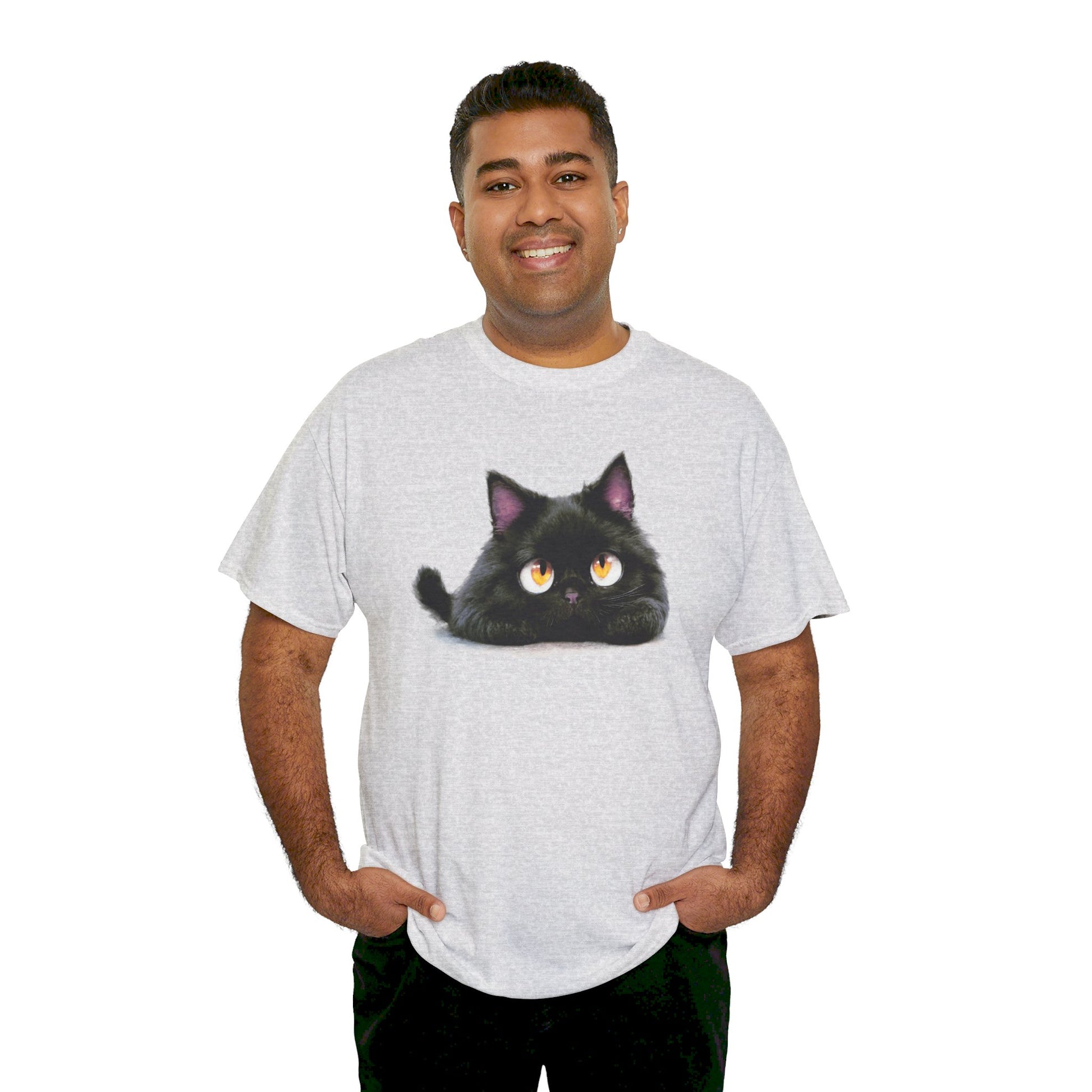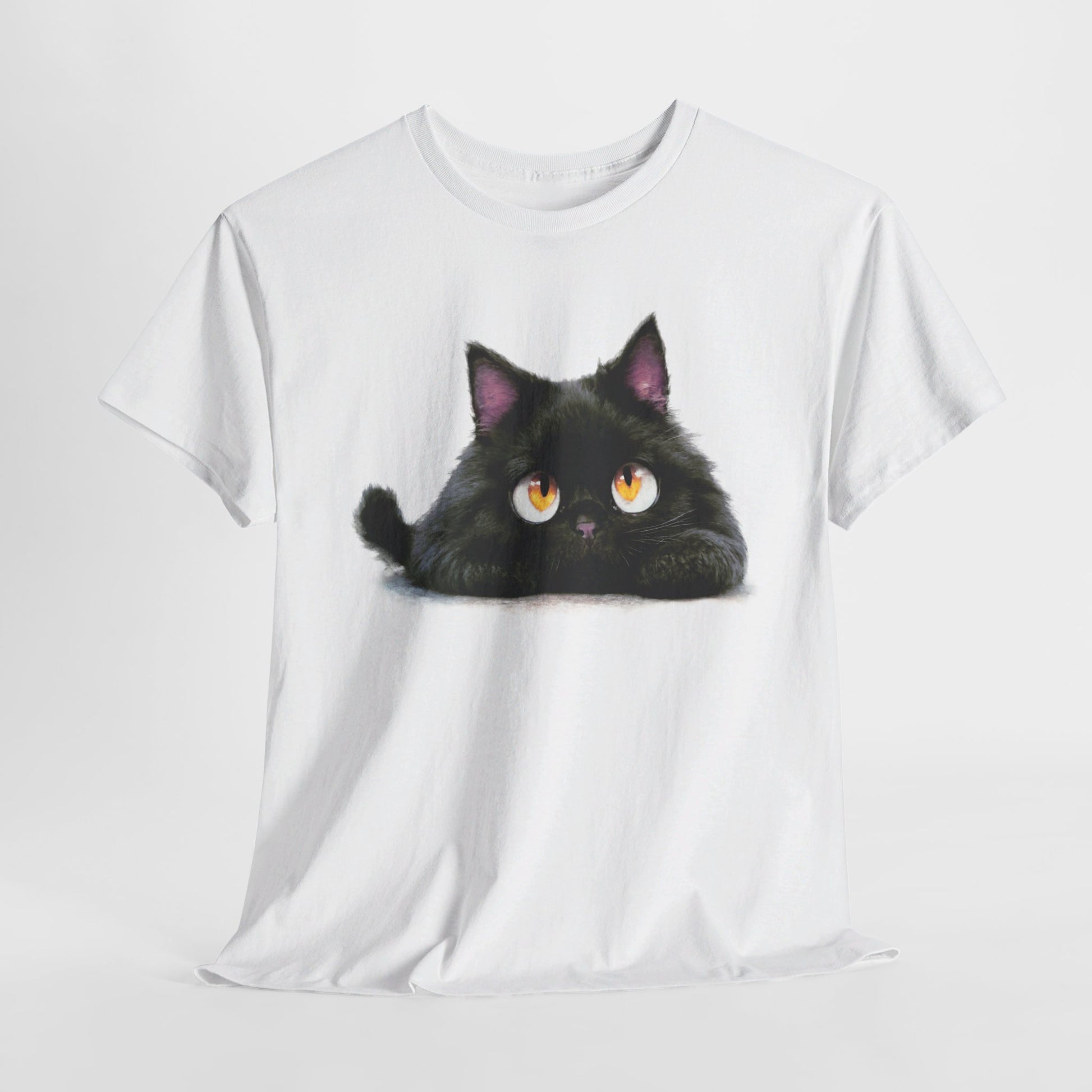 A cute looking cat tee perfect for cat lovers of all ages. This tee is made from specially spun fibers for a strong and smooth fabric, featuring a ribbed knit collar without seam for elasticity. The classic fit ensures comfort and versatility for any occasion, casual or semi-formal. Ideal for cat enthusiasts and animal lovers, perfect for birthdays, holidays, or just everyday wear.