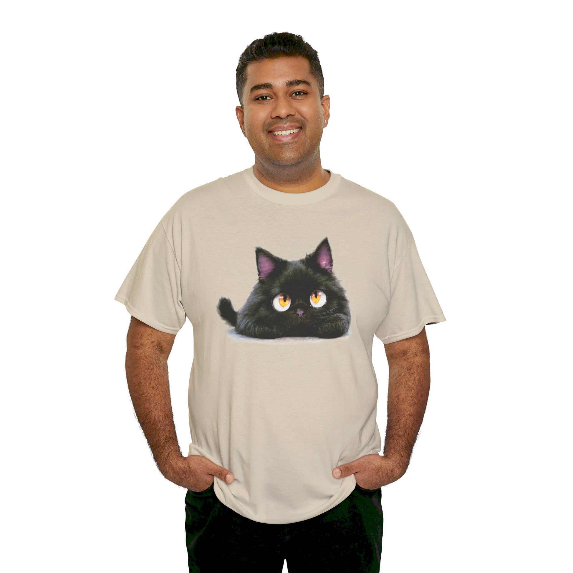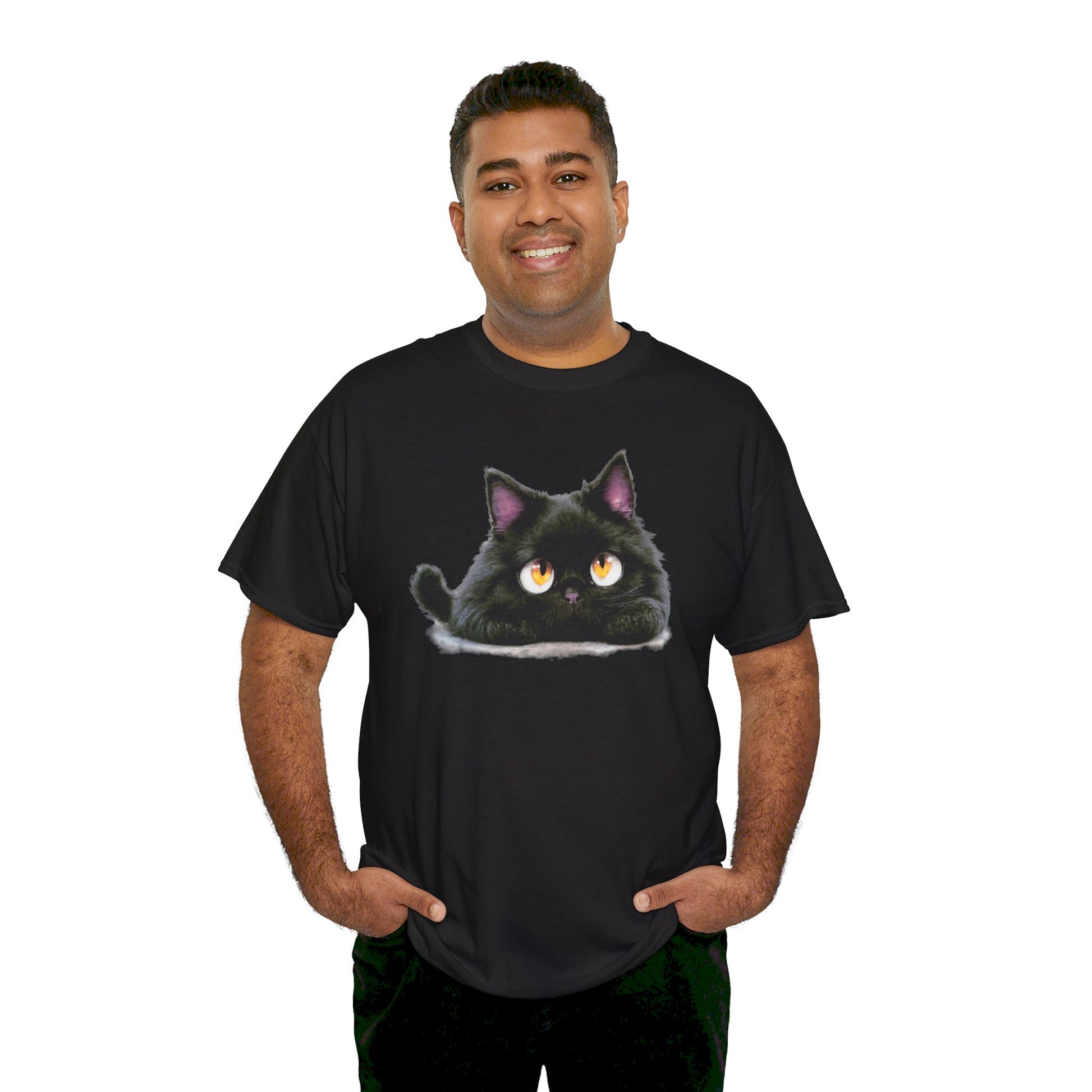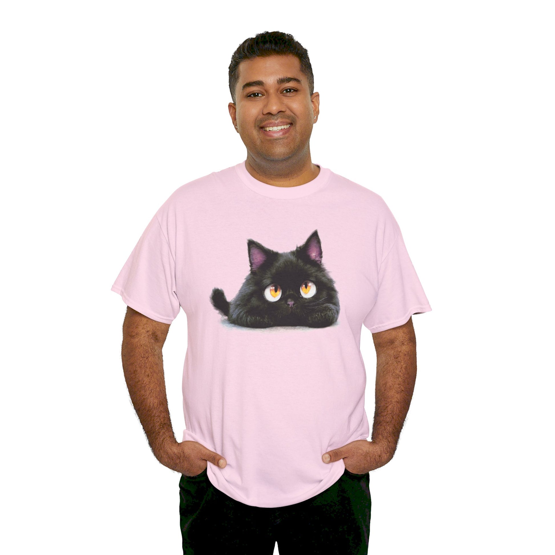 A cute looking cat tee perfect for cat lovers of all ages. This tee is made from specially spun fibers for a strong and smooth fabric, featuring a ribbed knit collar without seam for elasticity. The classic fit ensures comfort and versatility for any occasion, casual or semi-formal. Ideal for cat enthusiasts and animal lovers, perfect for birthdays, holidays, or just everyday wear.