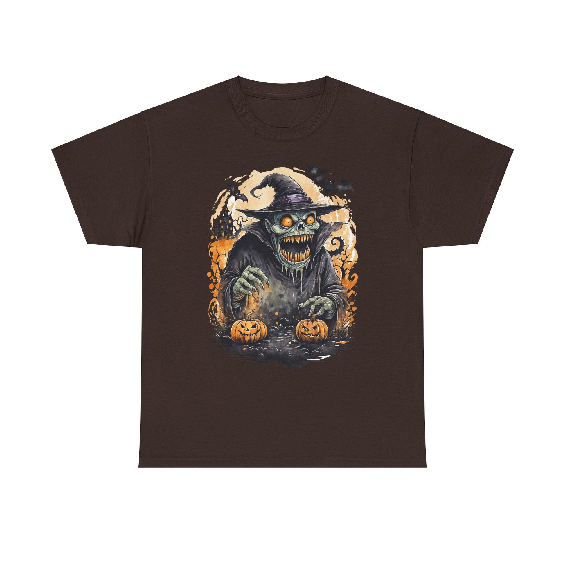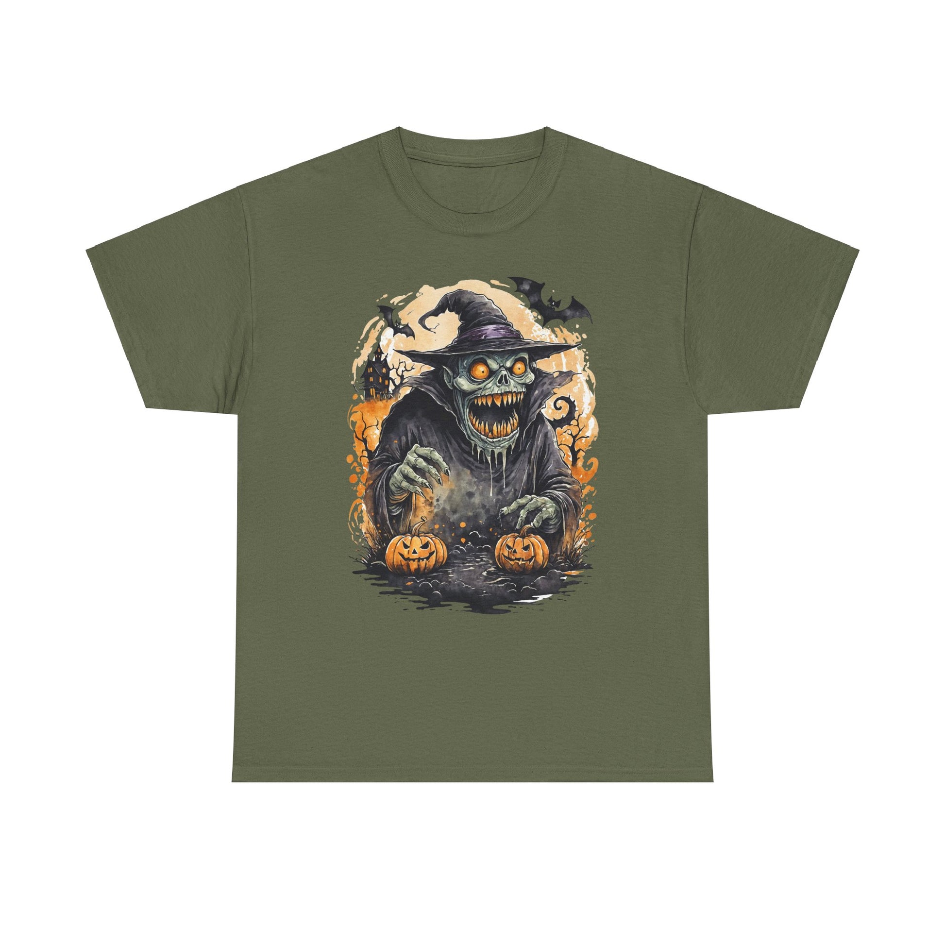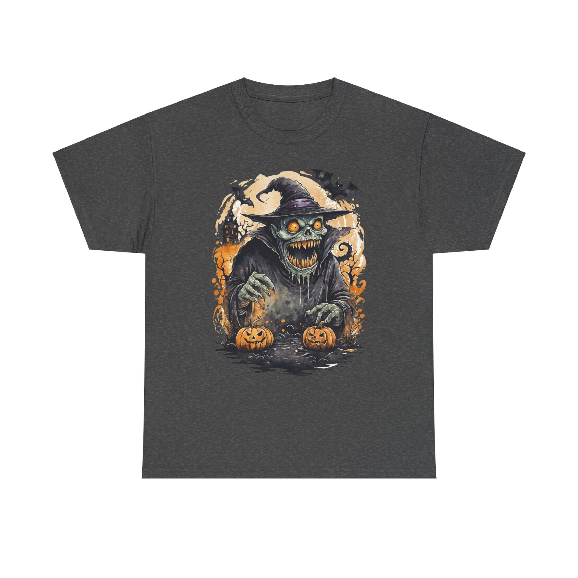 This Halloween Pumpkin witch Tee brings a spooky and playful vibe to your wardrobe. Perfect for Halloween enthusiasts, this t-shirt is ideal for casual wear or costume parties during the spooky season.