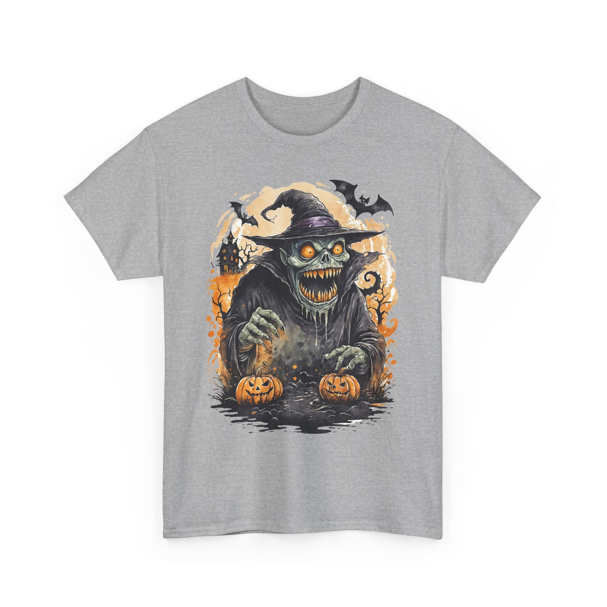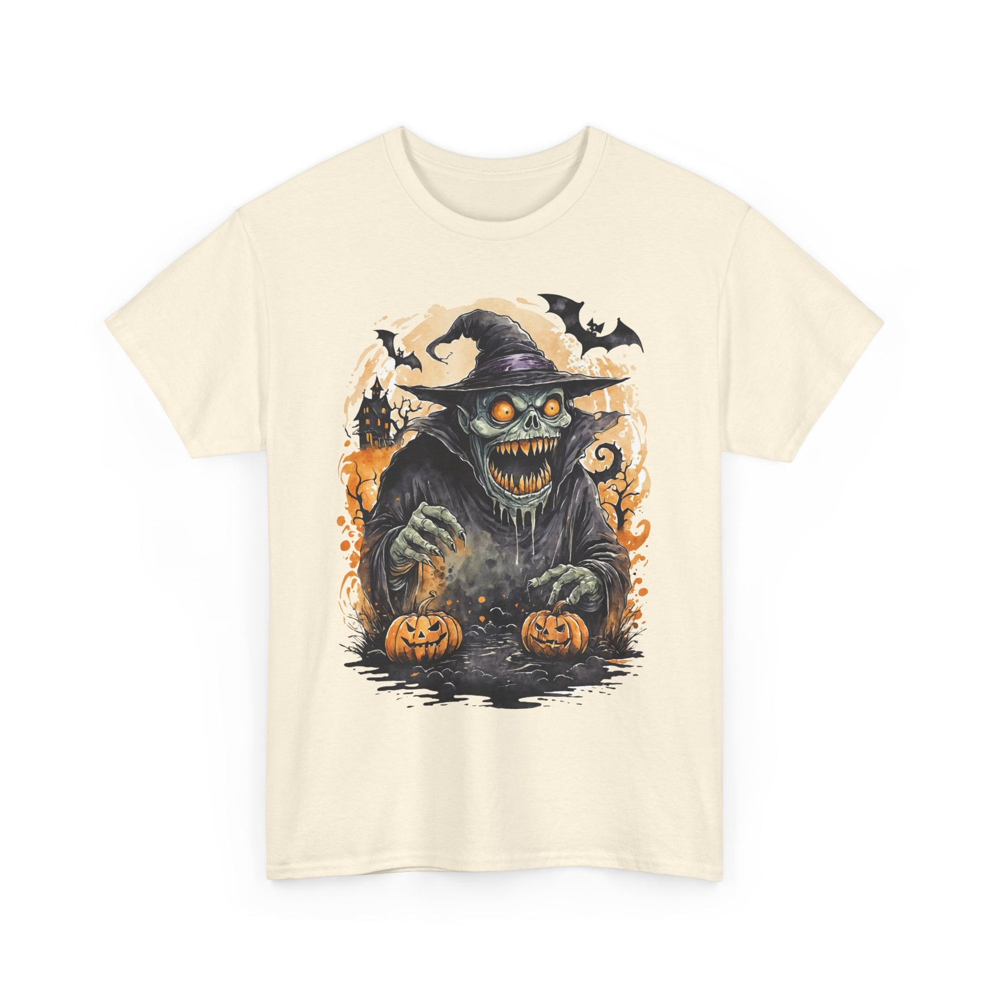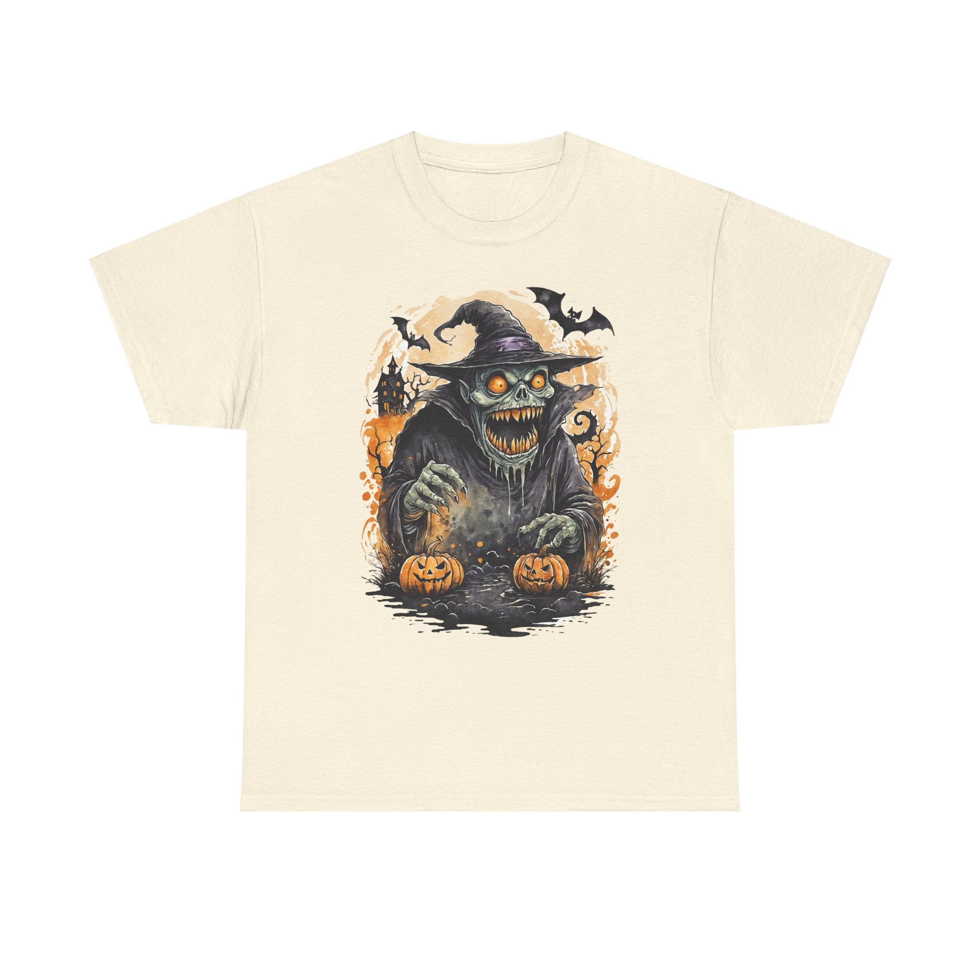 This Halloween Pumpkin witch Tee brings a spooky and playful vibe to your wardrobe. Perfect for Halloween enthusiasts, this t-shirt is ideal for casual wear or costume parties during the spooky season.