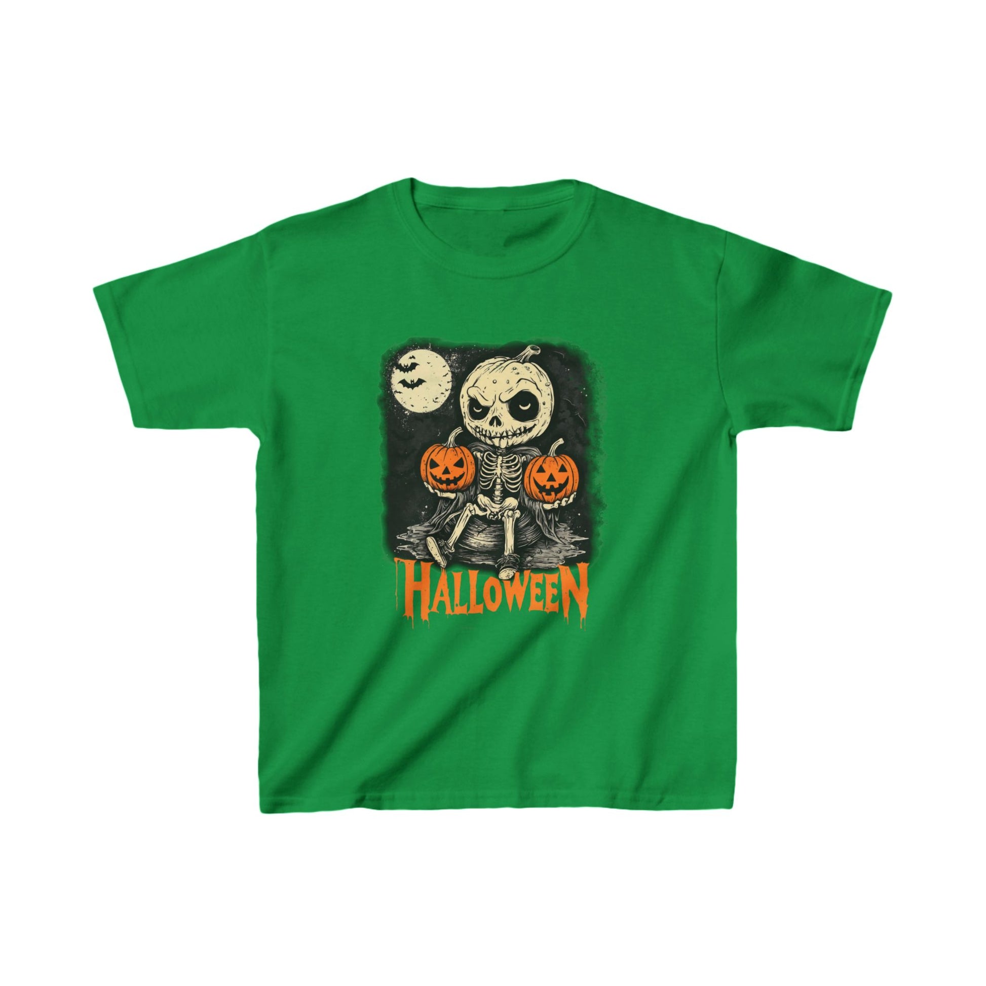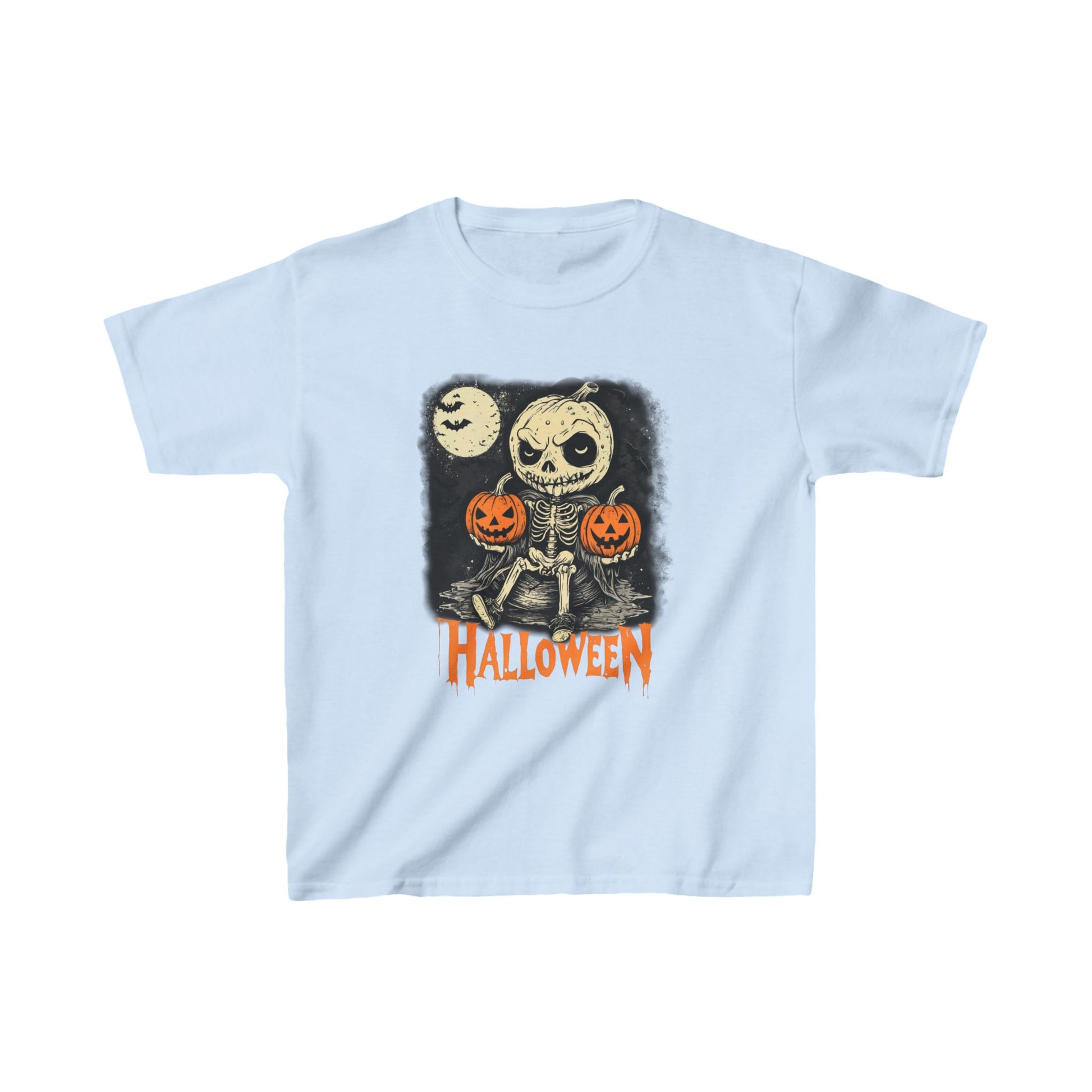 Halloween Pumpkin little Skull with Pumpkins and Ghosts, Halloween Tee for Children, Spooky Shirt for Kids, Trick or Treat Costume Top,