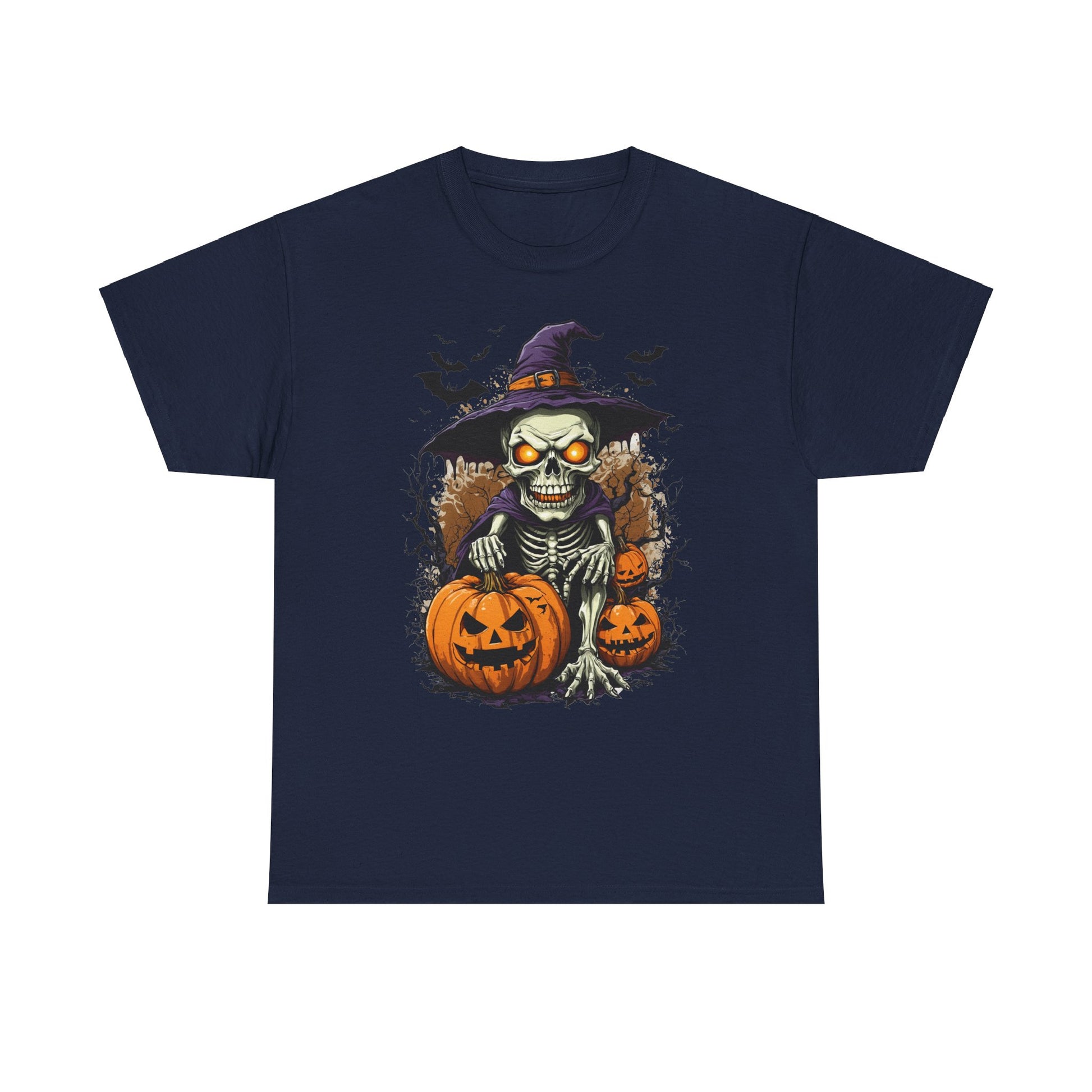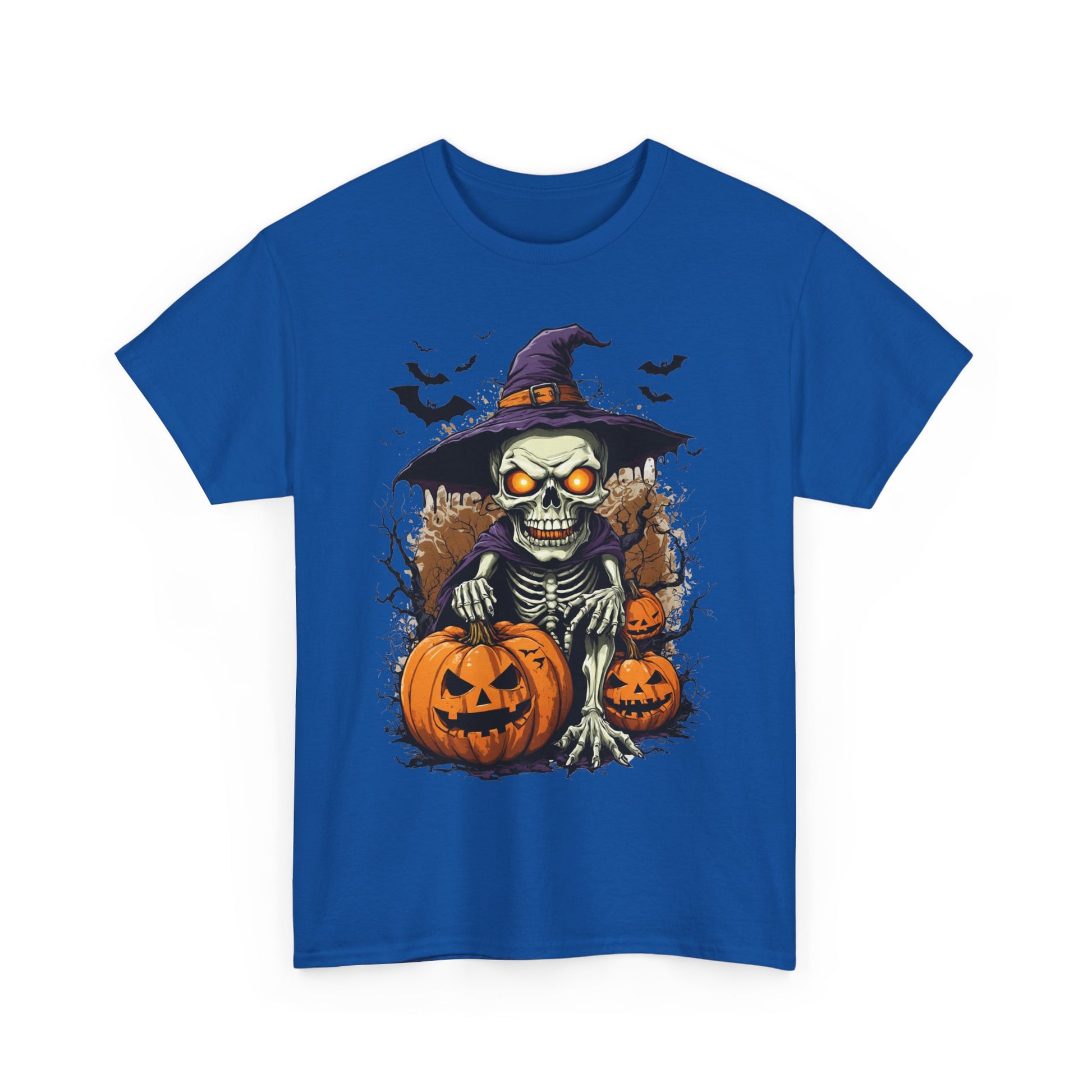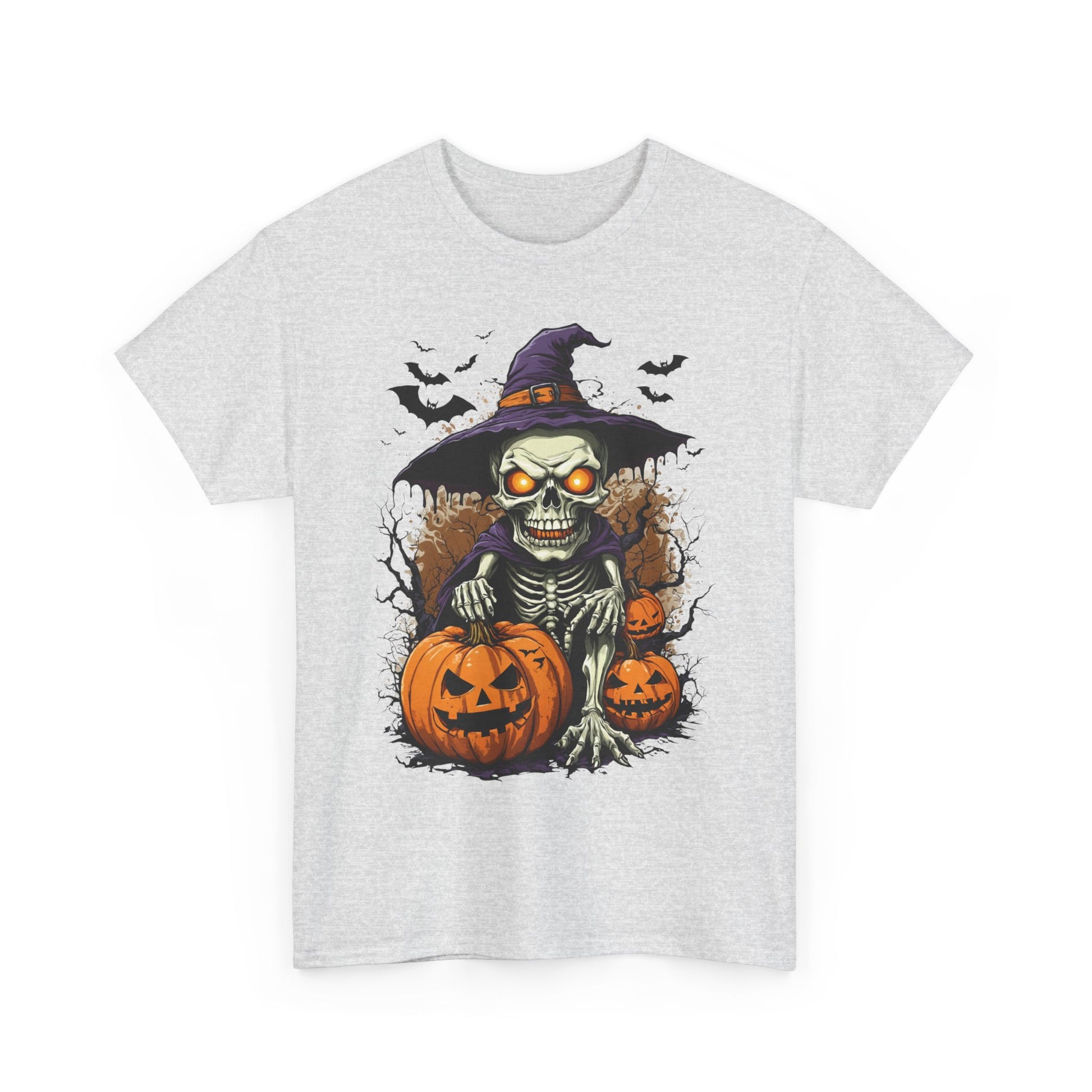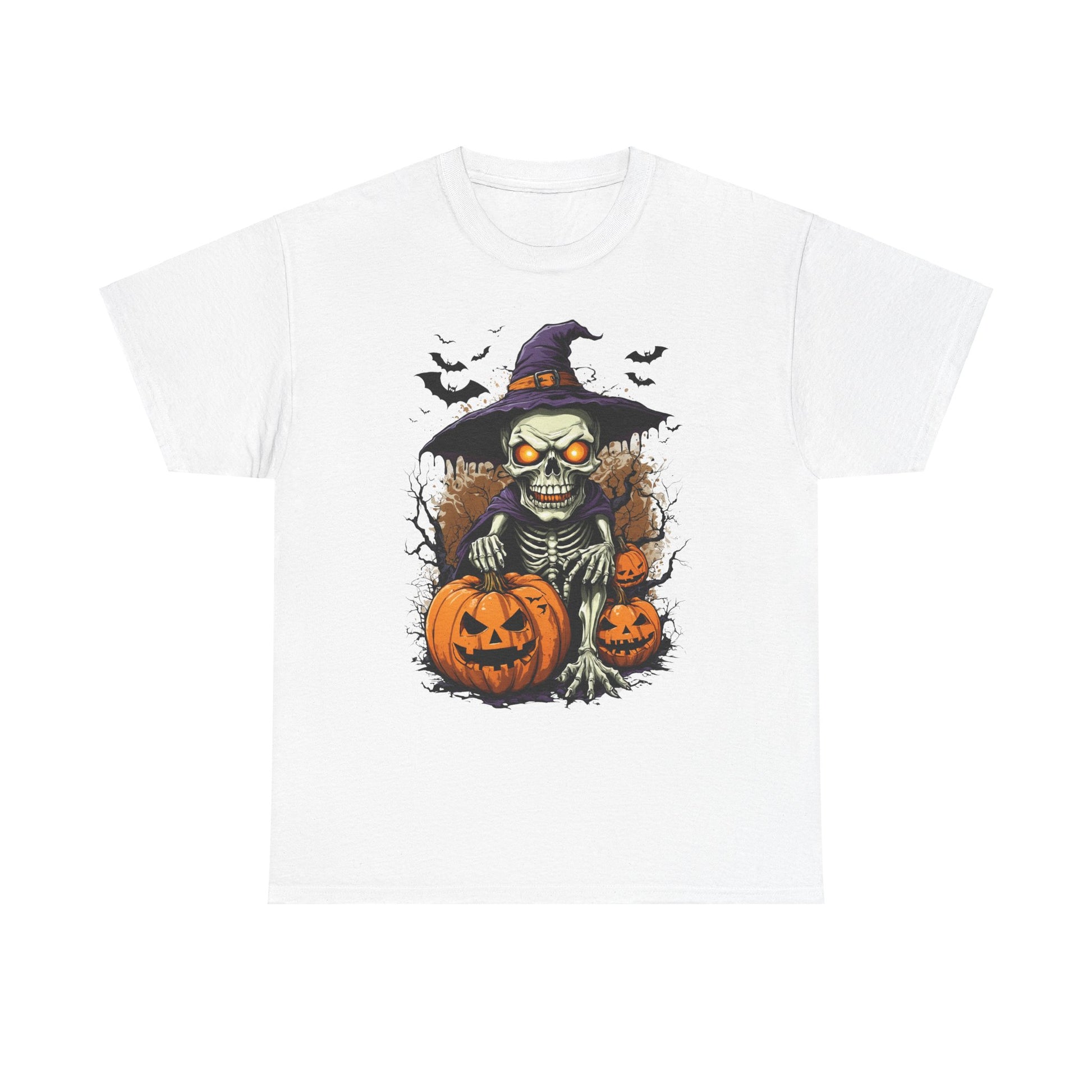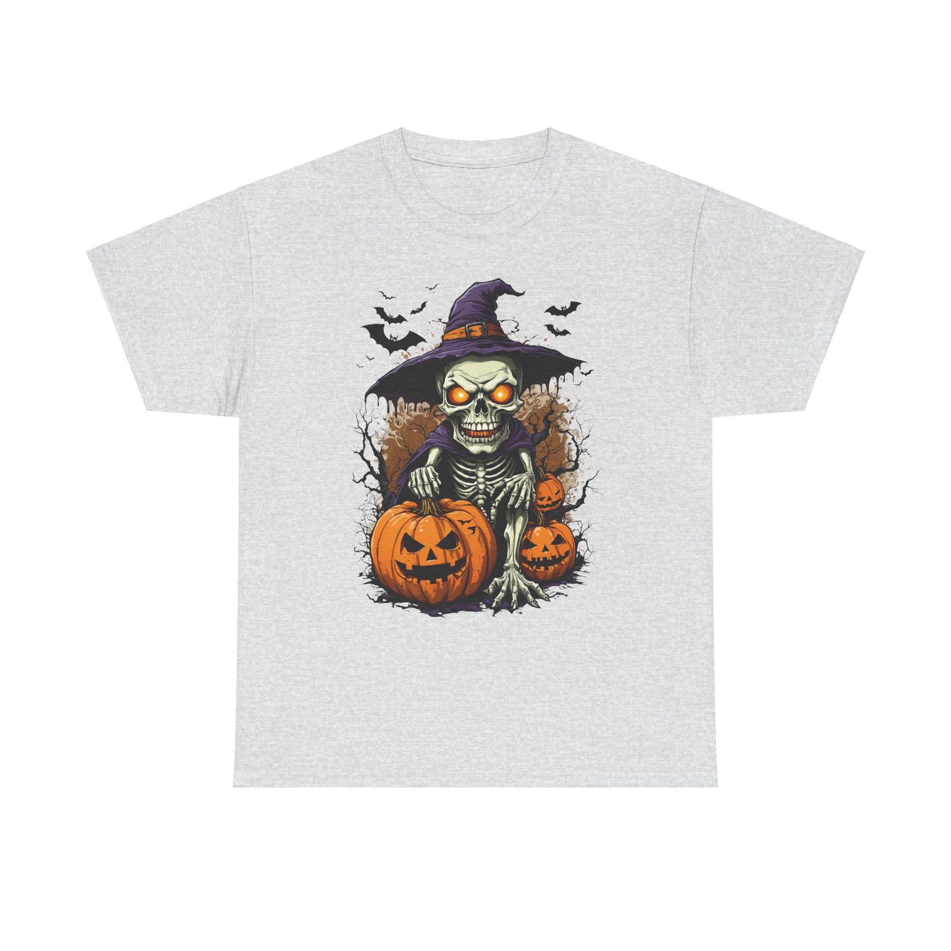 Halloween Pumpkin Skeleton Witch Tee, Spooky Unisex T-Shirt, Fall Season Shirt, Jack-O-Lantern Costume Top, Autumn Witch Theme Apparel