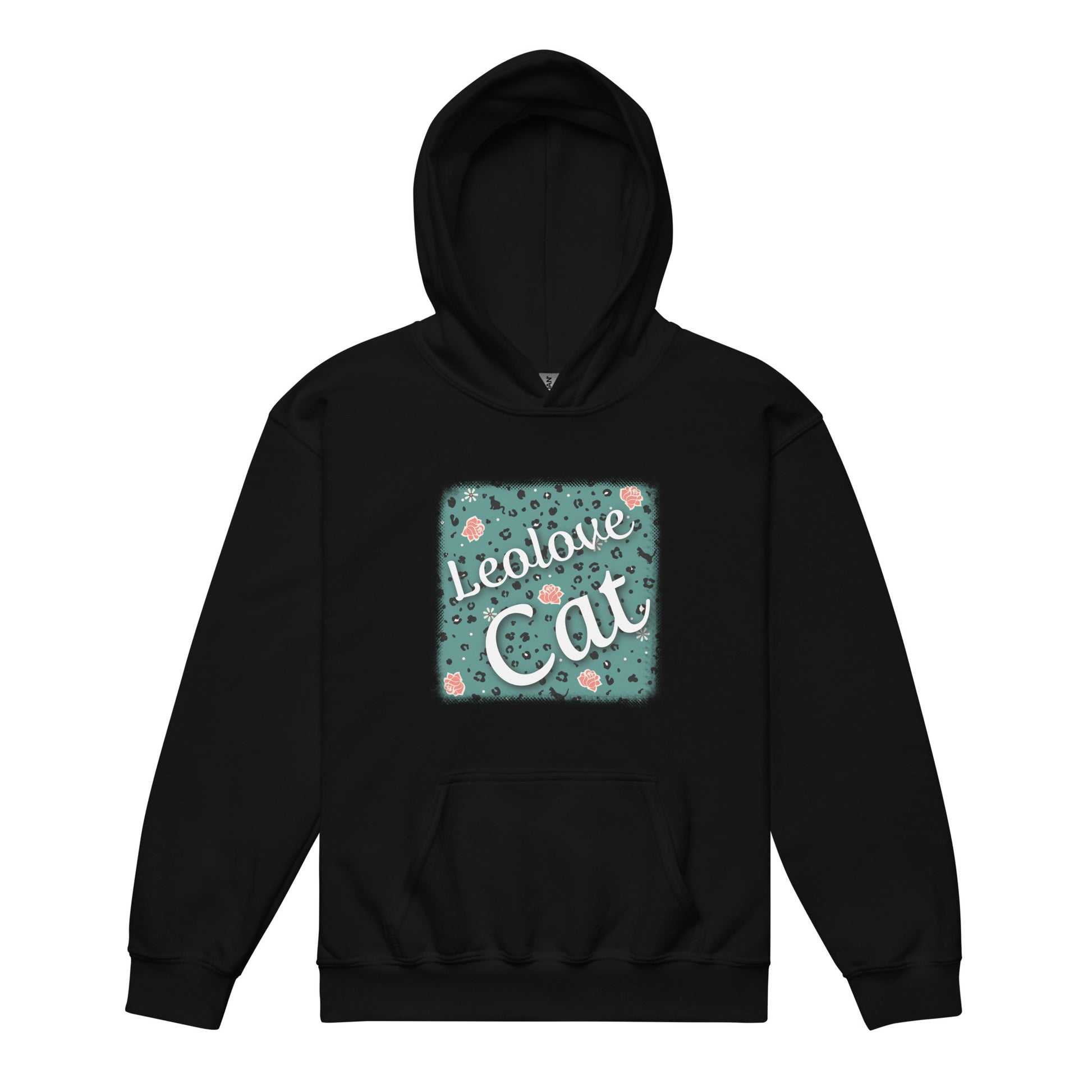 Heavy-Blend Hoodie for Girls Leopard Design "Leo Love Cat"