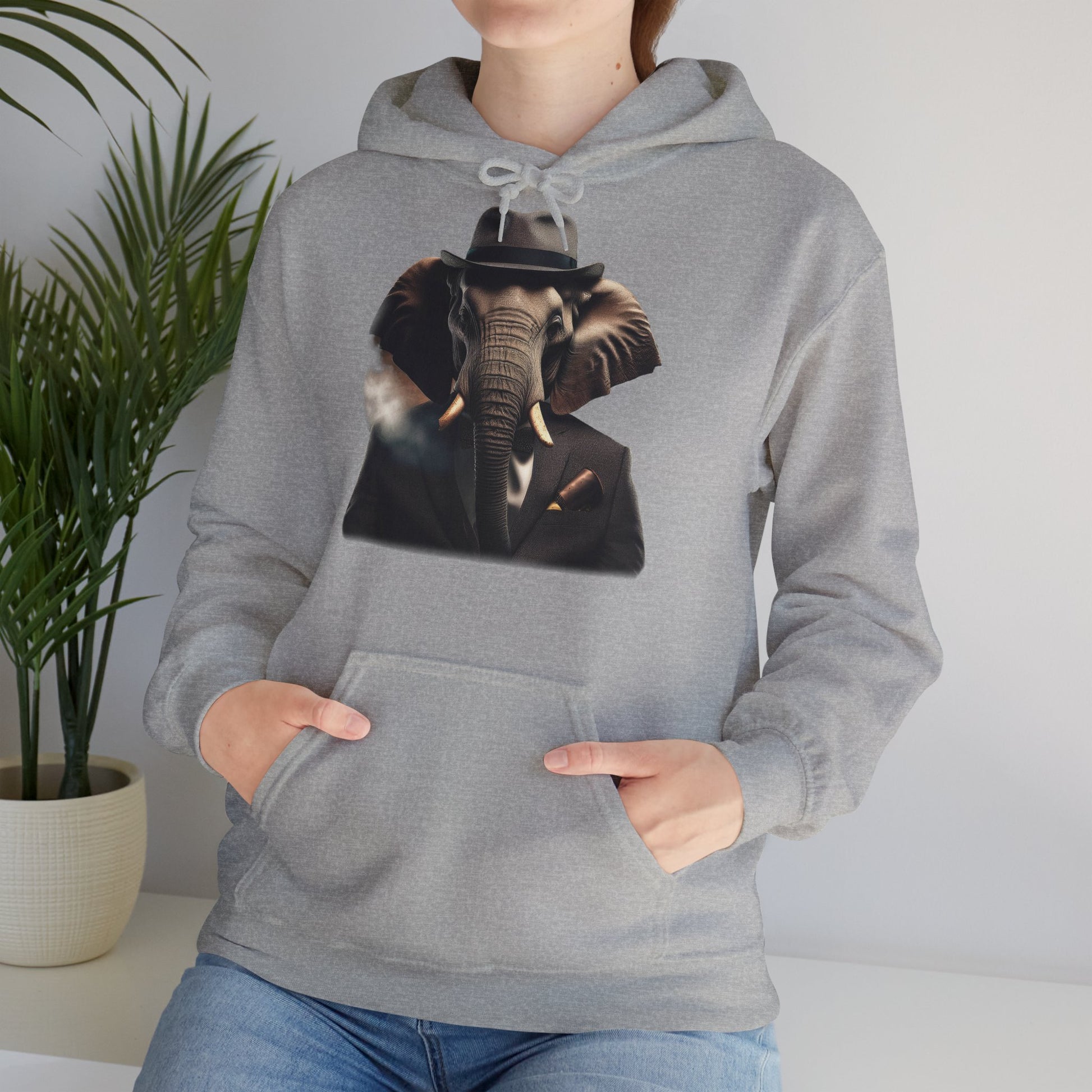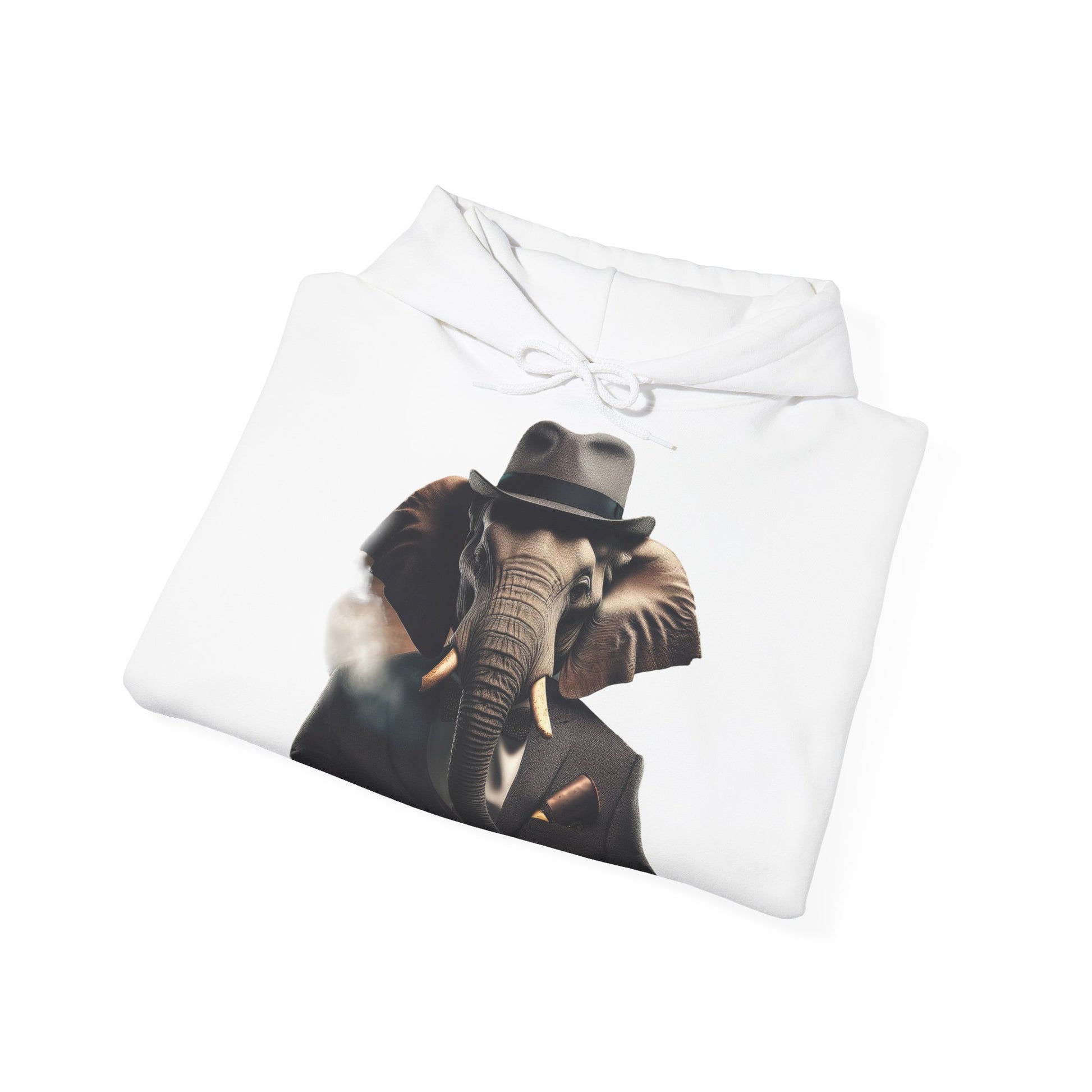 Dieser einzigartige Hoodie mit einem stilvollen Elefanten im Anzug und einer Zigarette bringt klassisches Vintage-Feeling mit einem modernen Twist. Das perfekte Statement-Piece für alle, die Kunst und Mode lieben! Ob als auffälliges Outfit für den Alltag oder als besonderes Geschenk für Freunde – dieses Sweatshirt zieht garantiert alle Blicke auf sich.