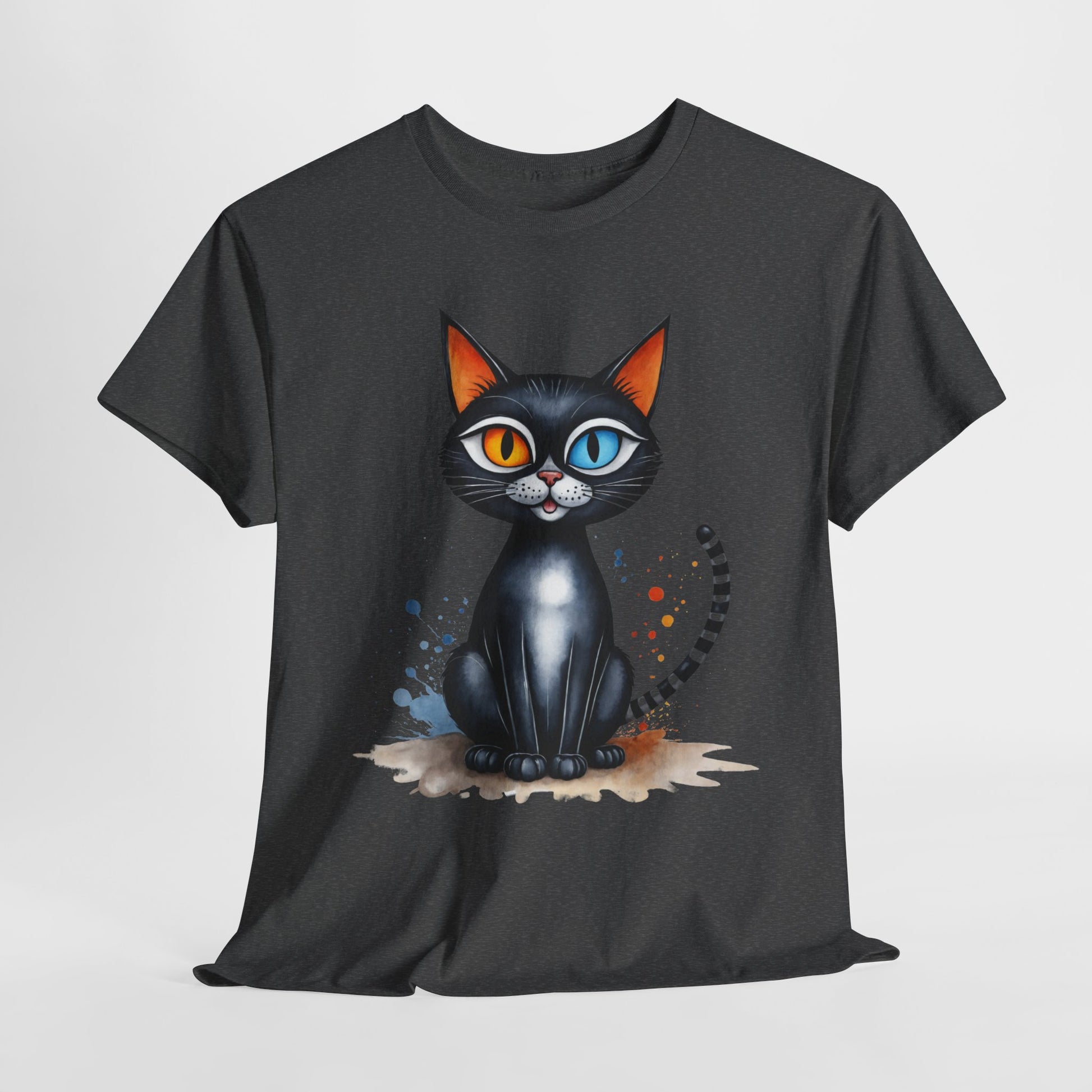 Buntes Katzen T-Shirt / Schwarze Katze mit heterochromen Augen / Lustiger Katzenpullover / Geschenk / Katzenliebhaber