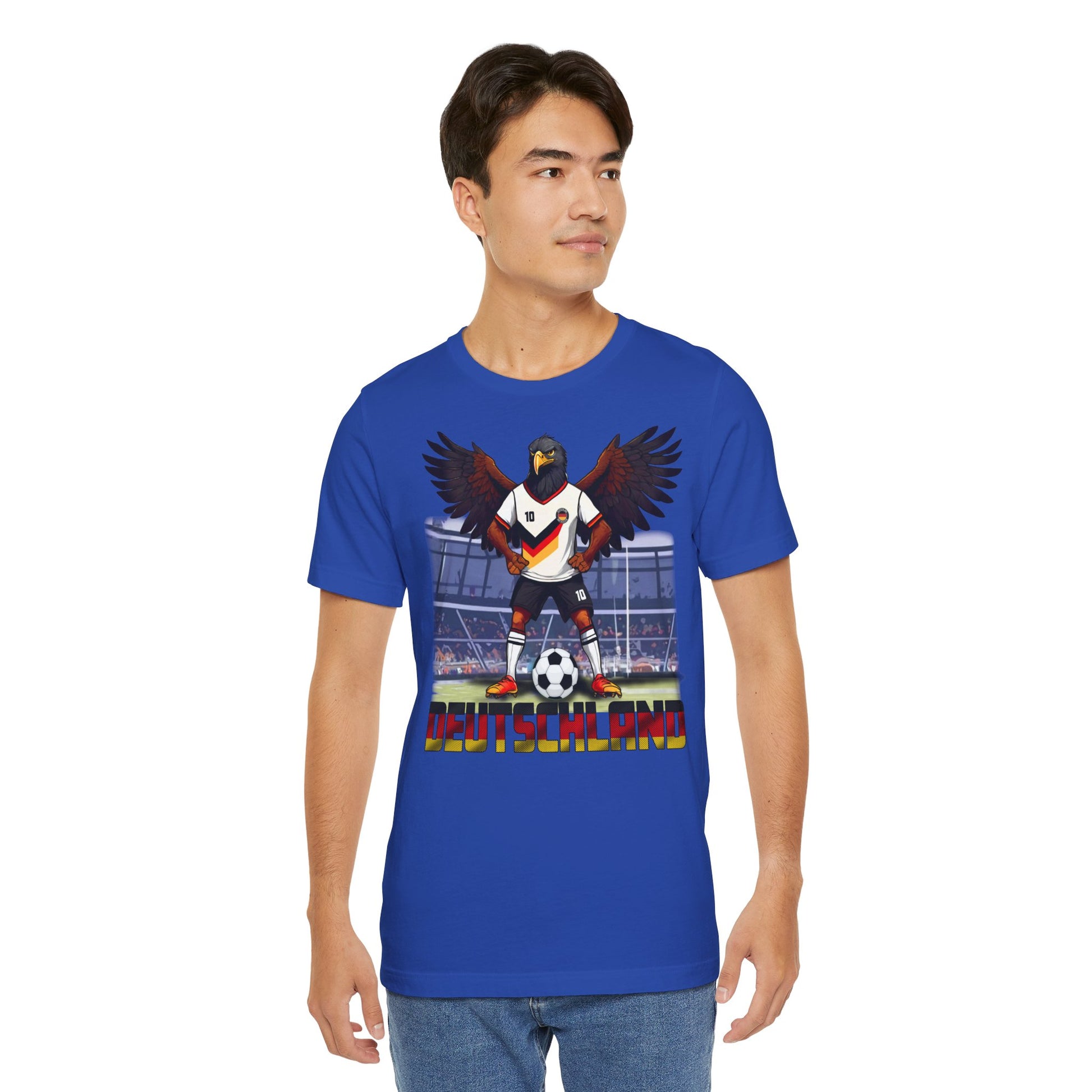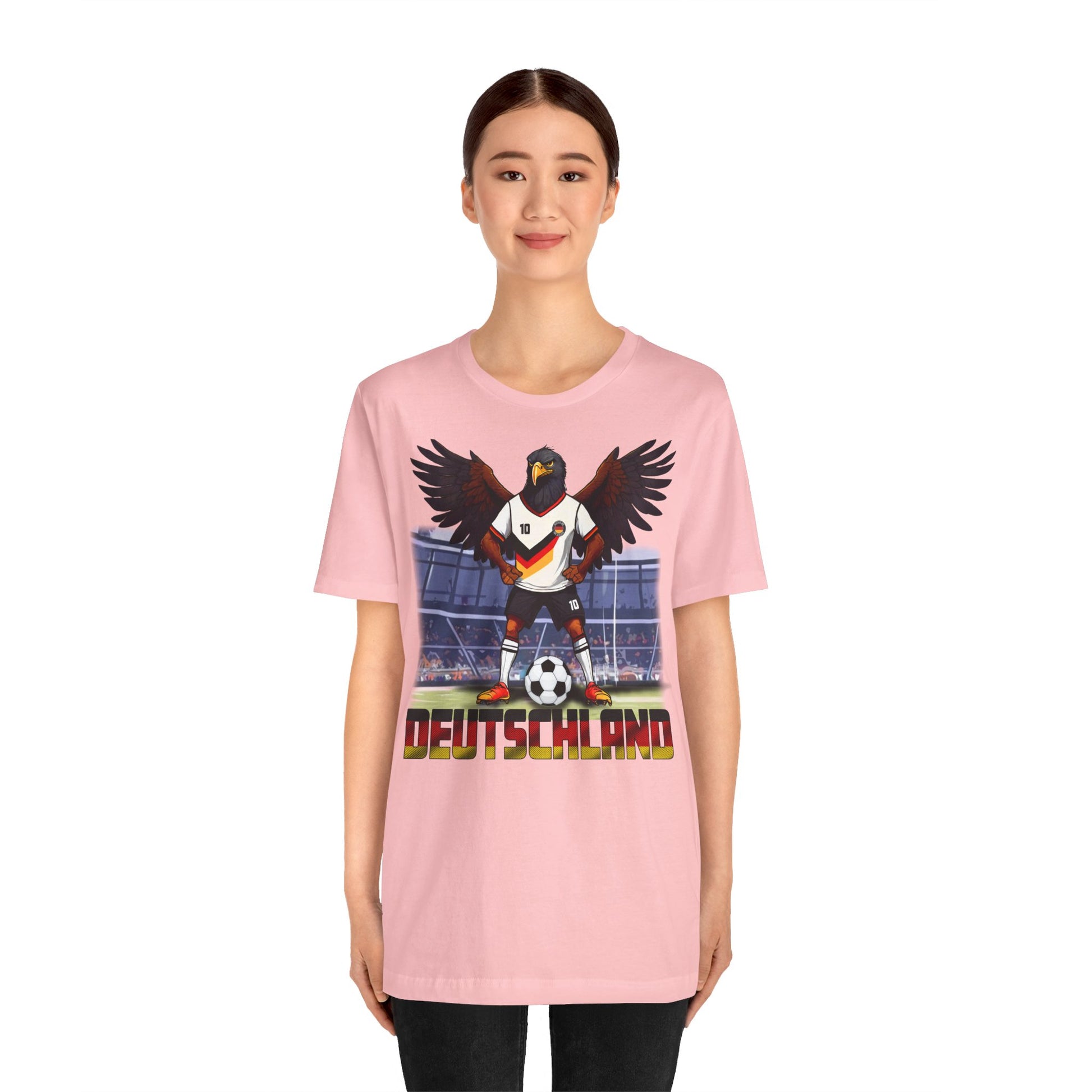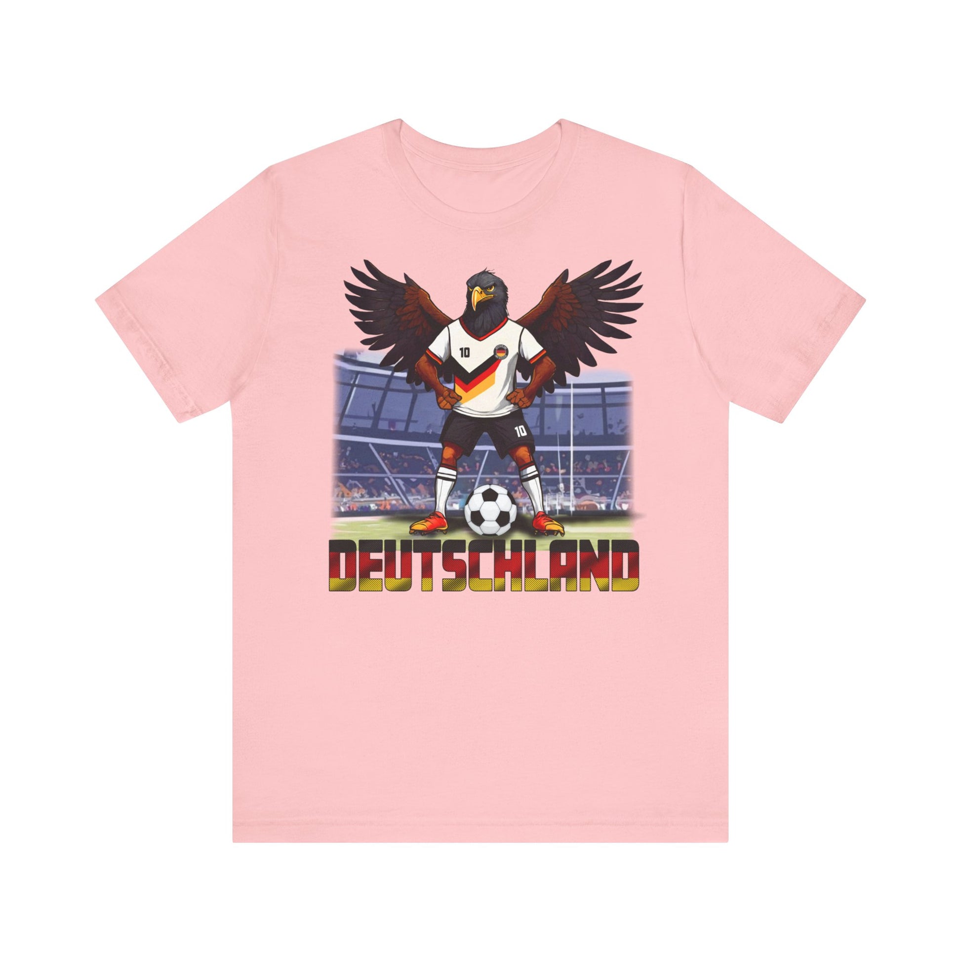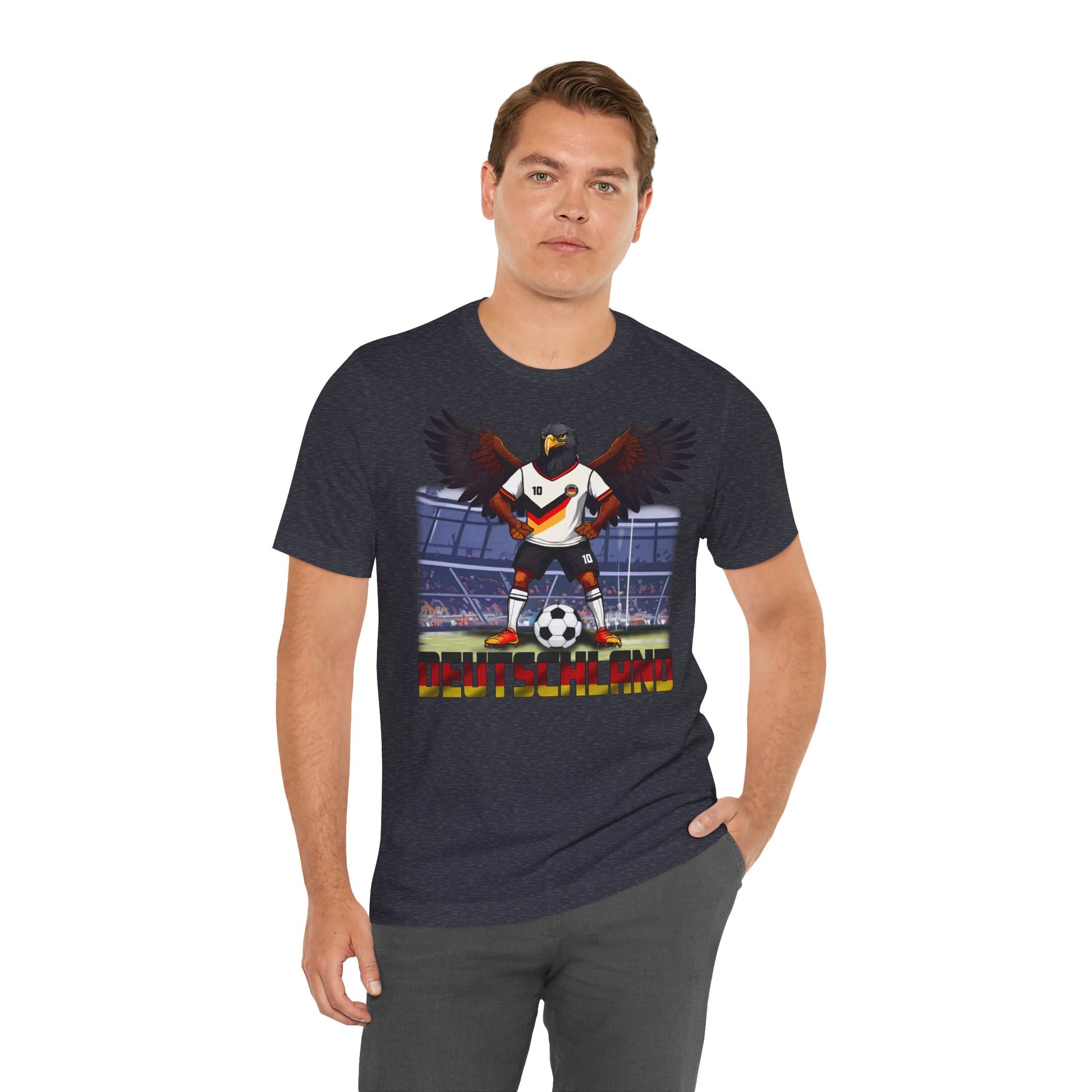 Dieses klassische Unisex-Jersey-T-Shirt mit kurzen Ärmeln fühlt sich an wie ein lang geliebtes Lieblingsstück. Weiche Baumwolle und qualitativ hochwertiger Druck lassen die Nutzer sich immer wieder neu in es verlieben. Diese T-Shirts haben gerippte Strickkragen, die die Formgebung unterstützen. Die Schultern sind für eine bessere Passform über die Zeit hinweg zulaufend gestaltet. Doppelte Seitennähte halten die Form des Kleidungsstücks länger.