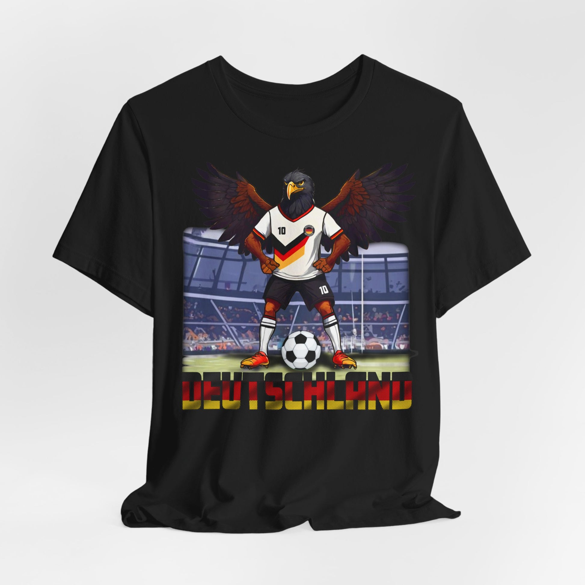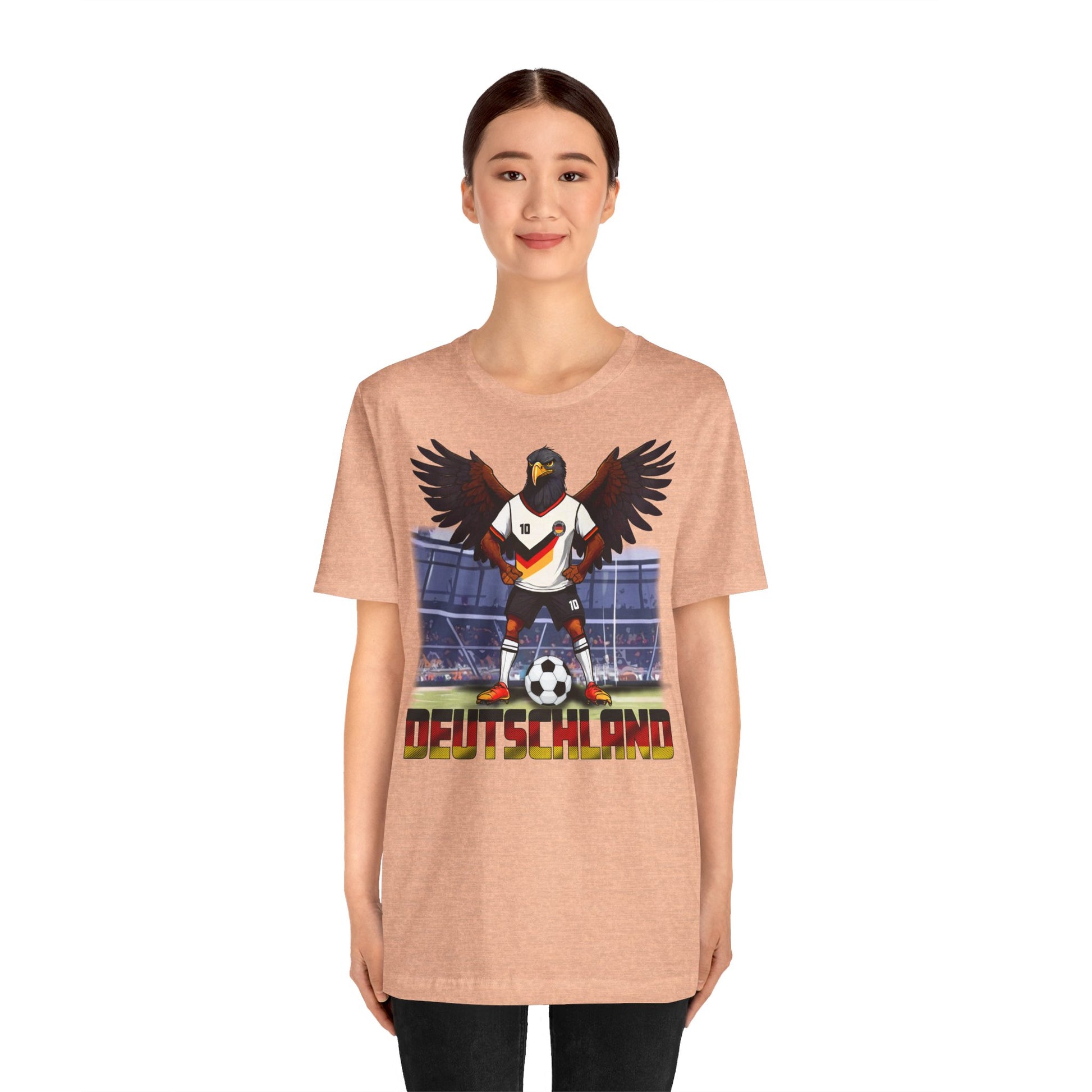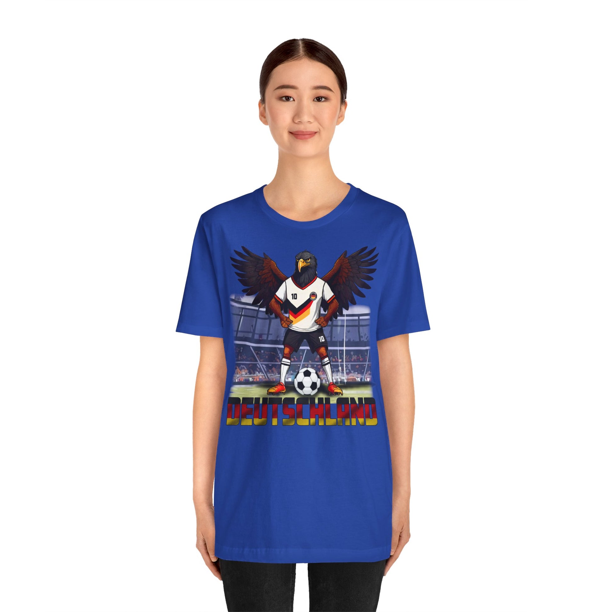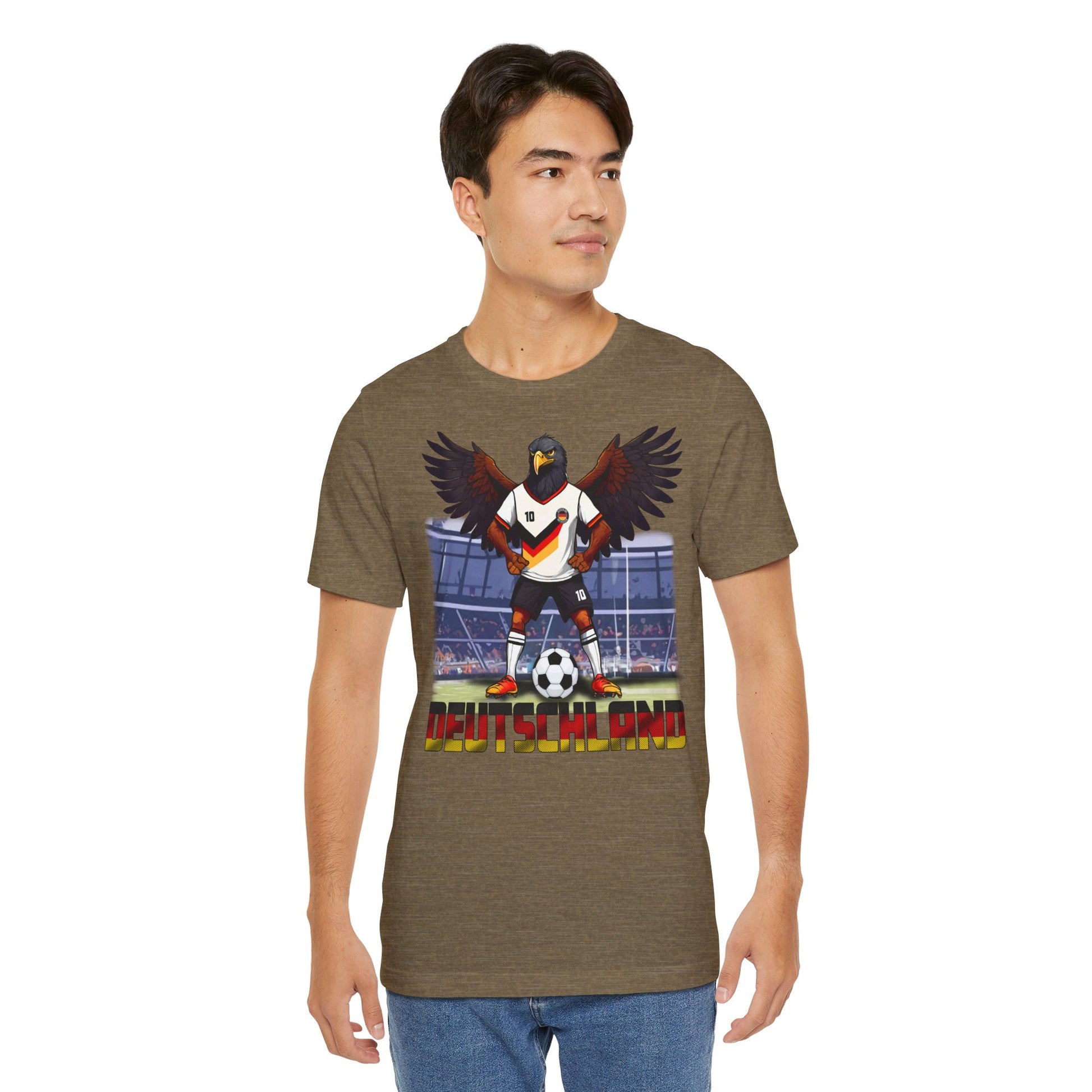 Dieses klassische Unisex-Jersey-T-Shirt mit kurzen Ärmeln fühlt sich an wie ein lang geliebtes Lieblingsstück. Weiche Baumwolle und qualitativ hochwertiger Druck lassen die Nutzer sich immer wieder neu in es verlieben. Diese T-Shirts haben gerippte Strickkragen, die die Formgebung unterstützen. Die Schultern sind für eine bessere Passform über die Zeit hinweg zulaufend gestaltet. Doppelte Seitennähte halten die Form des Kleidungsstücks länger.