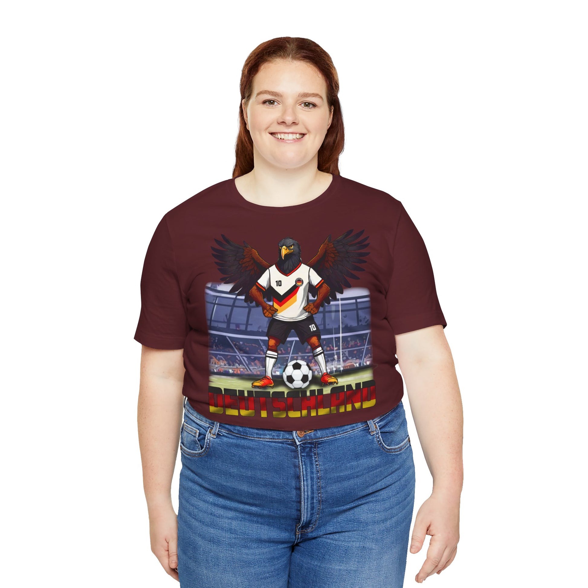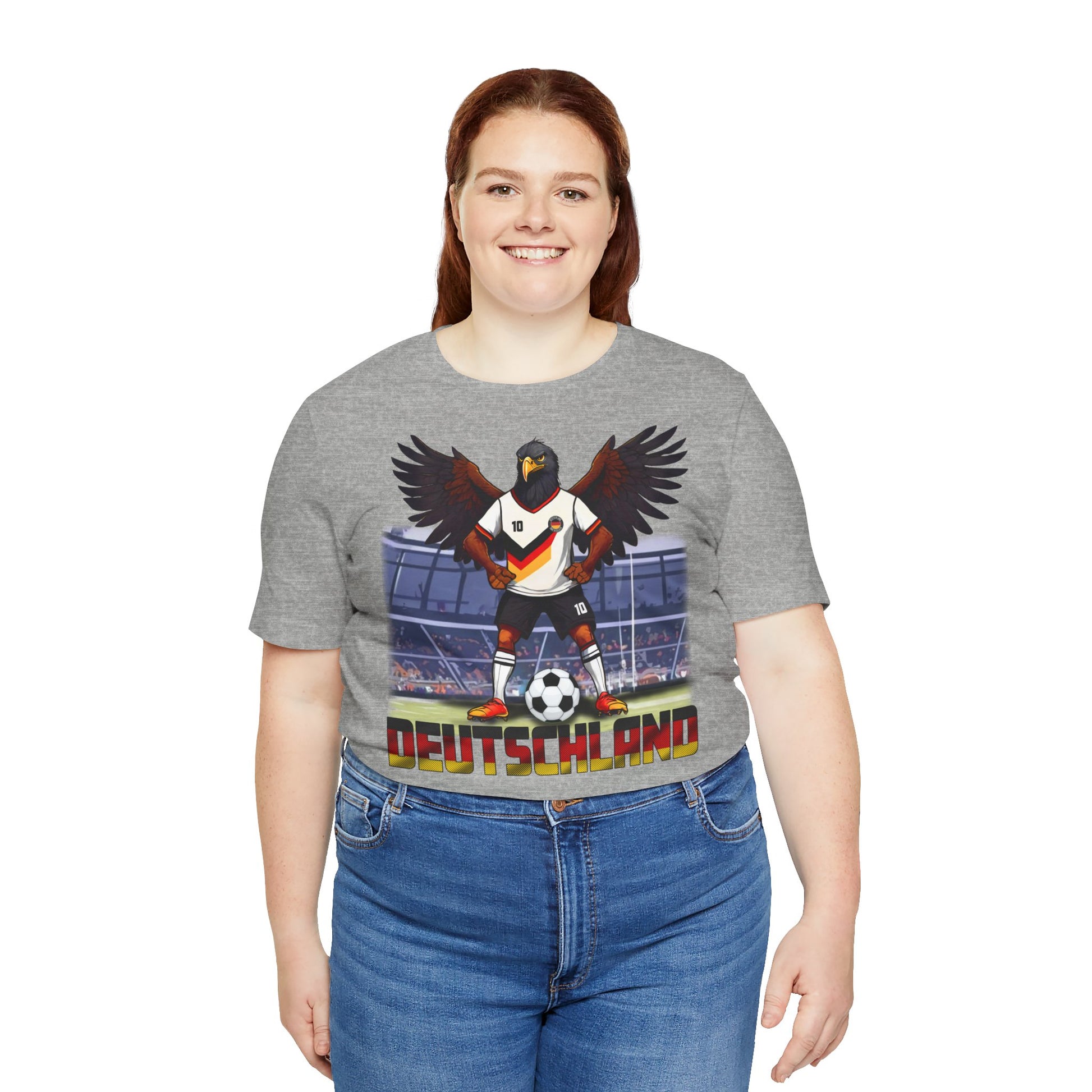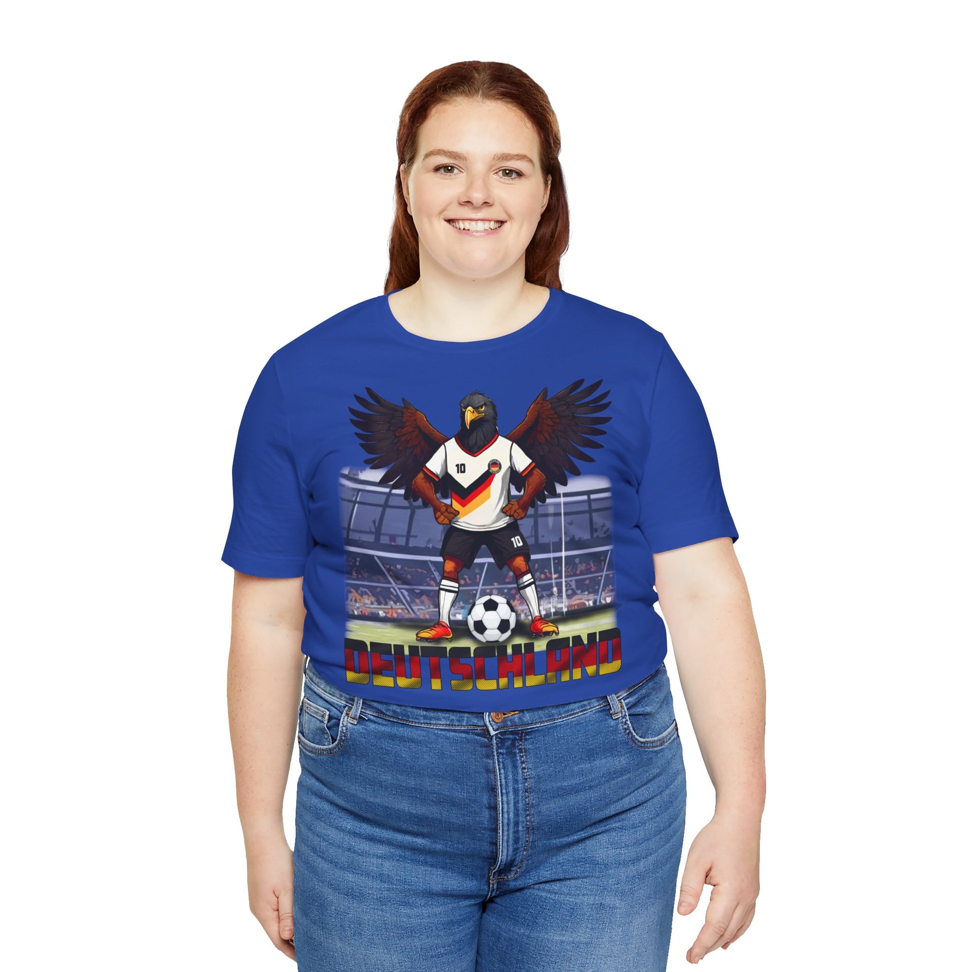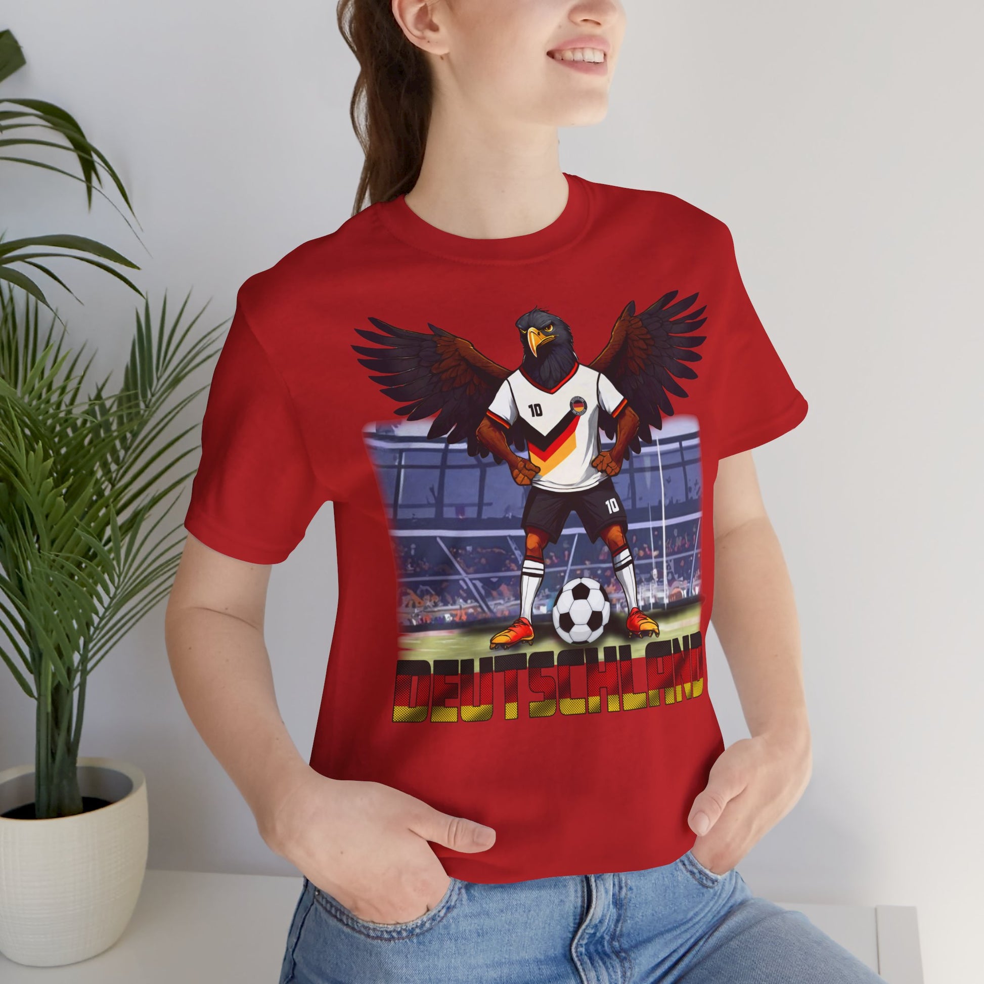 Dieses klassische Unisex-Jersey-T-Shirt mit kurzen Ärmeln fühlt sich an wie ein lang geliebtes Lieblingsstück. Weiche Baumwolle und qualitativ hochwertiger Druck lassen die Nutzer sich immer wieder neu in es verlieben. Diese T-Shirts haben gerippte Strickkragen, die die Formgebung unterstützen. Die Schultern sind für eine bessere Passform über die Zeit hinweg zulaufend gestaltet. Doppelte Seitennähte halten die Form des Kleidungsstücks länger.