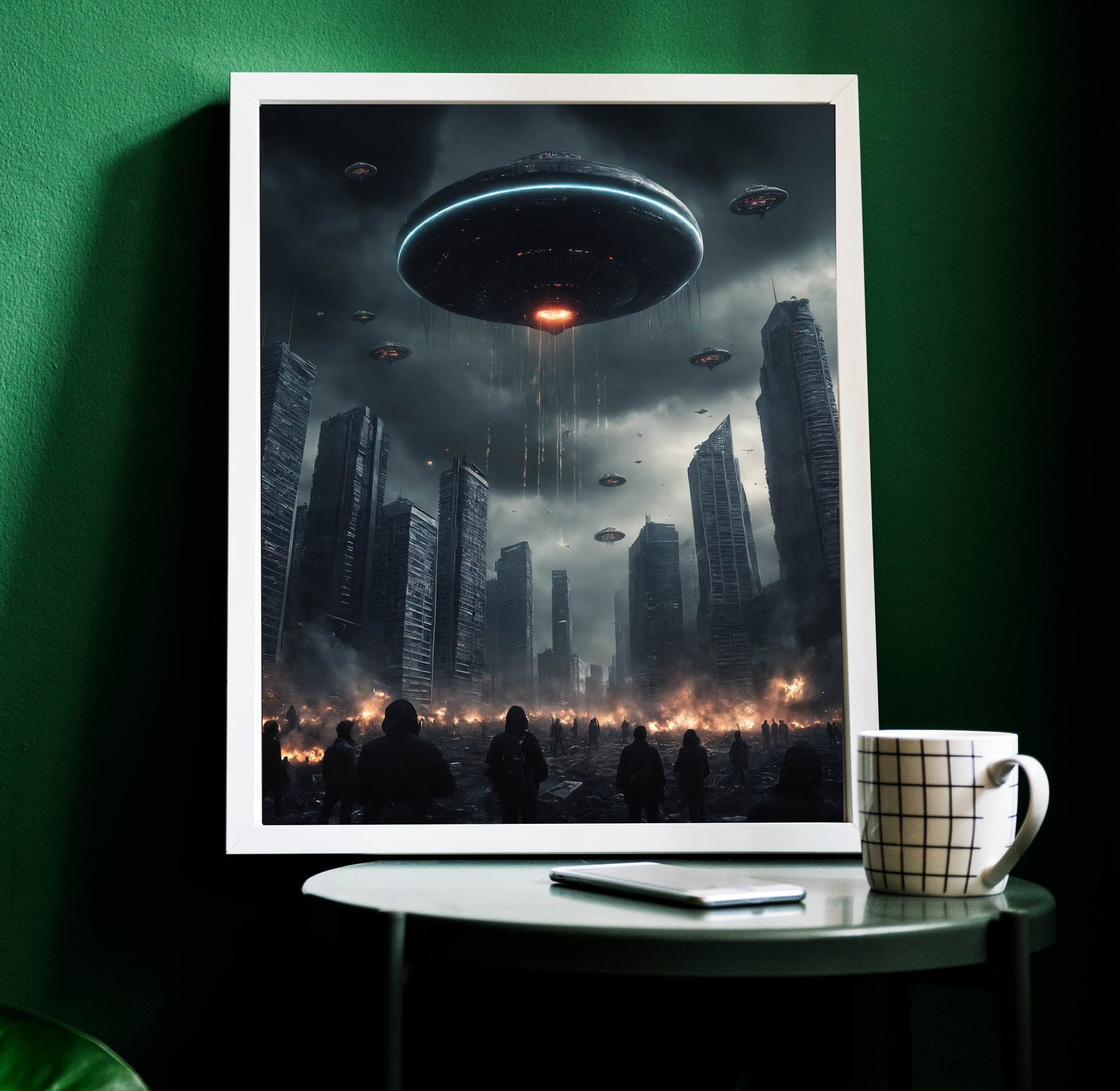 Embrace the otherworldly with these Alien Invasion posters. Perfect for sci-fi enthusiasts and those who love a touch of mystery in their decor. Ideal for Halloween, comic-con, and movie night enthusiasts.
