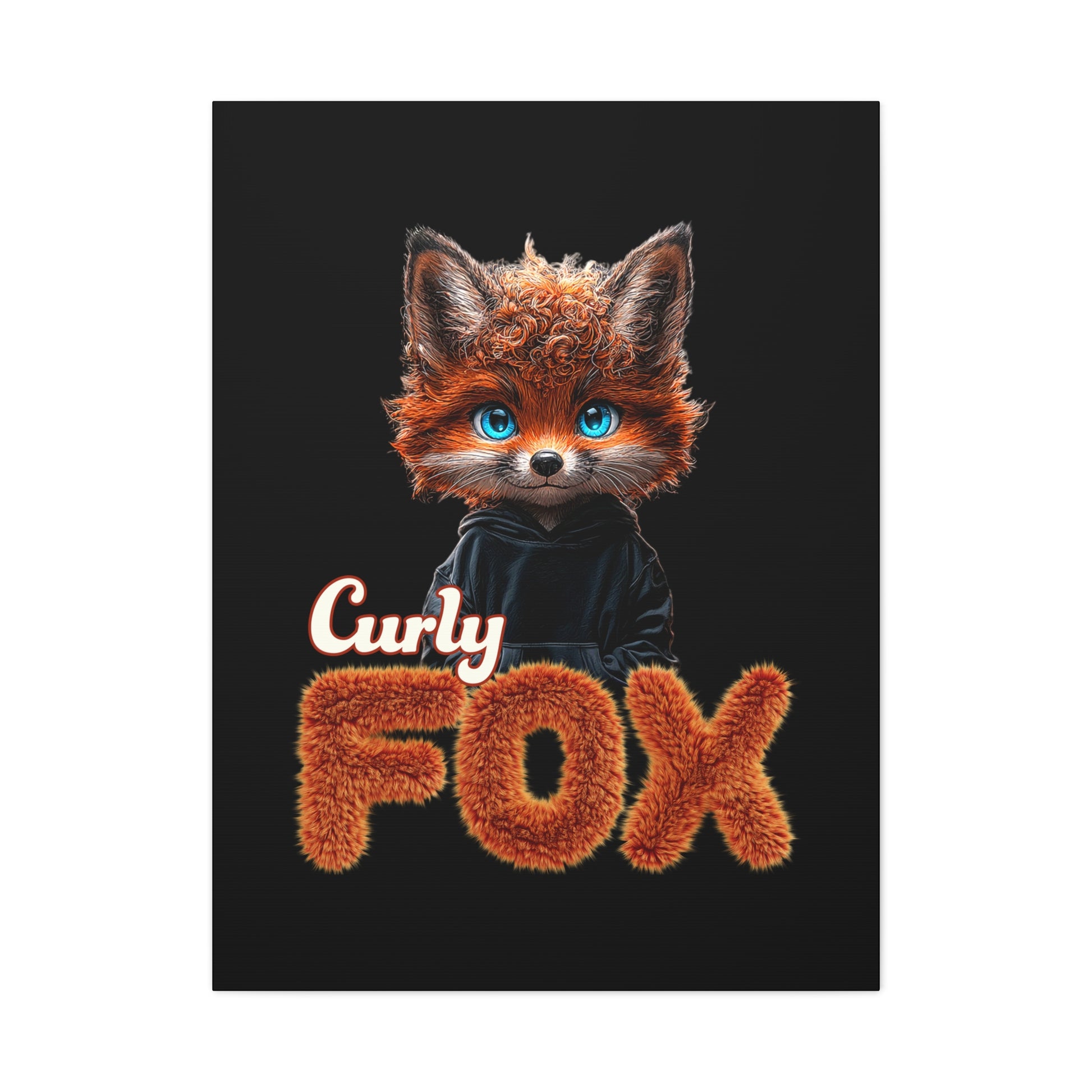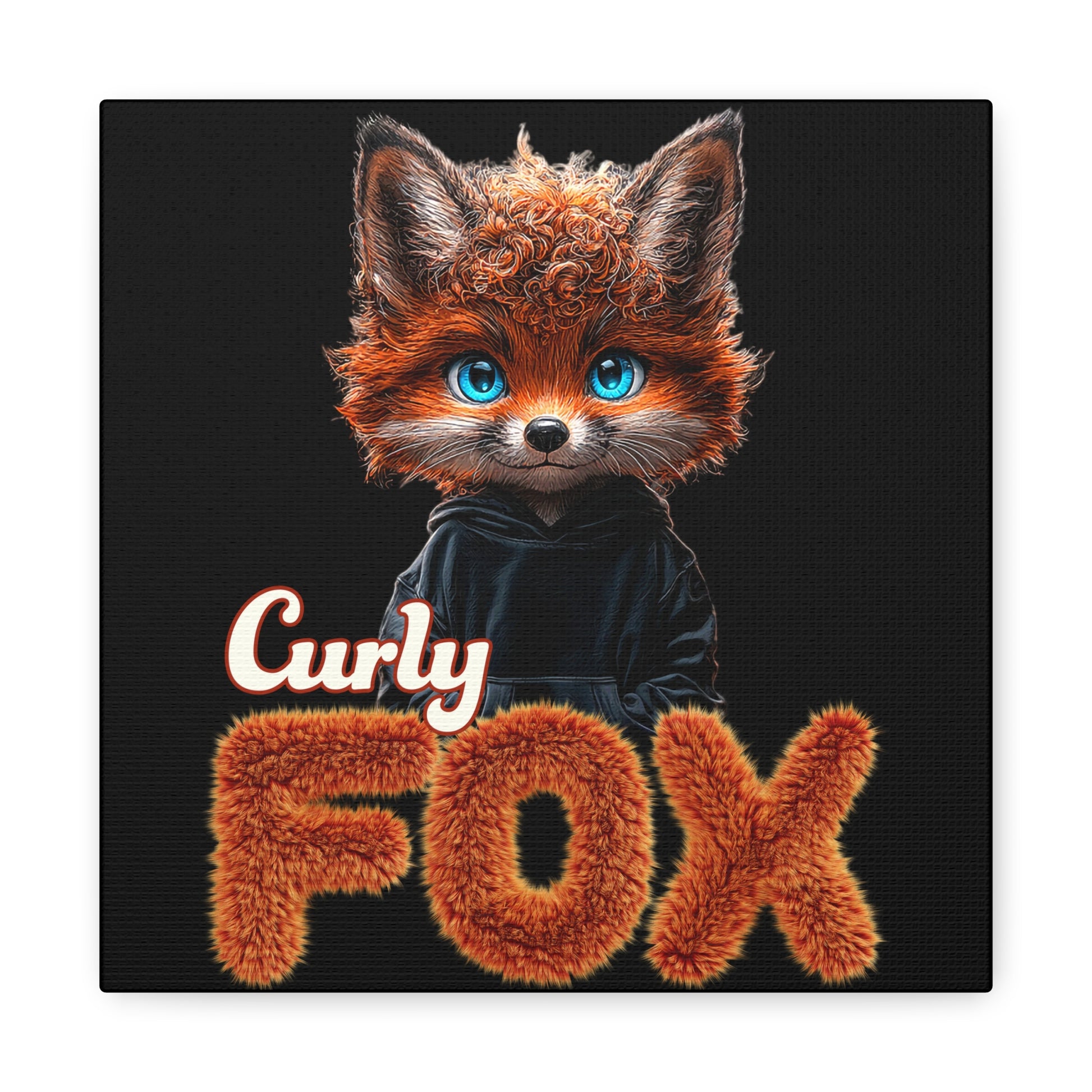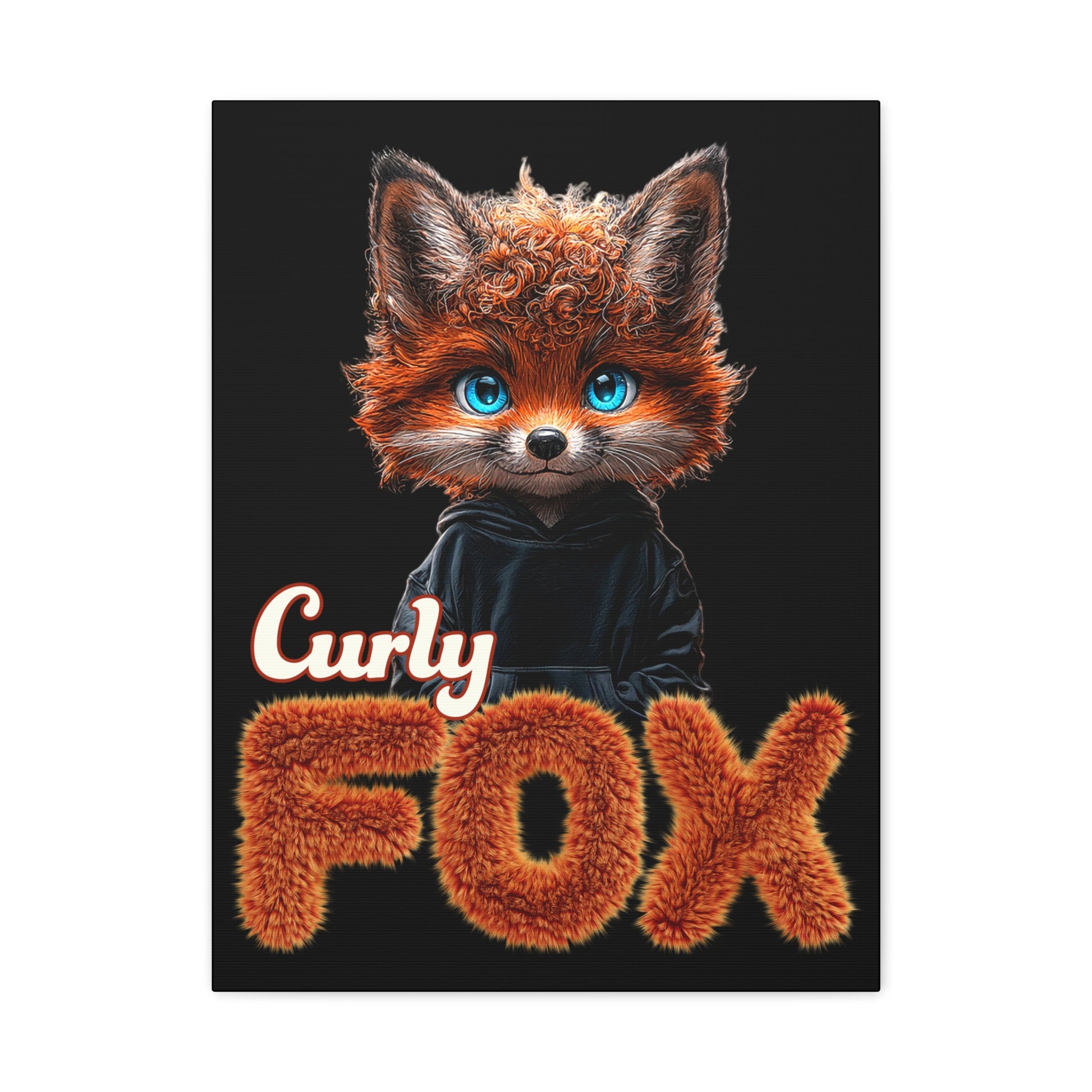 A Cute Curly Fox design with blue Eyes printed on a matte canvas, stretched and 1.25 inches thick. Perfect for adding a touch of whimsy to any room. Great for animal lovers, kids, or anyone looking to add a pop of color to their decor. Ideal for gifting on birthdays, holidays, or as a housewarming present.