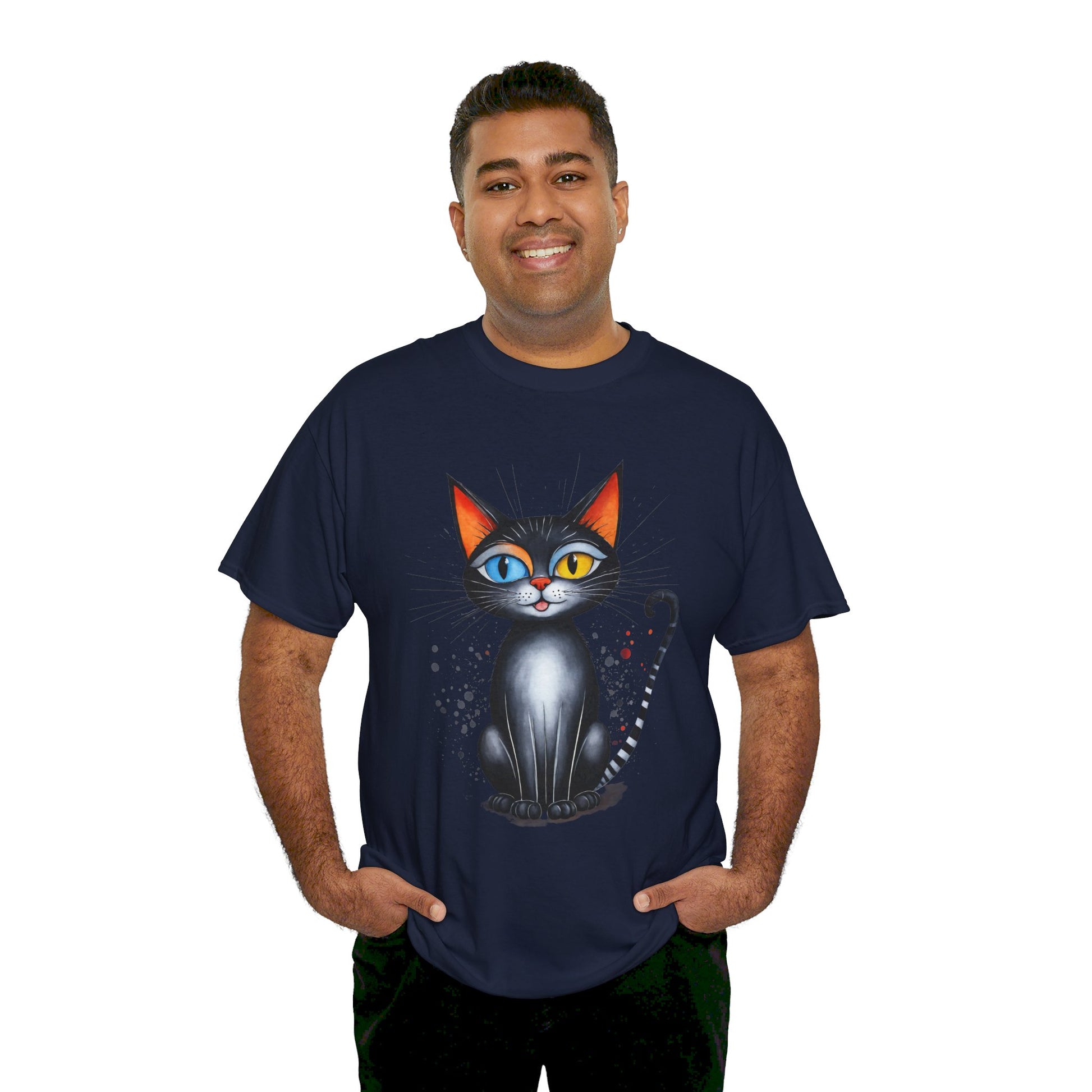Cat Lover T-Shirt, Feline Graphic Tee, Multicolor Kitten Print Top, Animal Theme Shirt, Cat Enthusiast Clothing