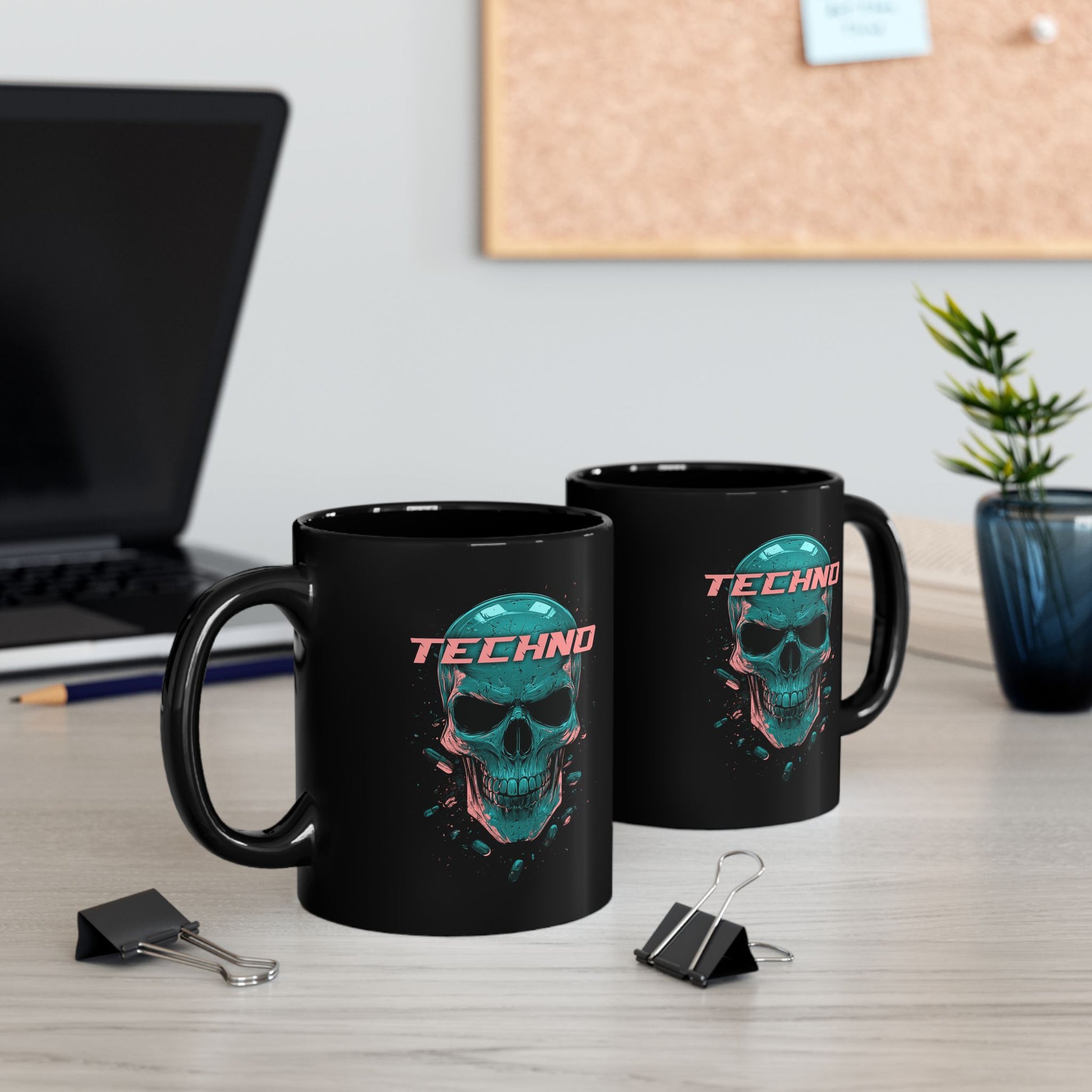This TEchno Skull Head mug is a sleek and stylish addition to your morning routine. Its glossy black ceramic finish and vibrant colors make it a unique choice for those who love edgy and modern designs. Perfect for Halloween, goth enthusiasts, and tech-savvy individuals.