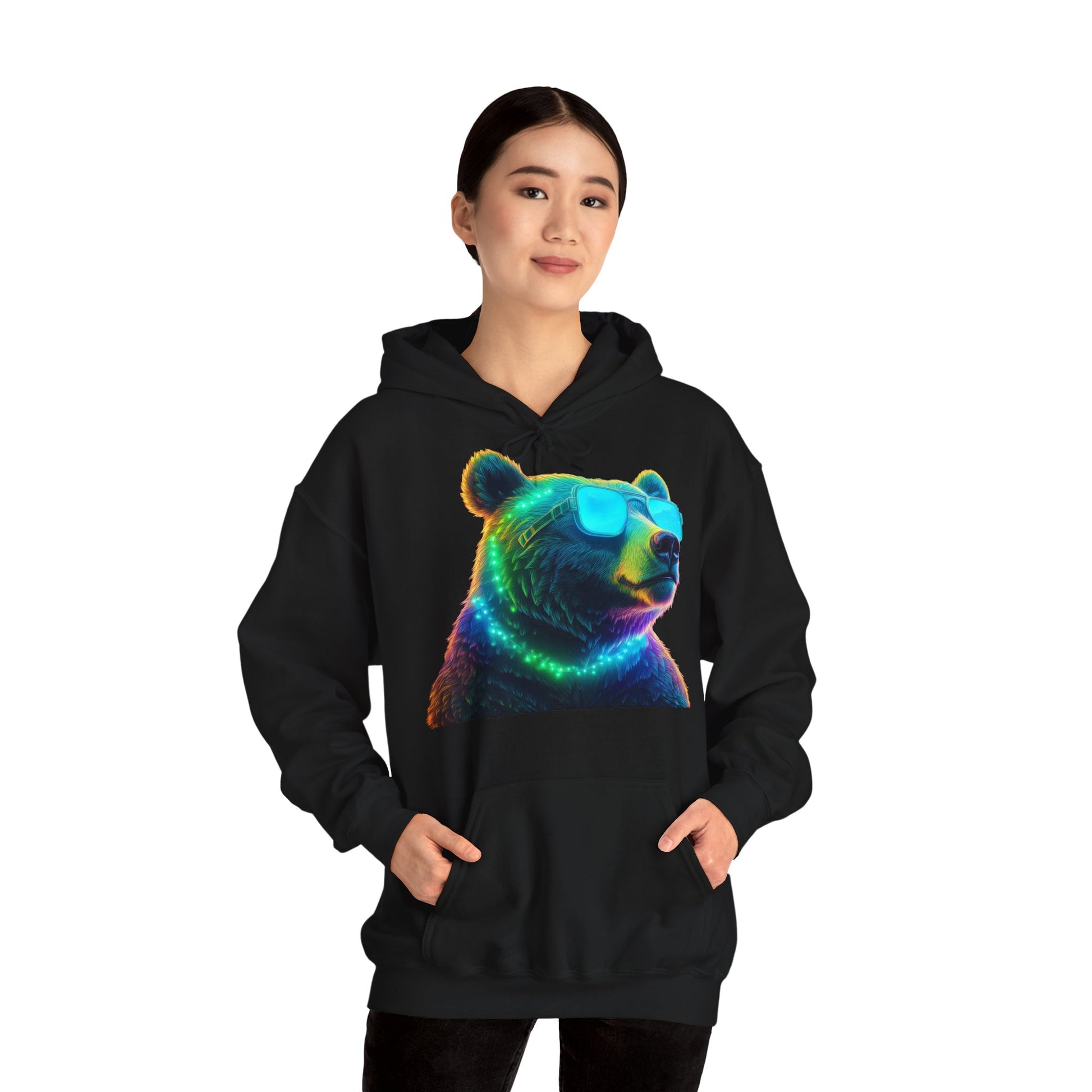 Cooler Bär mit Sonnenbrille Hoodie / Neon Bären Grafik / Wild Design für Tierliebhaber und Streetwear Fans / Lustiges Geschenk