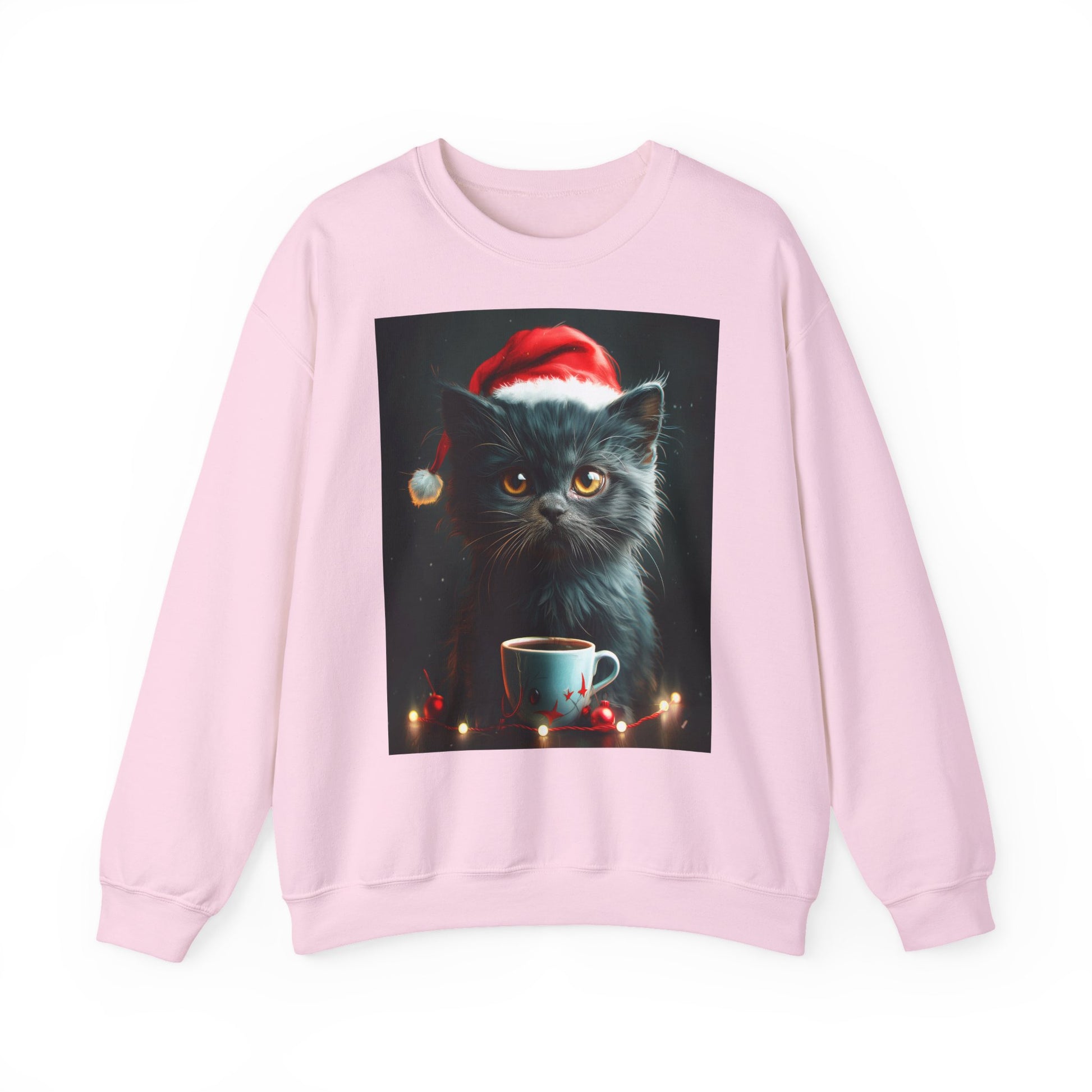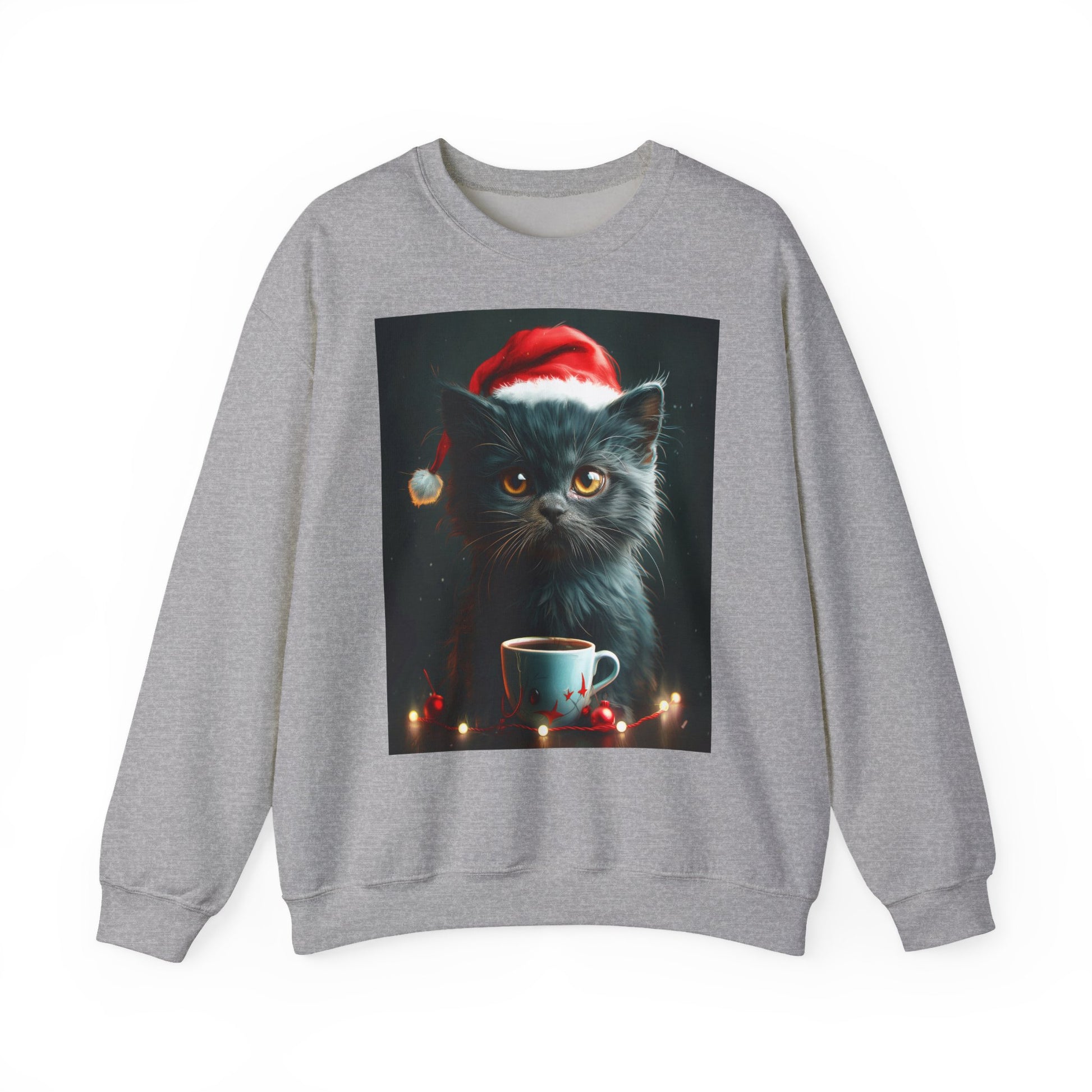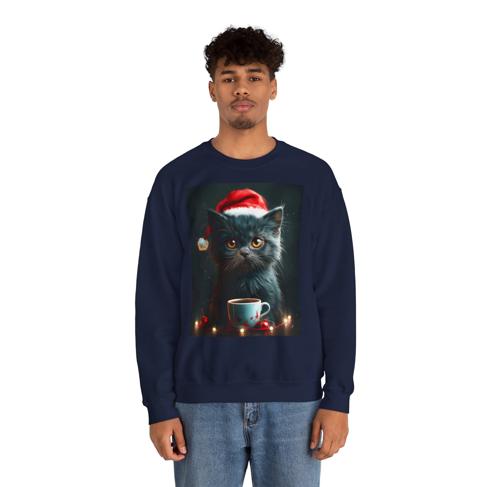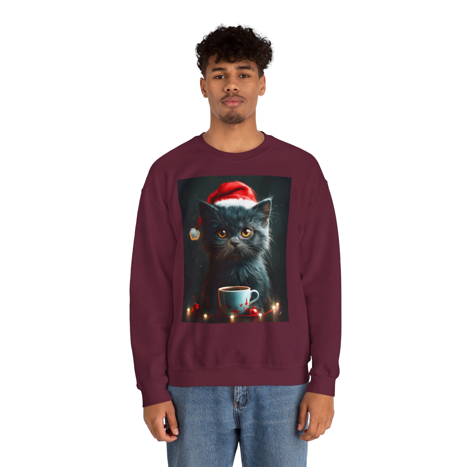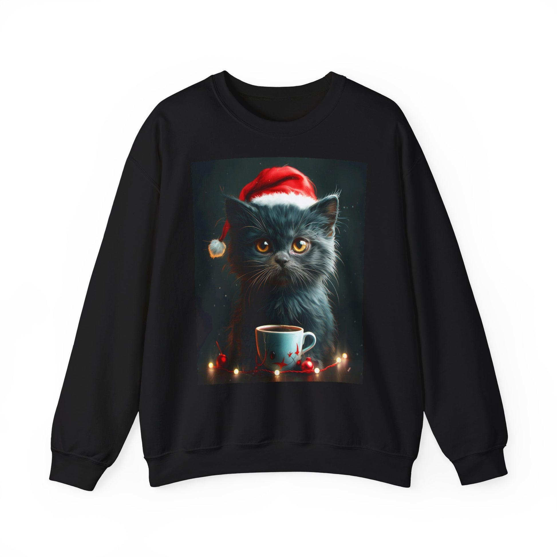 This cute black x-mas kitten sweatshirt exudes coziness and holiday cheer, perfect for anyone looking to add a festive touch to their winter wardrobe. Ideal for adults celebrating Christmas or cat lovers looking for a playful design.