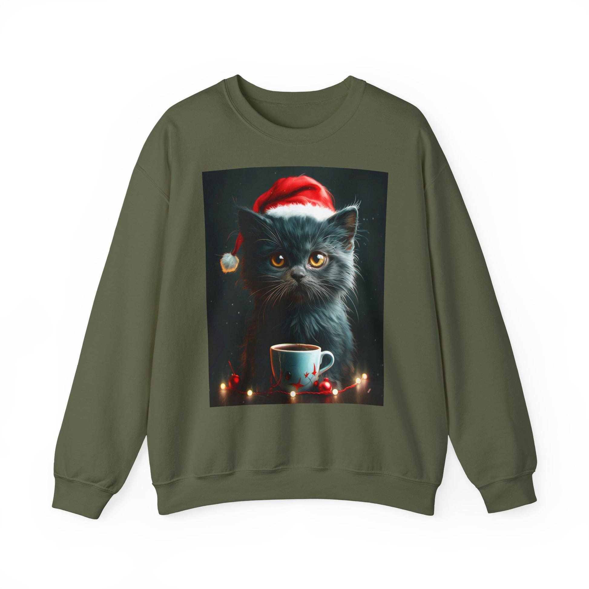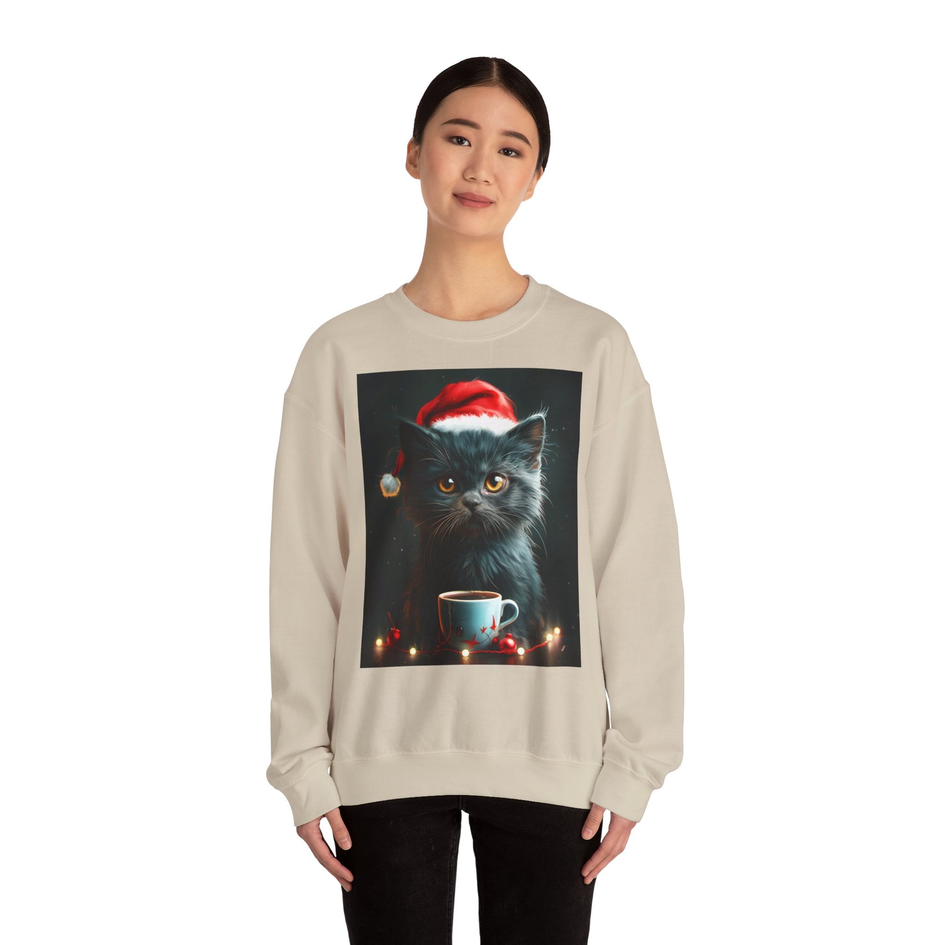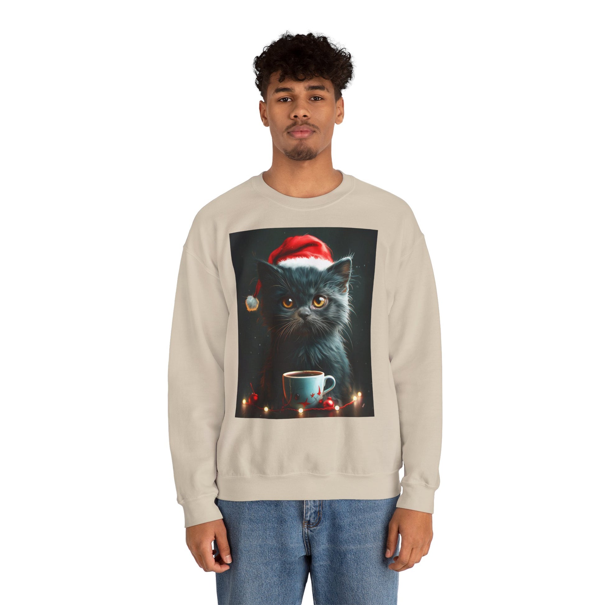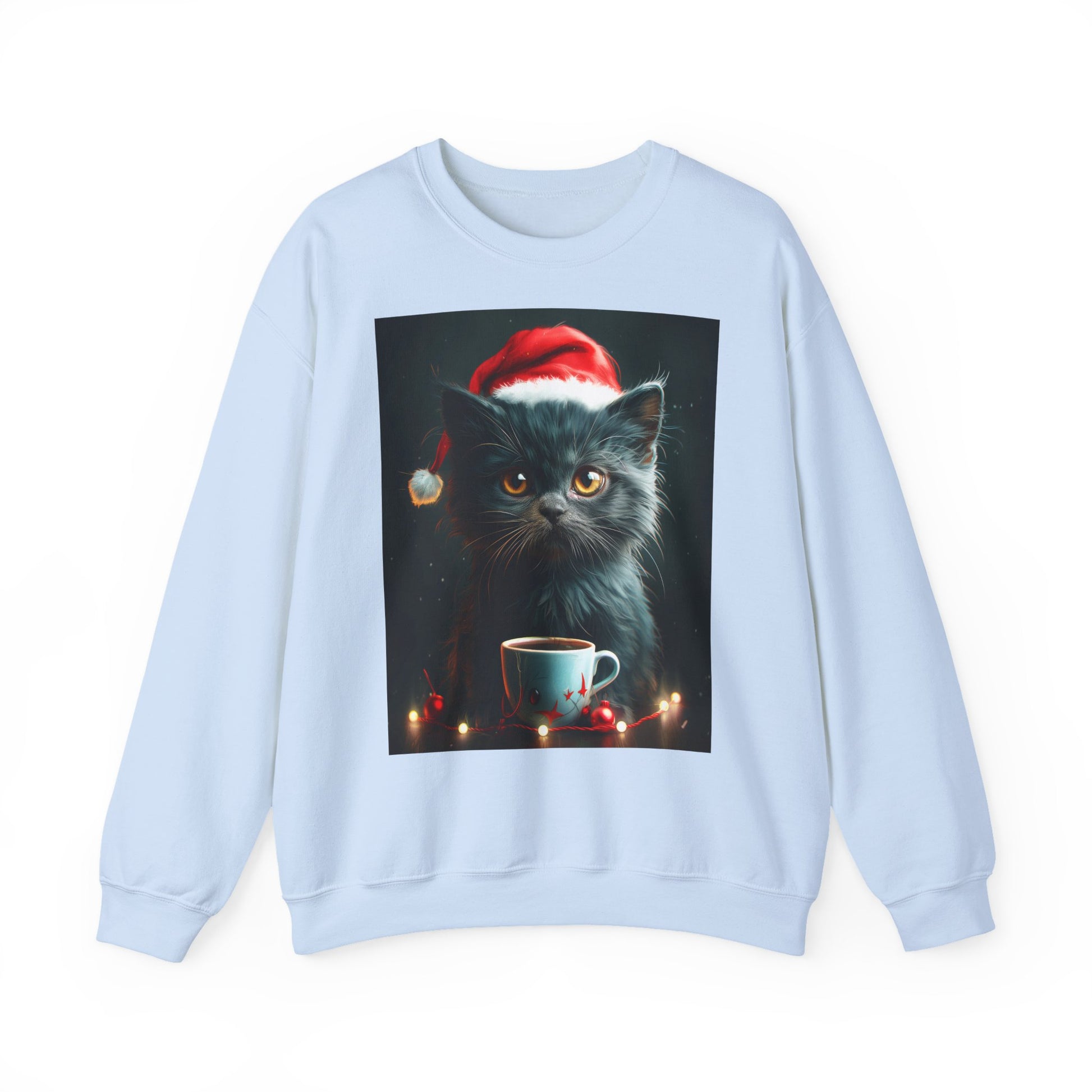 This cute black x-mas kitten sweatshirt exudes coziness and holiday cheer, perfect for anyone looking to add a festive touch to their winter wardrobe. Ideal for adults celebrating Christmas or cat lovers looking for a playful design.