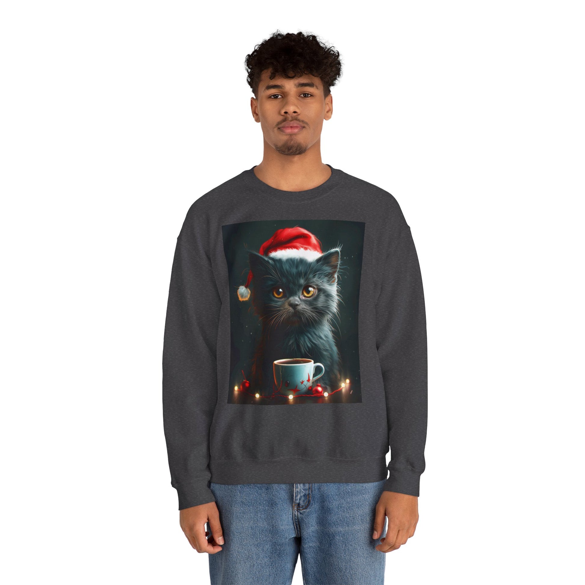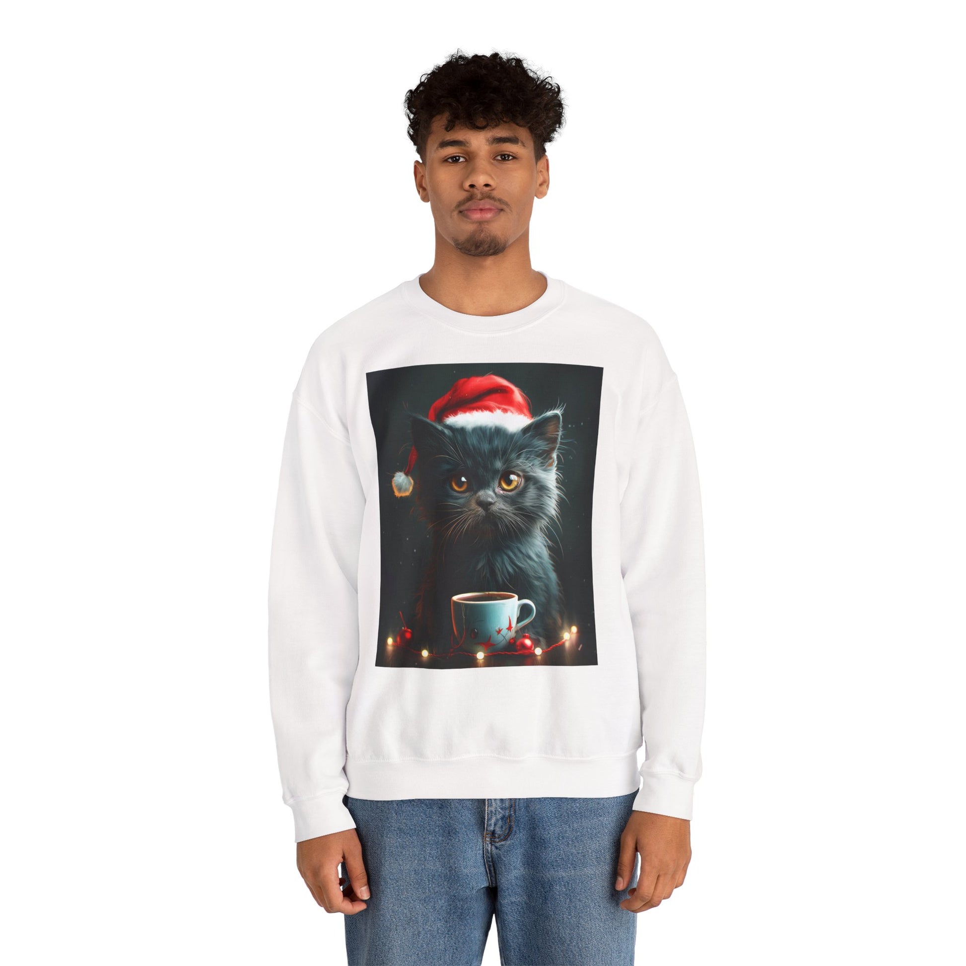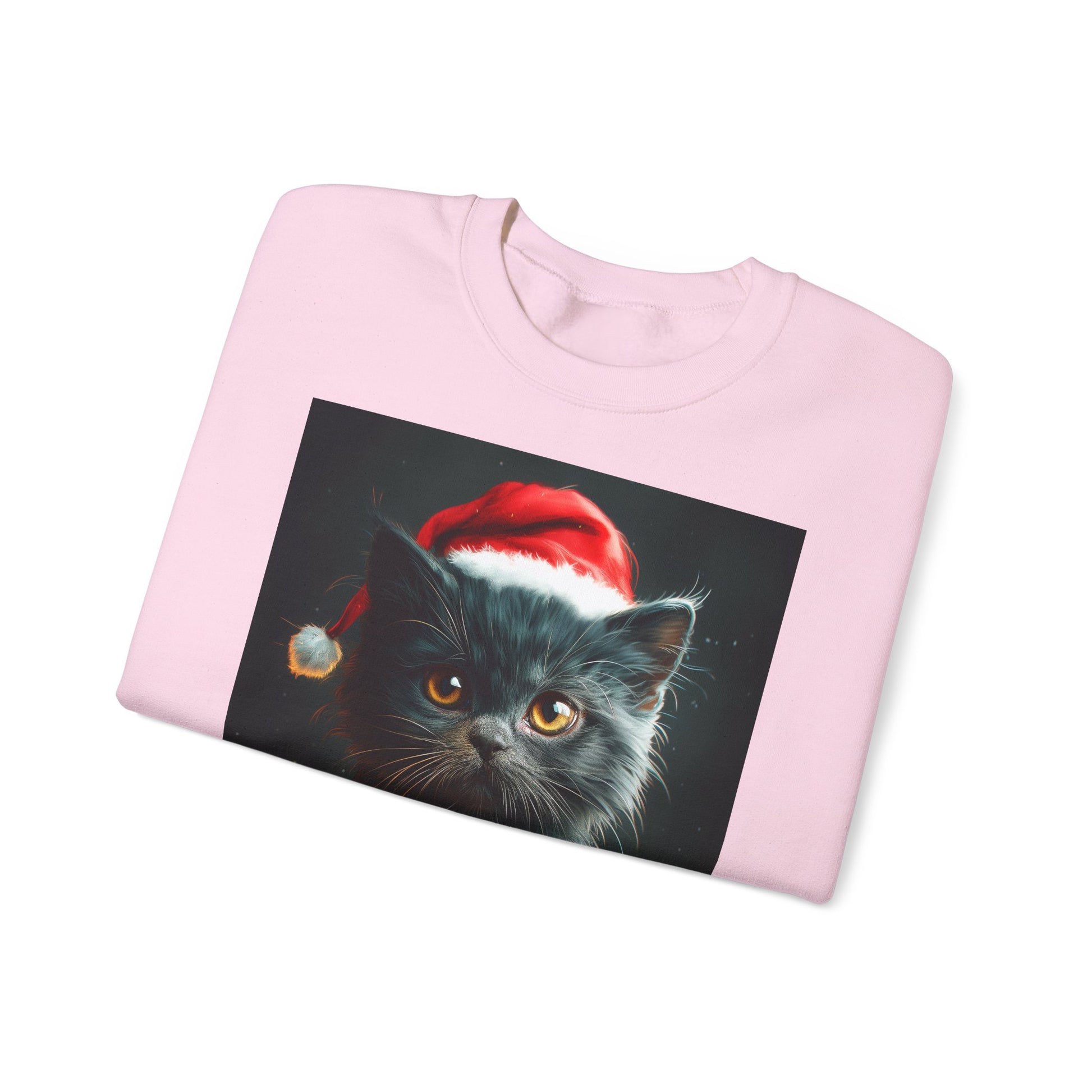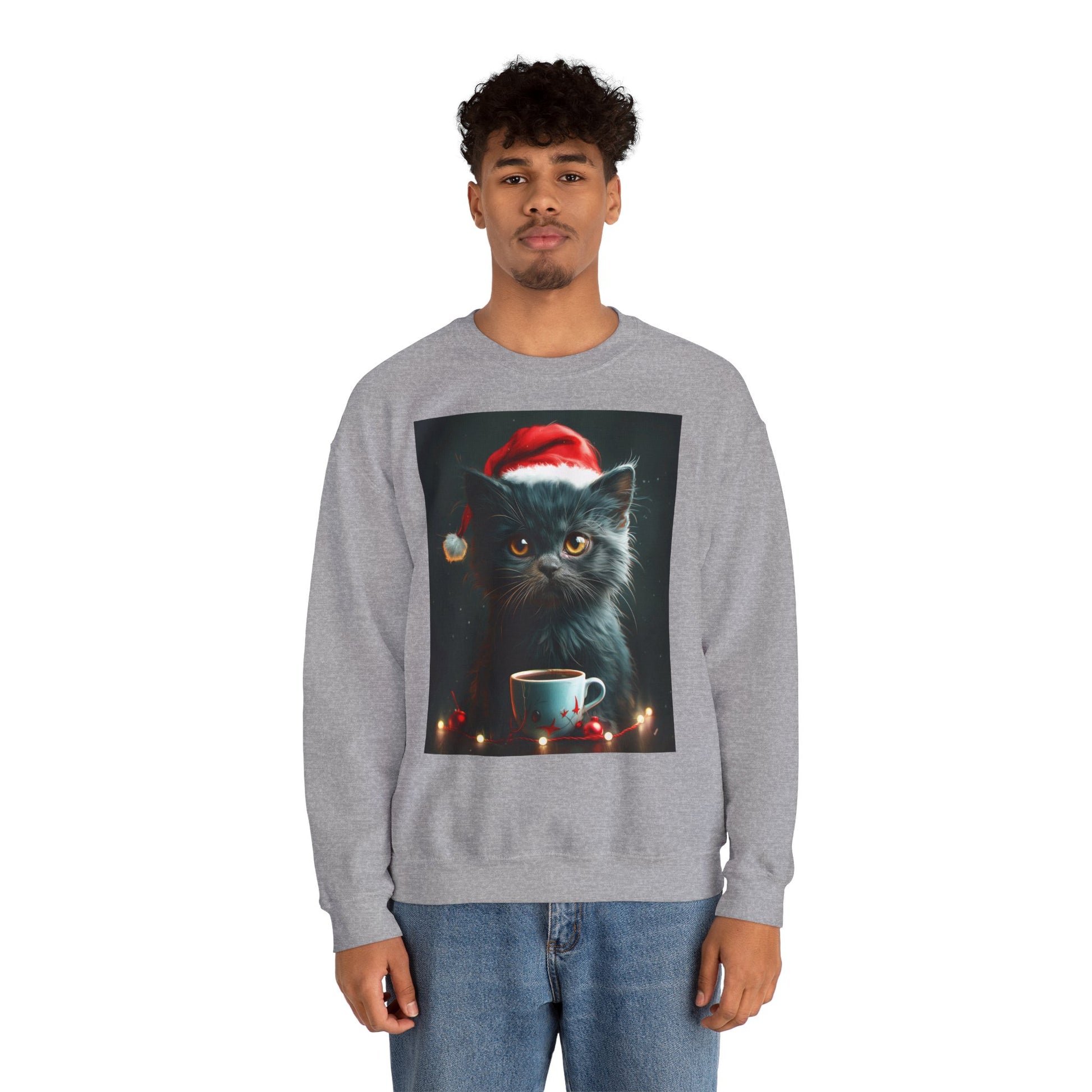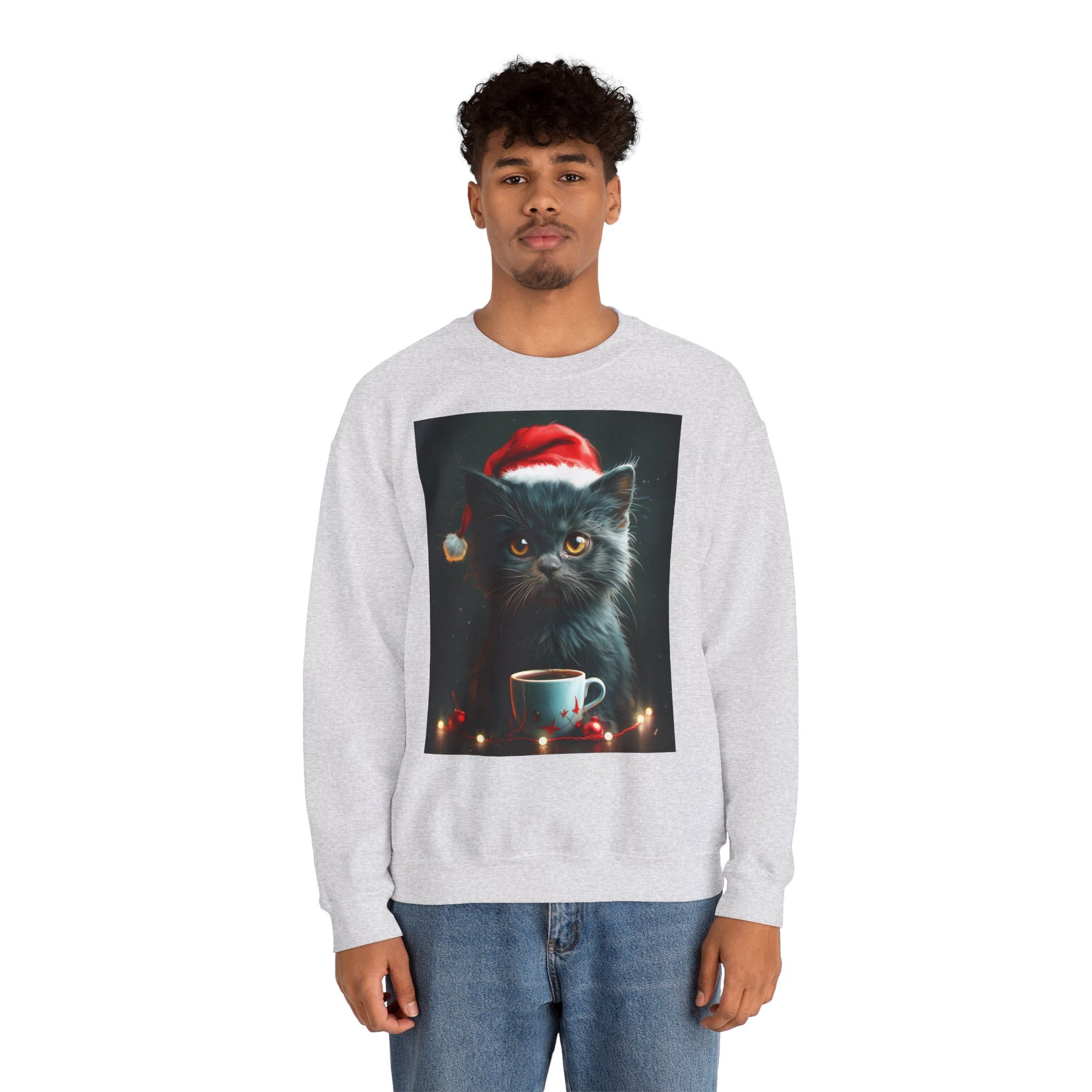 This cute black x-mas kitten sweatshirt exudes coziness and holiday cheer, perfect for anyone looking to add a festive touch to their winter wardrobe. Ideal for adults celebrating Christmas or cat lovers looking for a playful design.