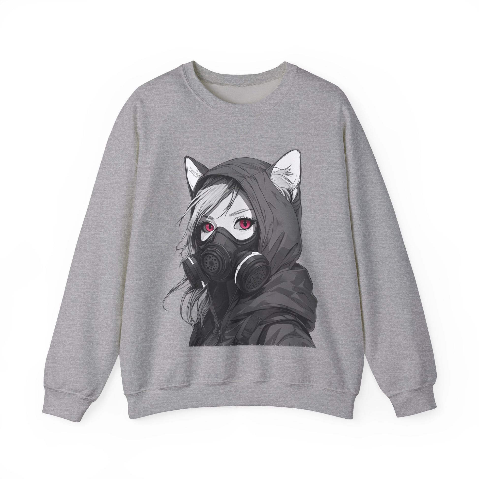 Future Anime Girl mit Gasmaske Sweatshirt /Schwarzes Unisex Streetwear Shirt, Katzengirl Design, Geschenk für Anime- und Sci-Fi-Fans