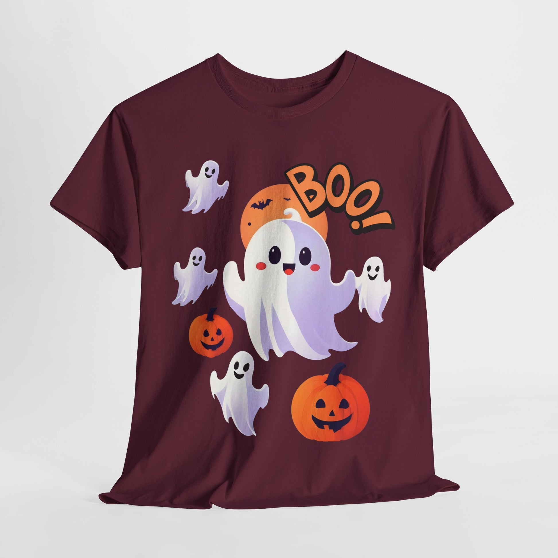 Halloween Cute Smiling Ghost Unisex Heavy Cotton Tee, Halloween Shirt, Spooky Ghost Tee, Halloween Costume, Halloween Party, Halloween Gift