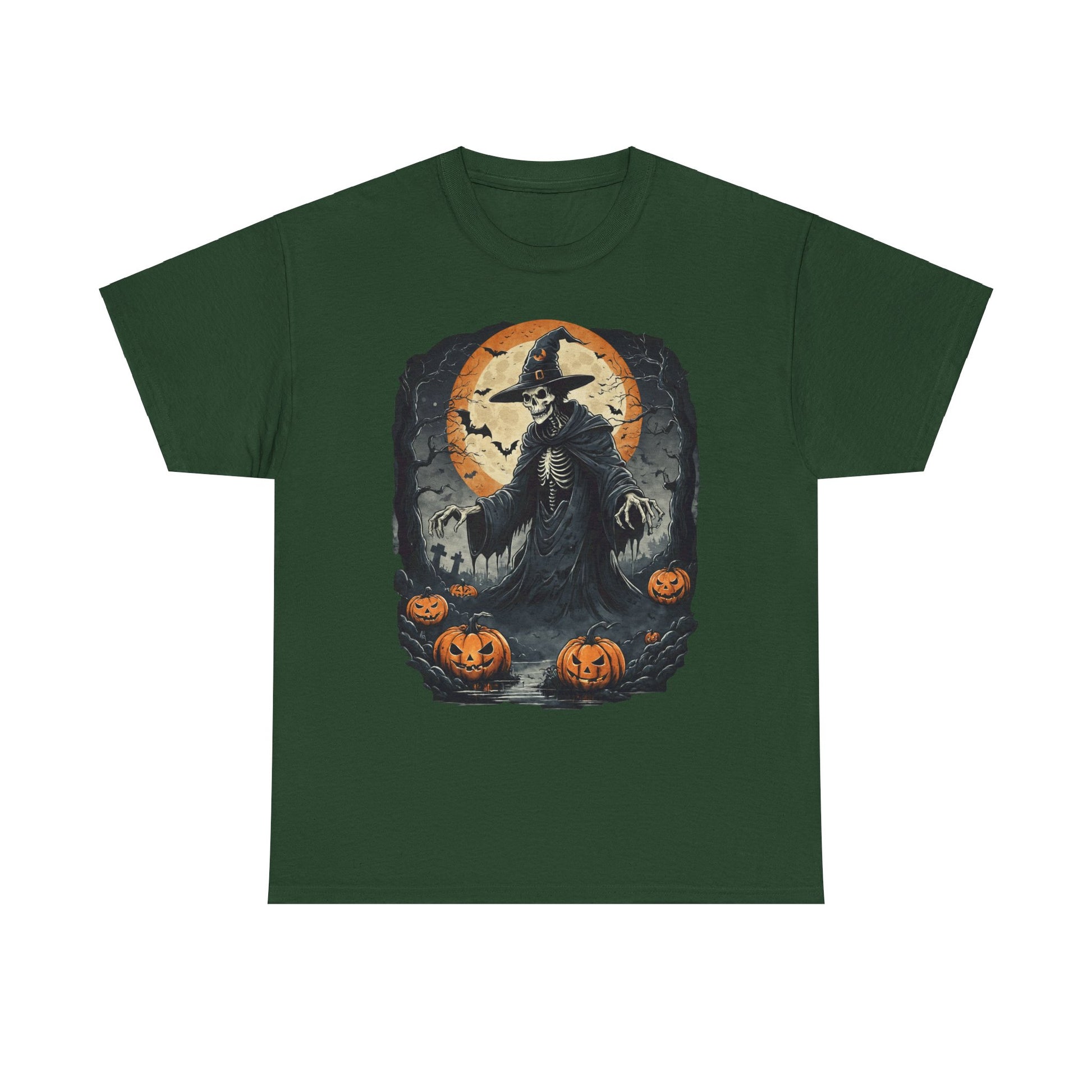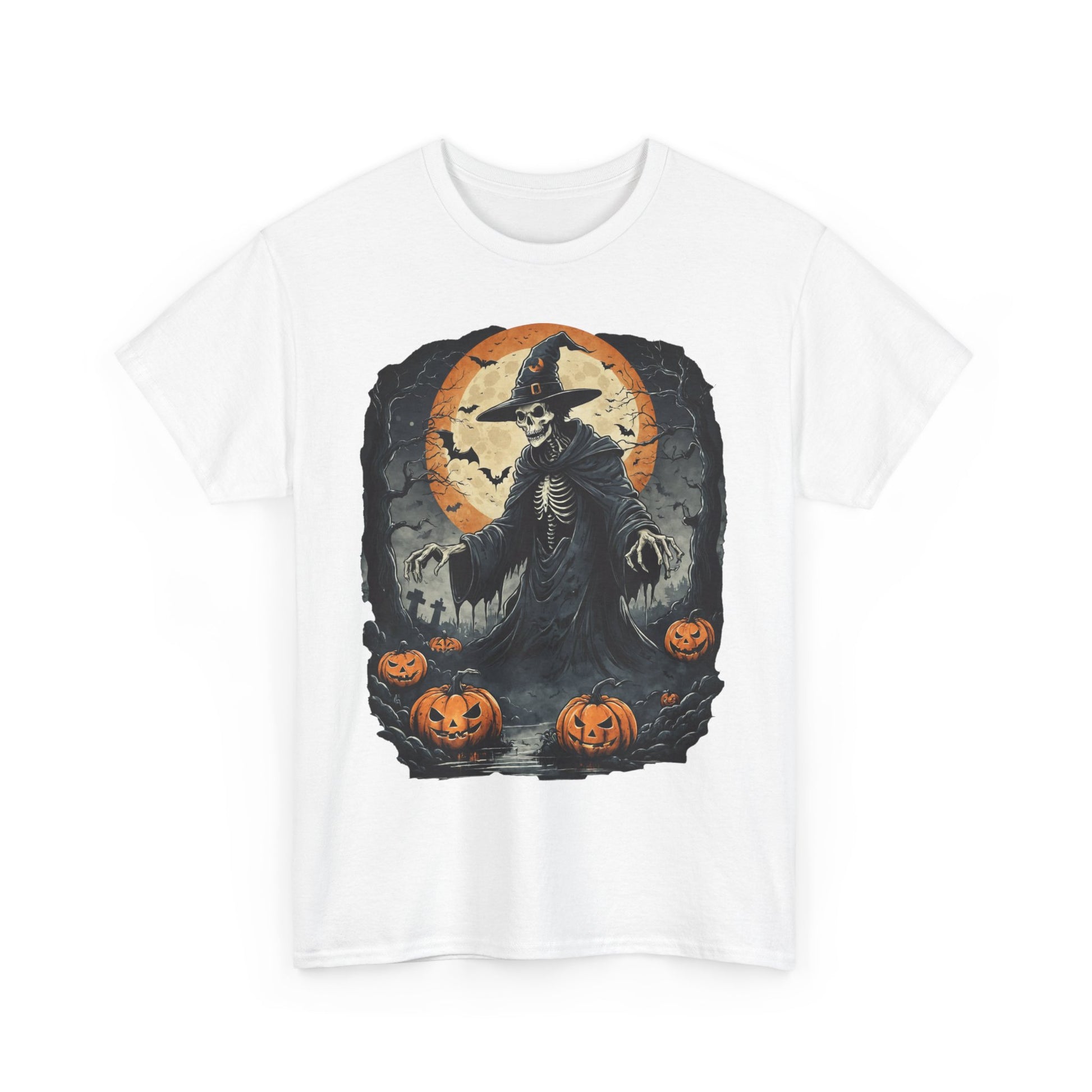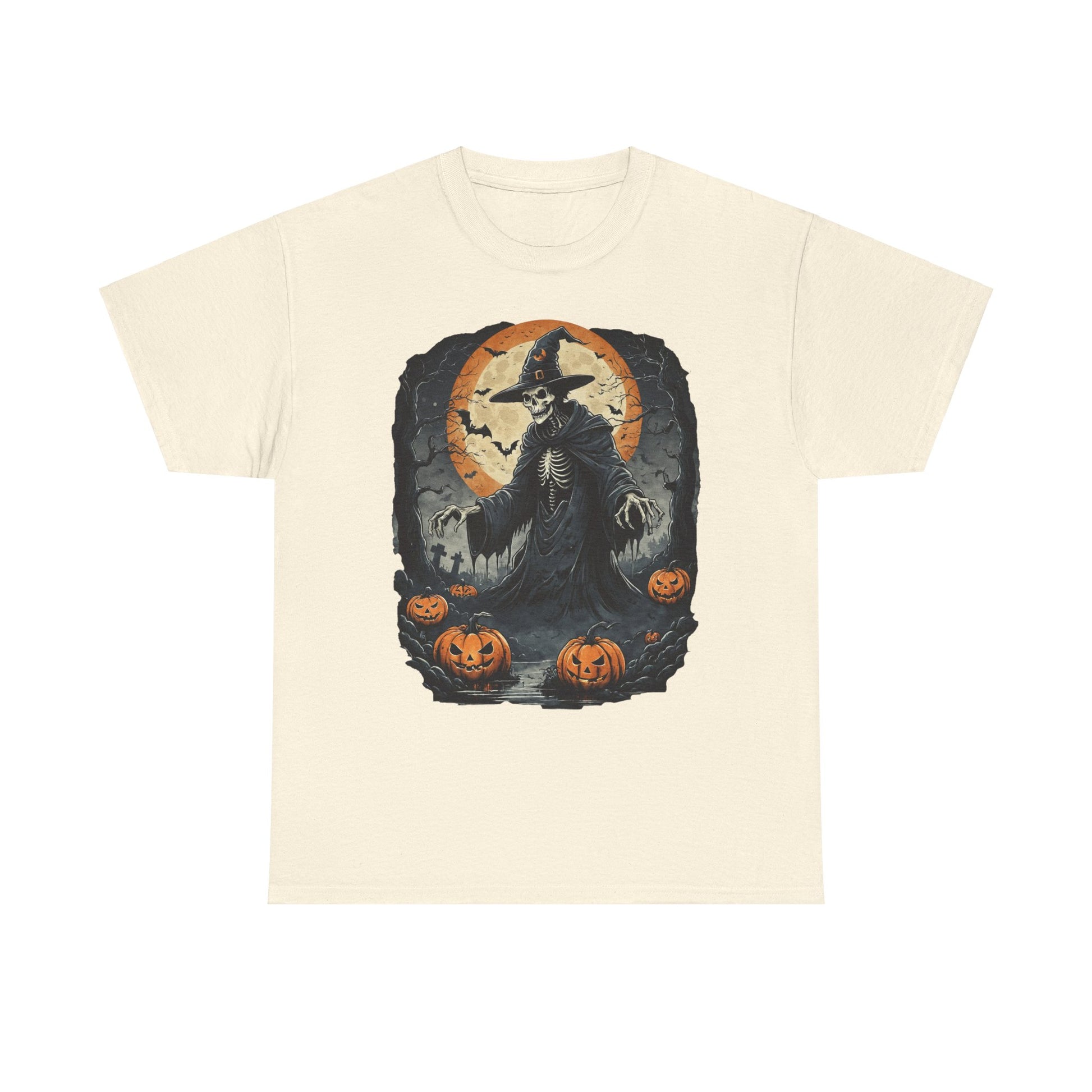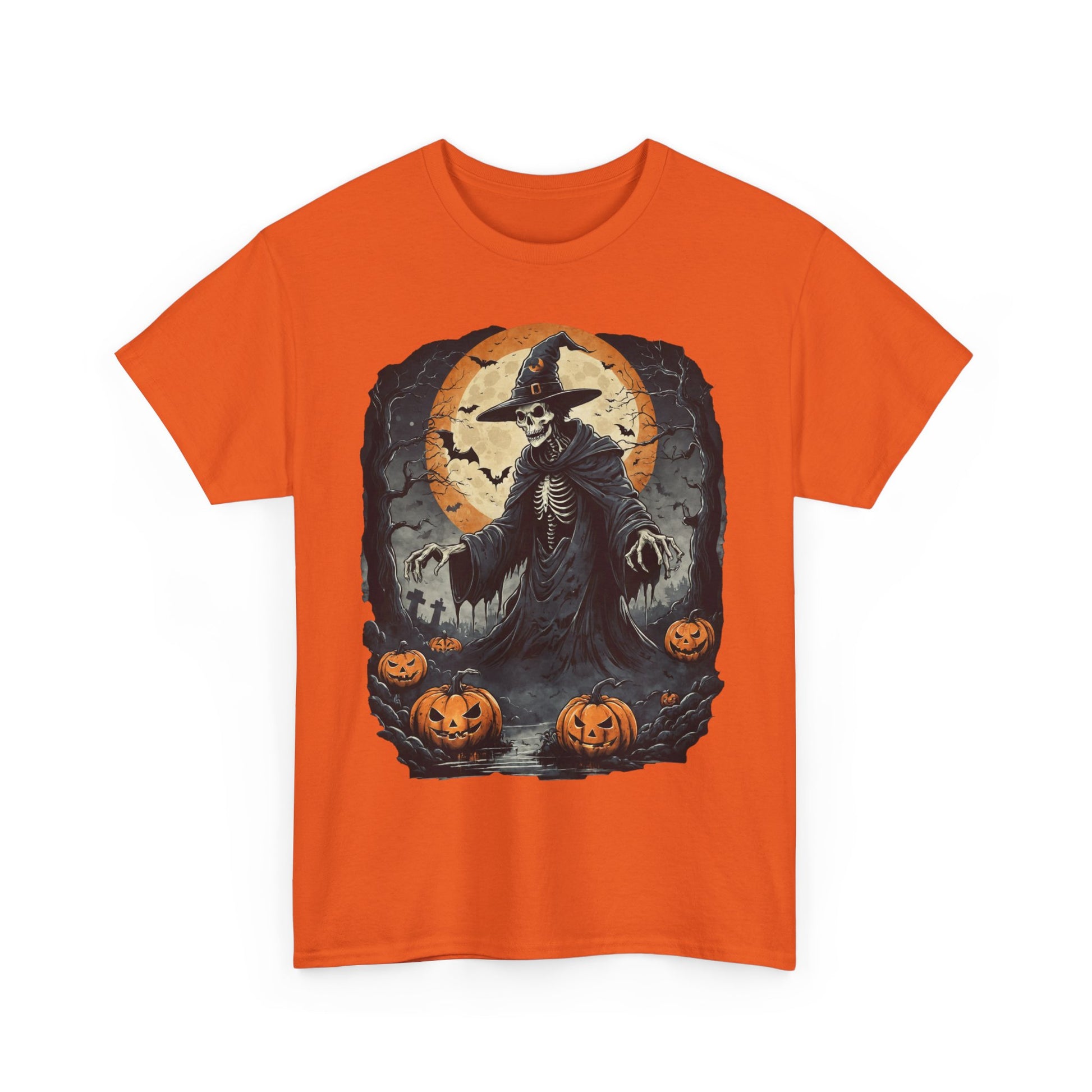 Halloween Pumpkin Skeleton Witch Tee, Spooky Unisex T-Shirt, Fall Season Shirt, Jack-O-Lantern Costume Top, Autumn Witch Theme Apparel