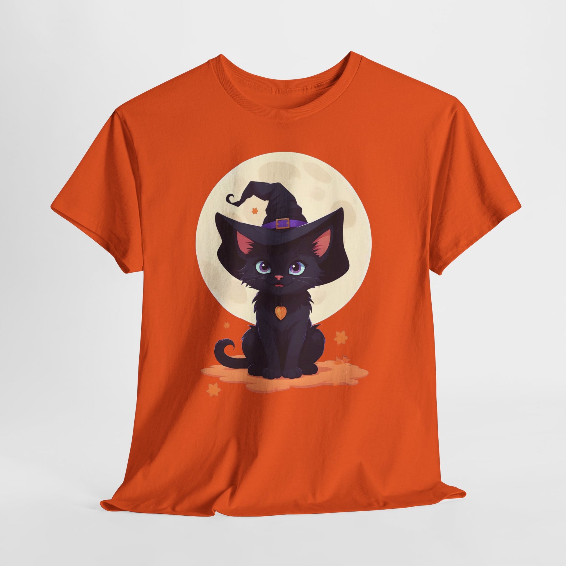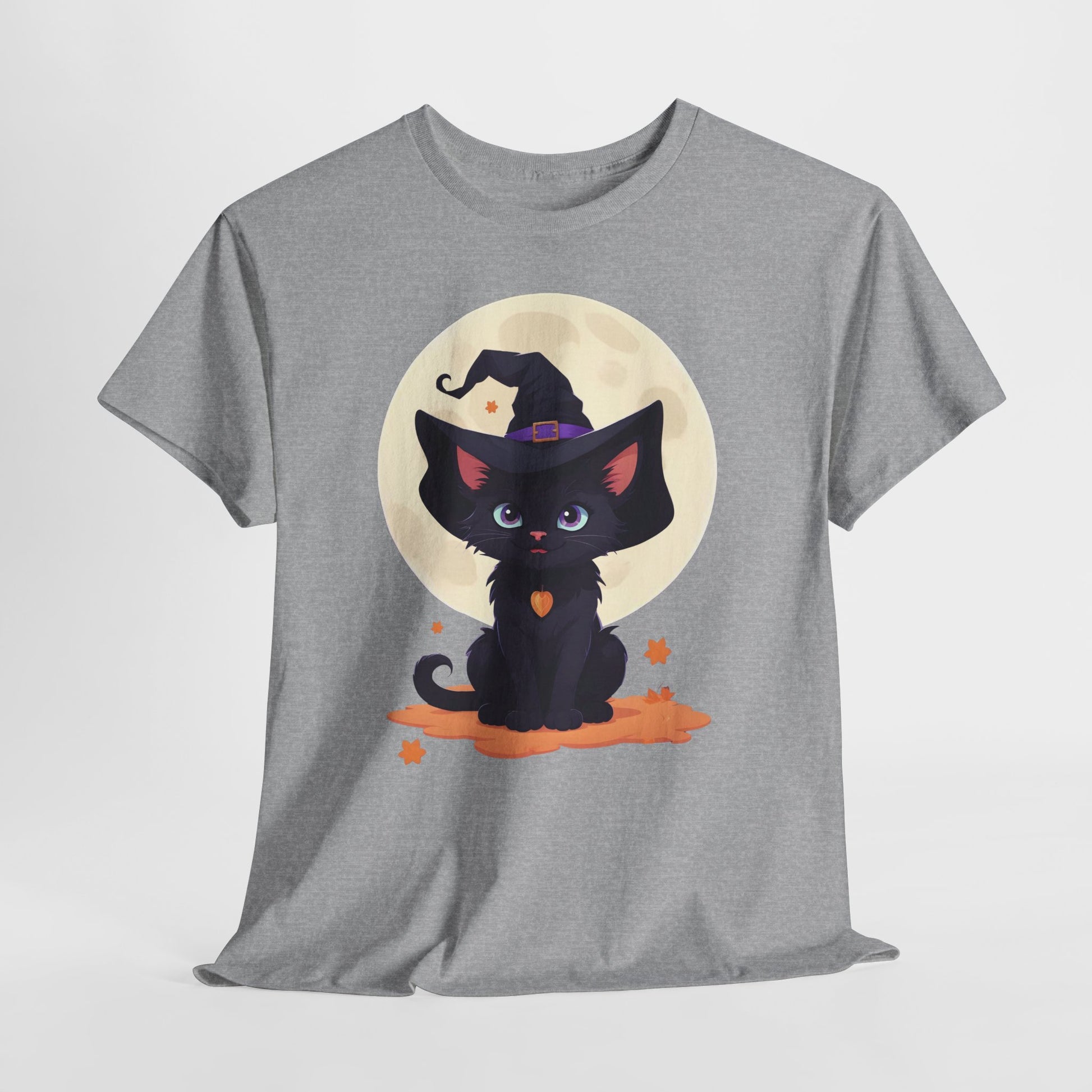 Halloween Witch Kitten T-Shirt, Black Cat Tee, Fantasy Costume Clothing, Cute Smiling Cat Shirt, Gift for Cat Lovers, Halloween Tee Shirt