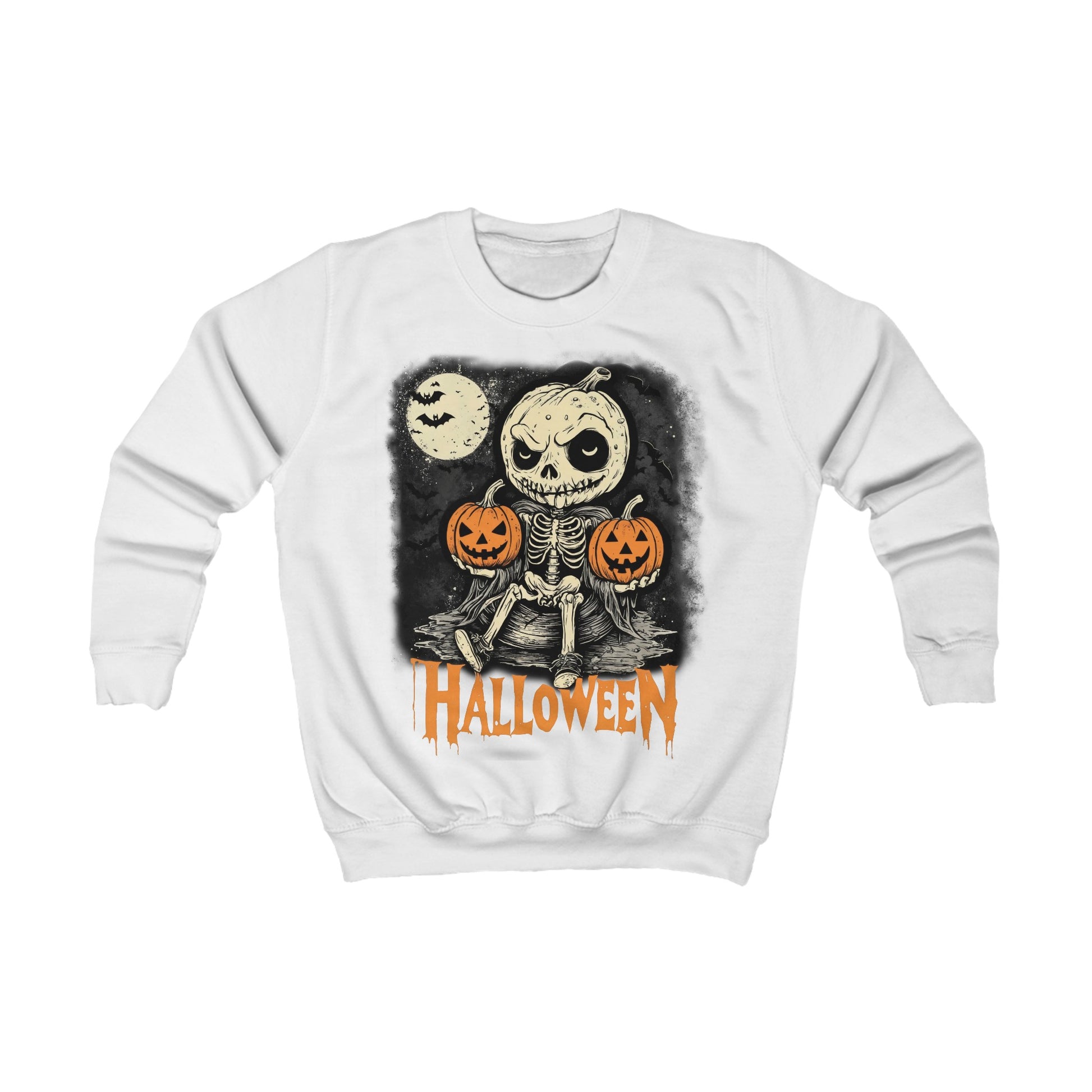 Kids Sweatshirt, Halloween Pumpkin little Skull design, Trick or Treat Costume, Jack-O-Lantern, Autumn Fall Clothing, Spooky Fashion,