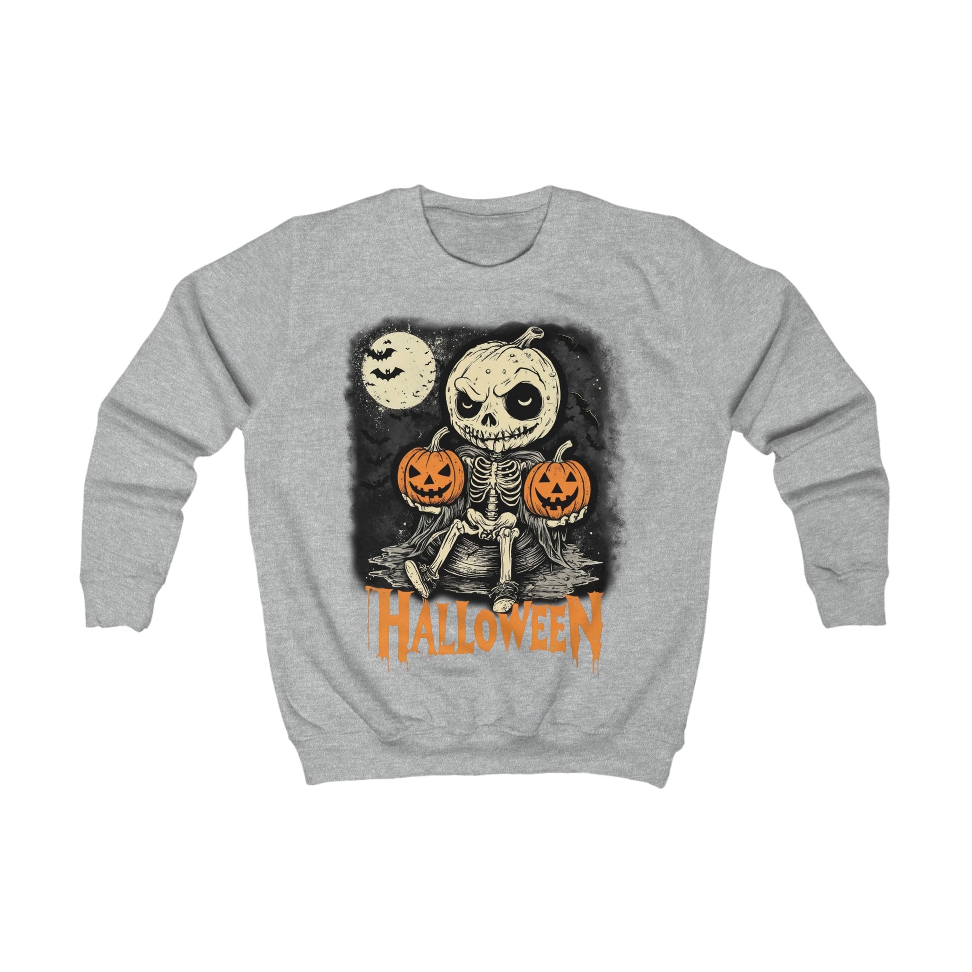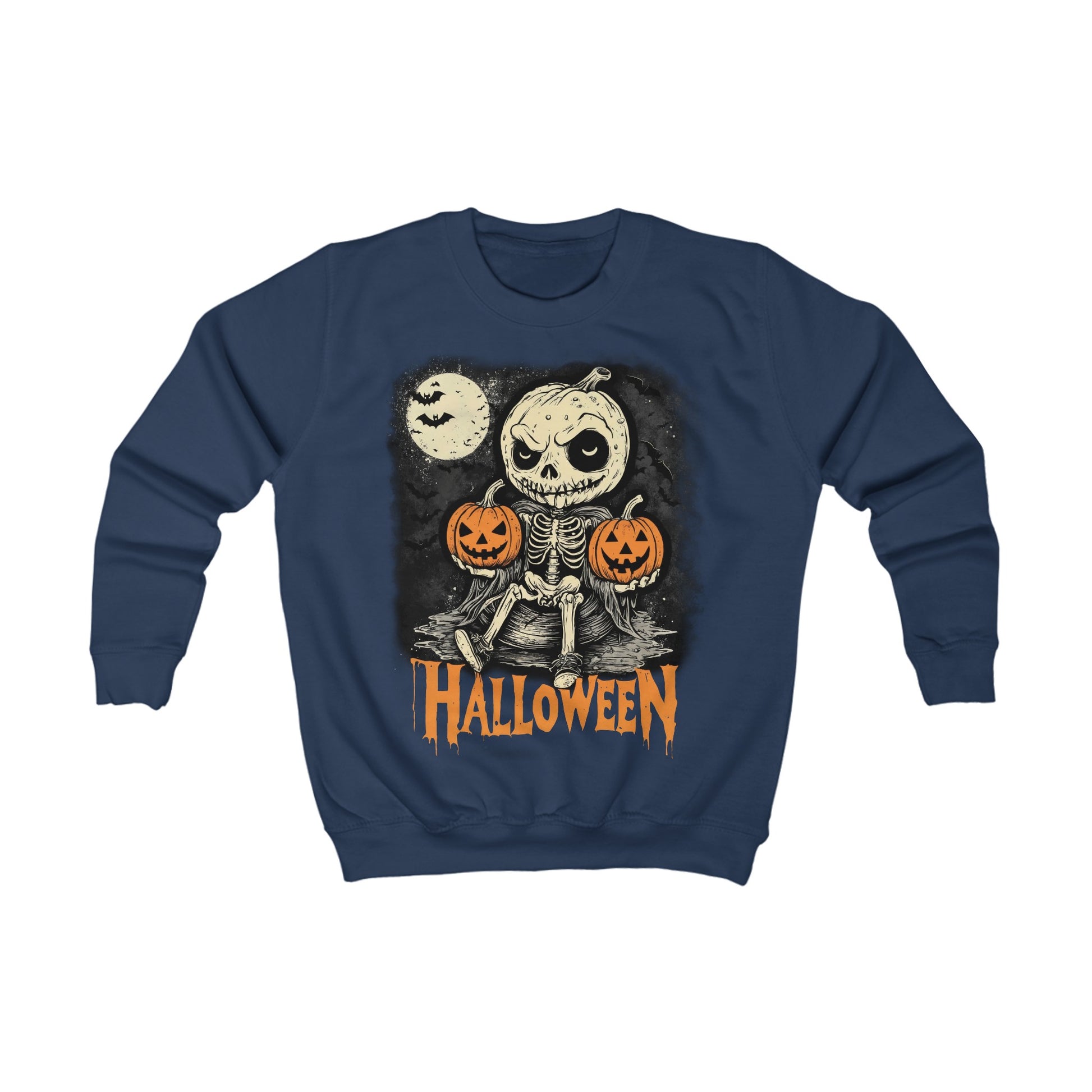 This Kids Sweatshirt features a Halloween design with a whimsical Pumpkin and little Skull, perfect for the spooky season. Made from 80% Cotton 20% Polyester fabric, it is soft and comfortable to wear. The ribbed knit collar and side seams help maintain the garment's shape, while the tear away label adds convenience. This sweatshirt is ideal for children who love Halloween and want to show off their festive spirit.