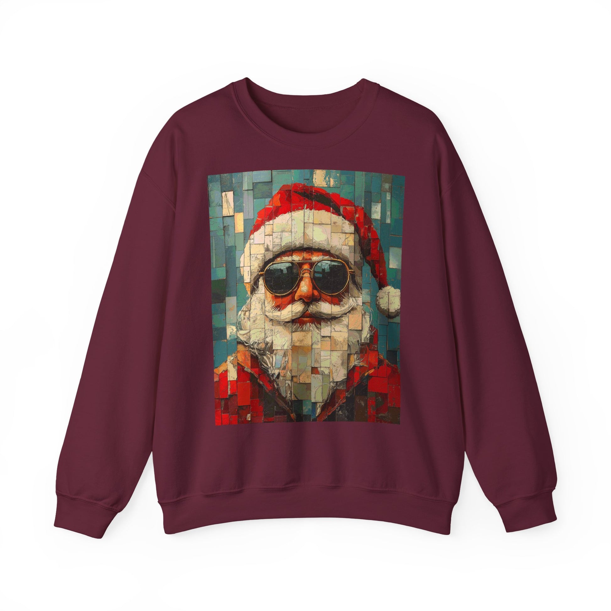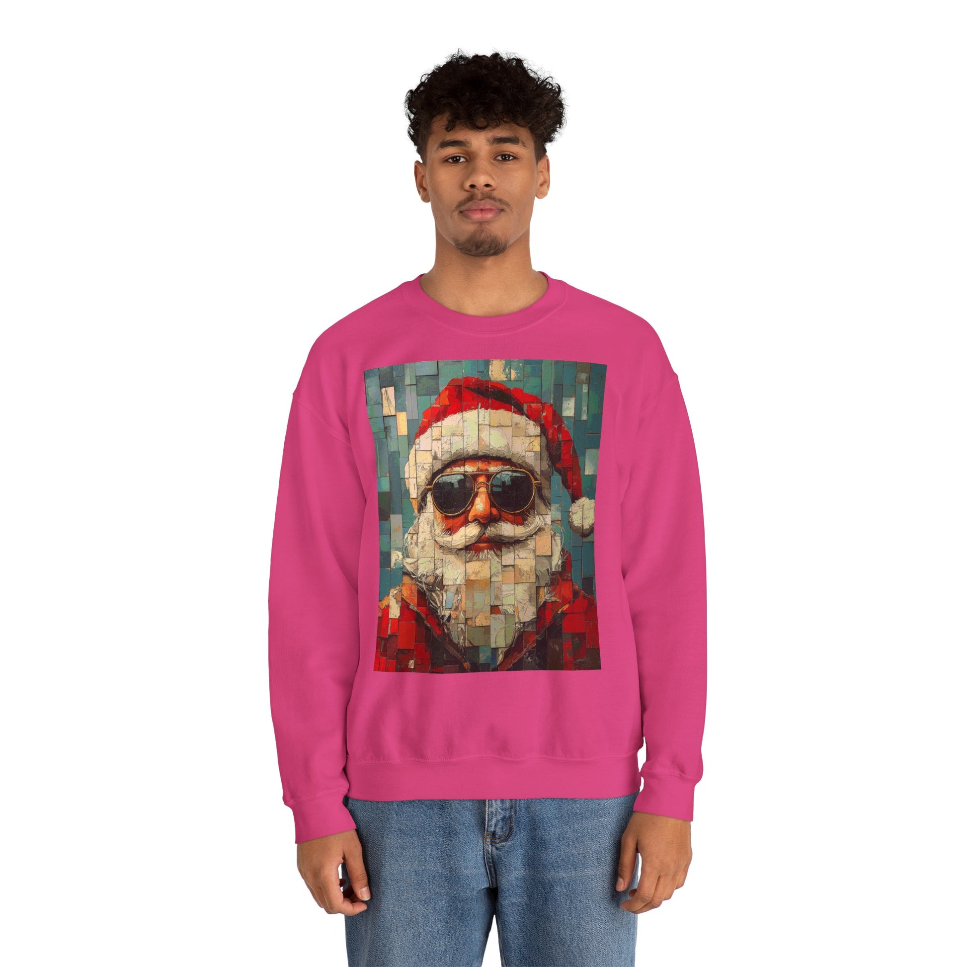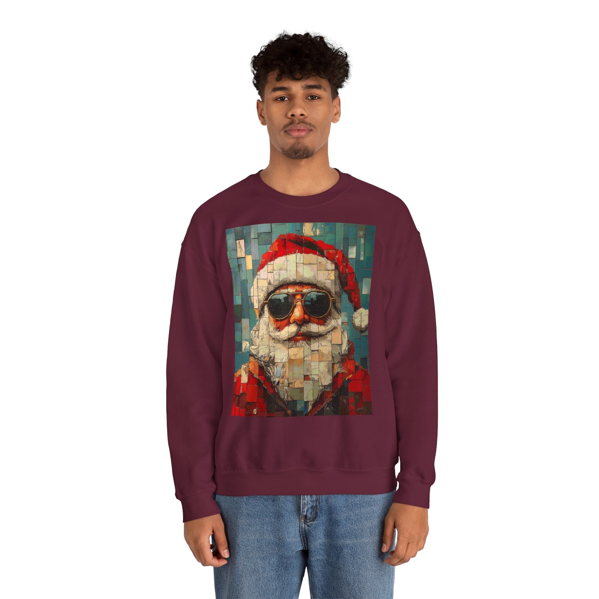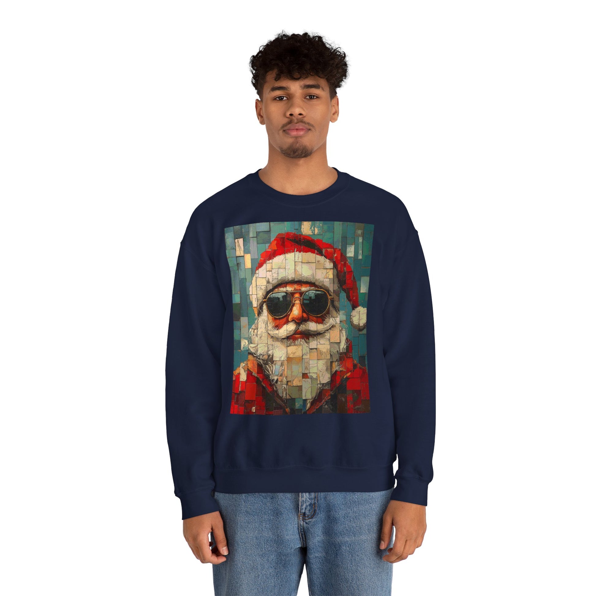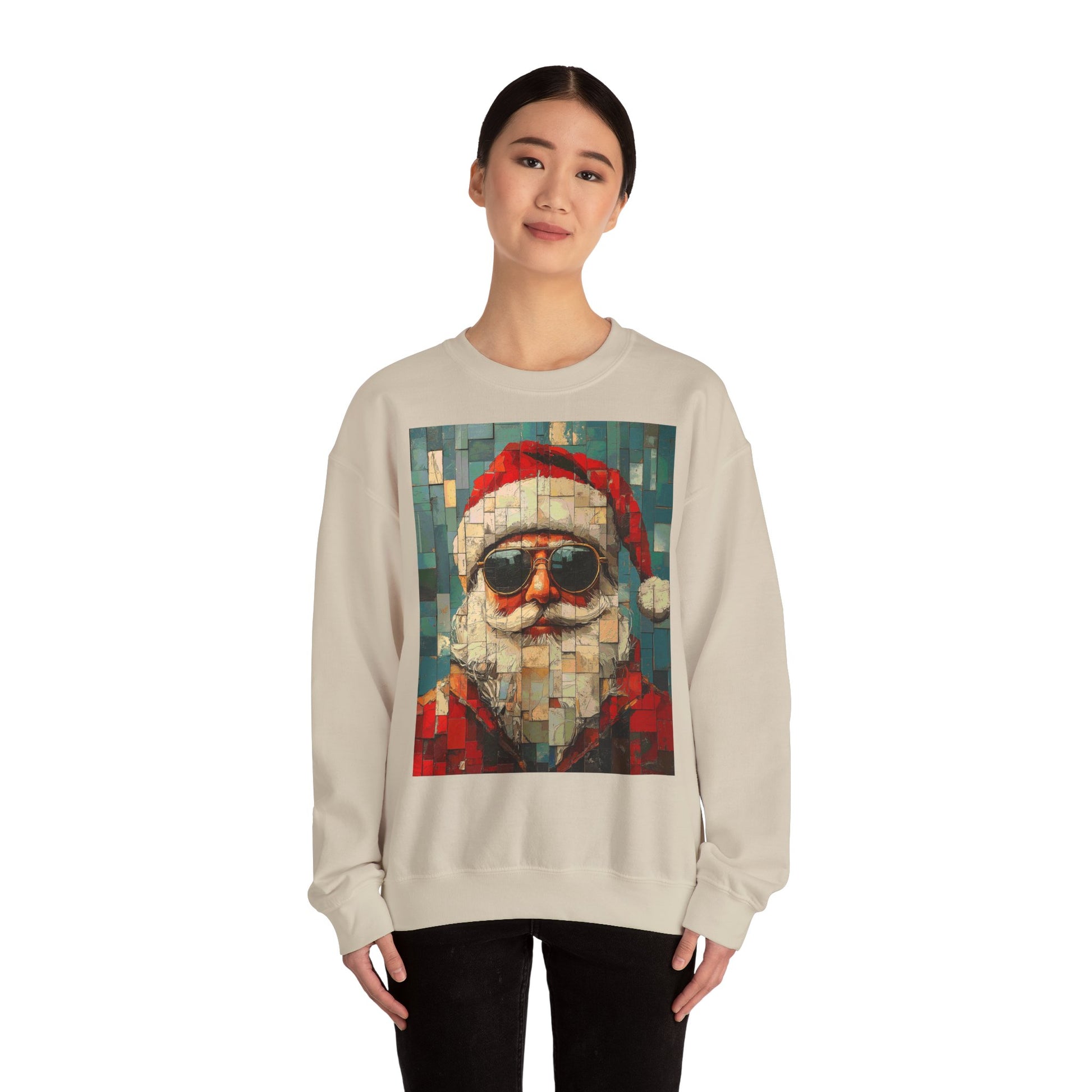 This mosaic Santa Claus sweatshirt brings a fresh, handcrafted energy to winter evenings. The stylized mosaic pattern scatters warm reds and muted greens into a slightly retro, artisanal portrait of Santa—like a holiday tile found in a cozy mountain lodge. It drapes with a relaxed, classic crewneck cut that layers easily over shirts or under coats. Wear it to low-key holiday gatherings, late-night cookie runs, or while stringing lights—this sweatshirt reads like a quiet celebration, not loud seasonal noise. The embroidered options add tactile detail to the chest or wrists, and the soft, medium-weight fabric keeps you comfortably warm without feeling bulky. It’s made with responsibly sourced cotton and finished with durable stitching, so the piece feels lived-in and ready for many winters to come.