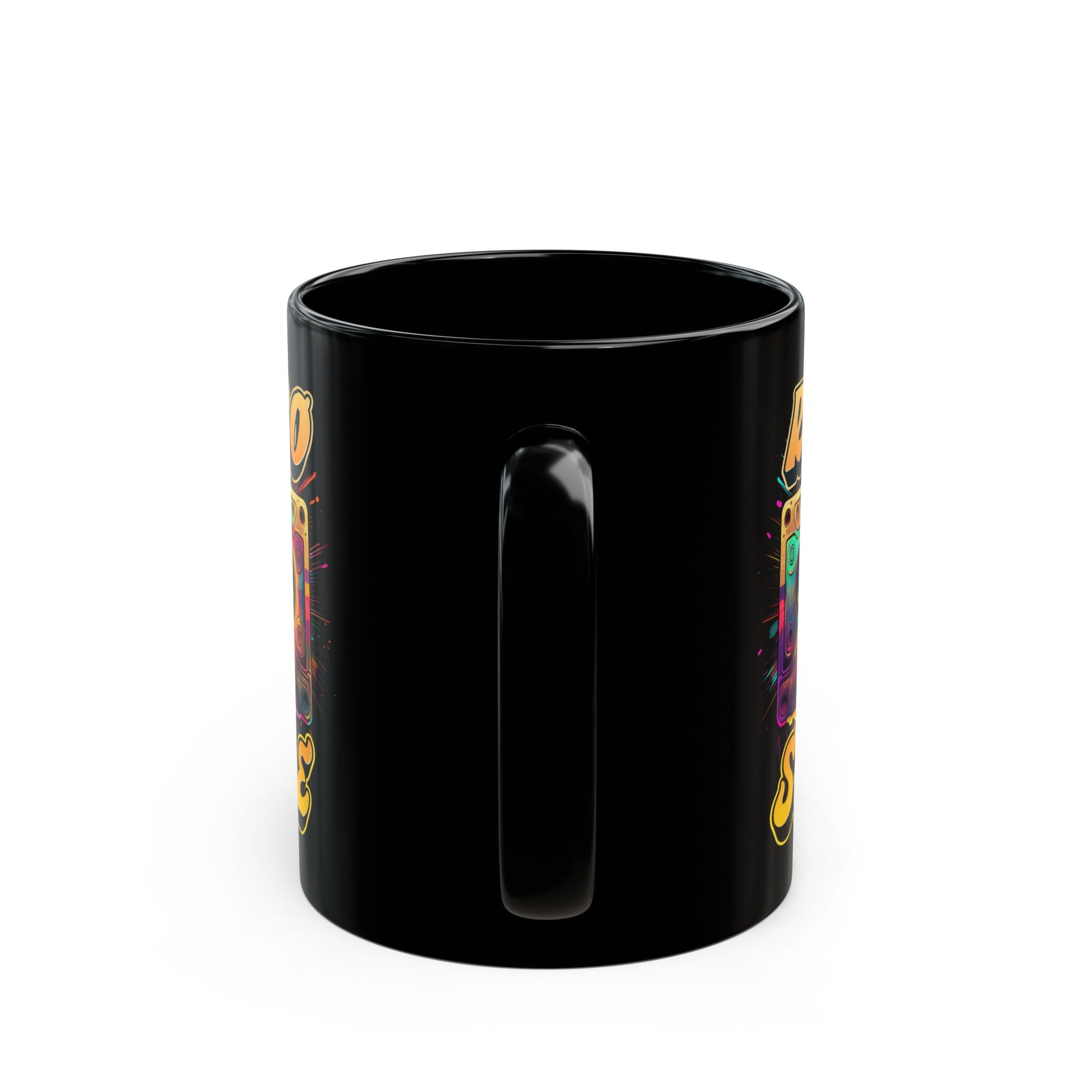 Oldschool Vibes 80er Retro Kassette Tasse, Geschenk für Musikliebhaber, Vintage Musik, Retro Kassette T-Shirt, Tasse Black Mug (11oz, 15oz)