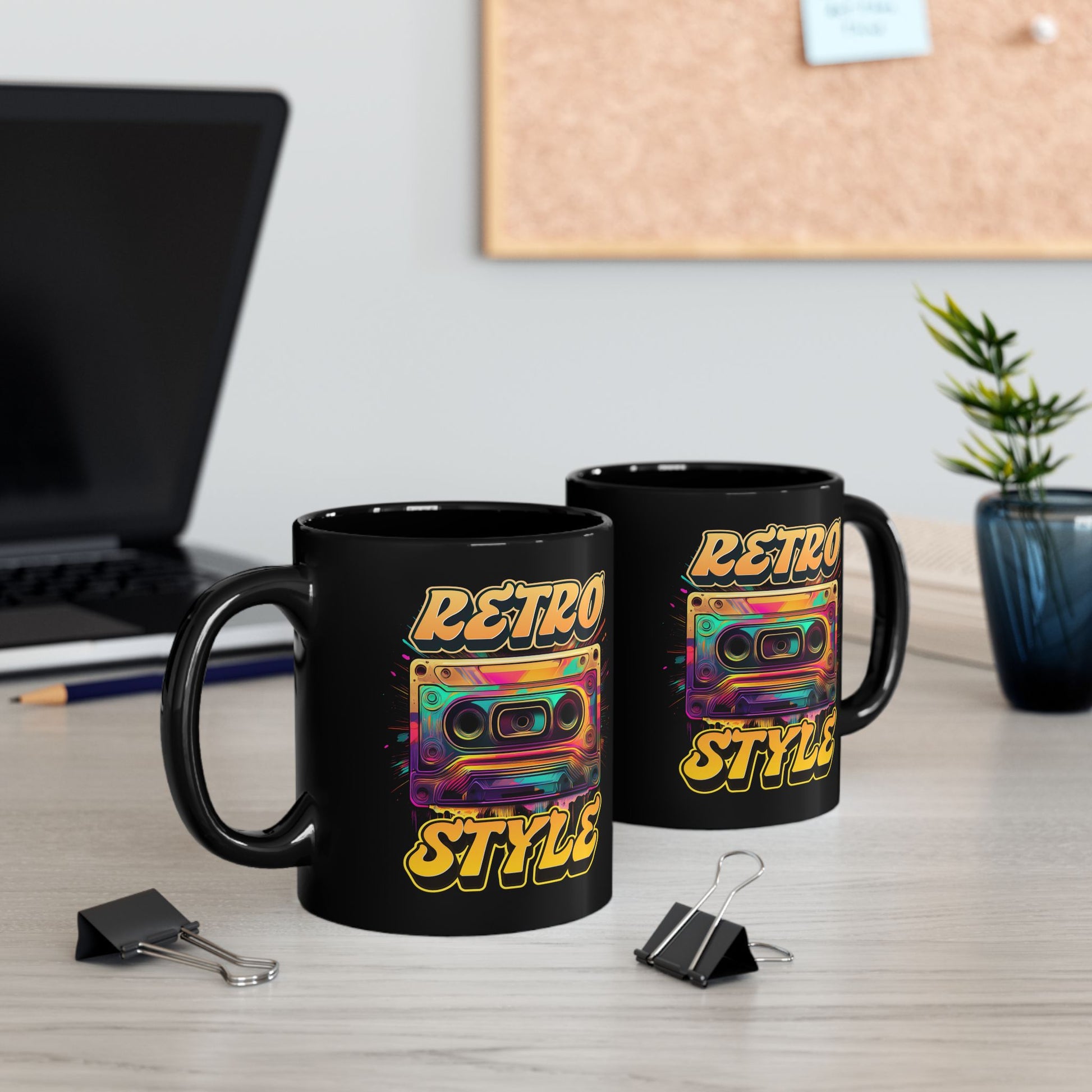 Oldschool Vibes 80er Retro Kassette Tasse, Geschenk für Musikliebhaber, Vintage Musik, Retro Kassette T-Shirt, Tasse Black Mug (11oz, 15oz)