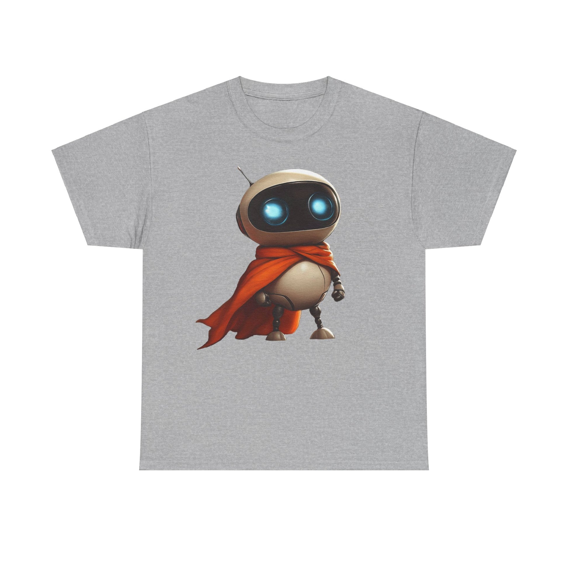Süßer Roboter T-Shirt mit Umhang / Sci-Fi Cartoon Roboter Grafik Tee / Lustiges Unisex Shirt für Tech-Liebhaber