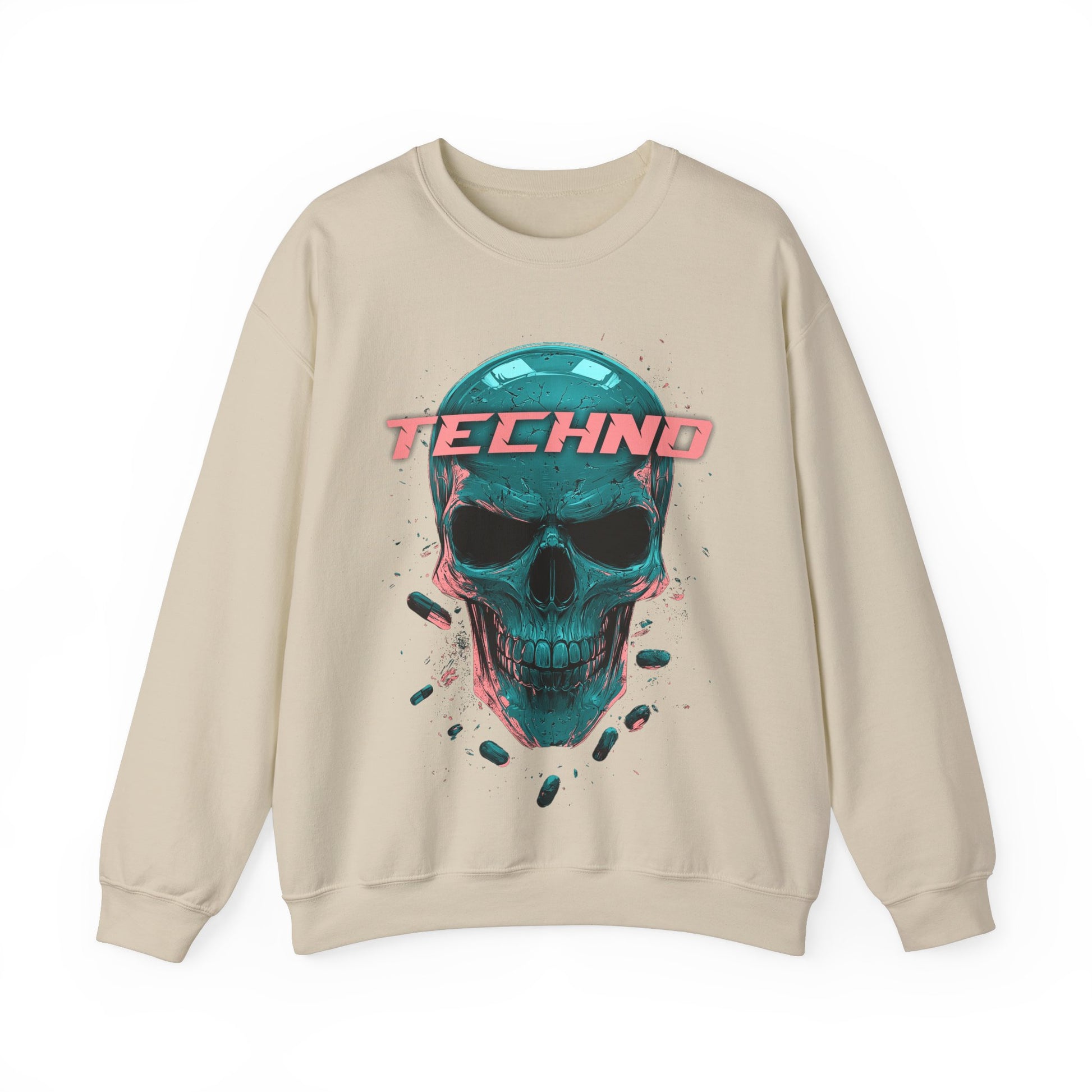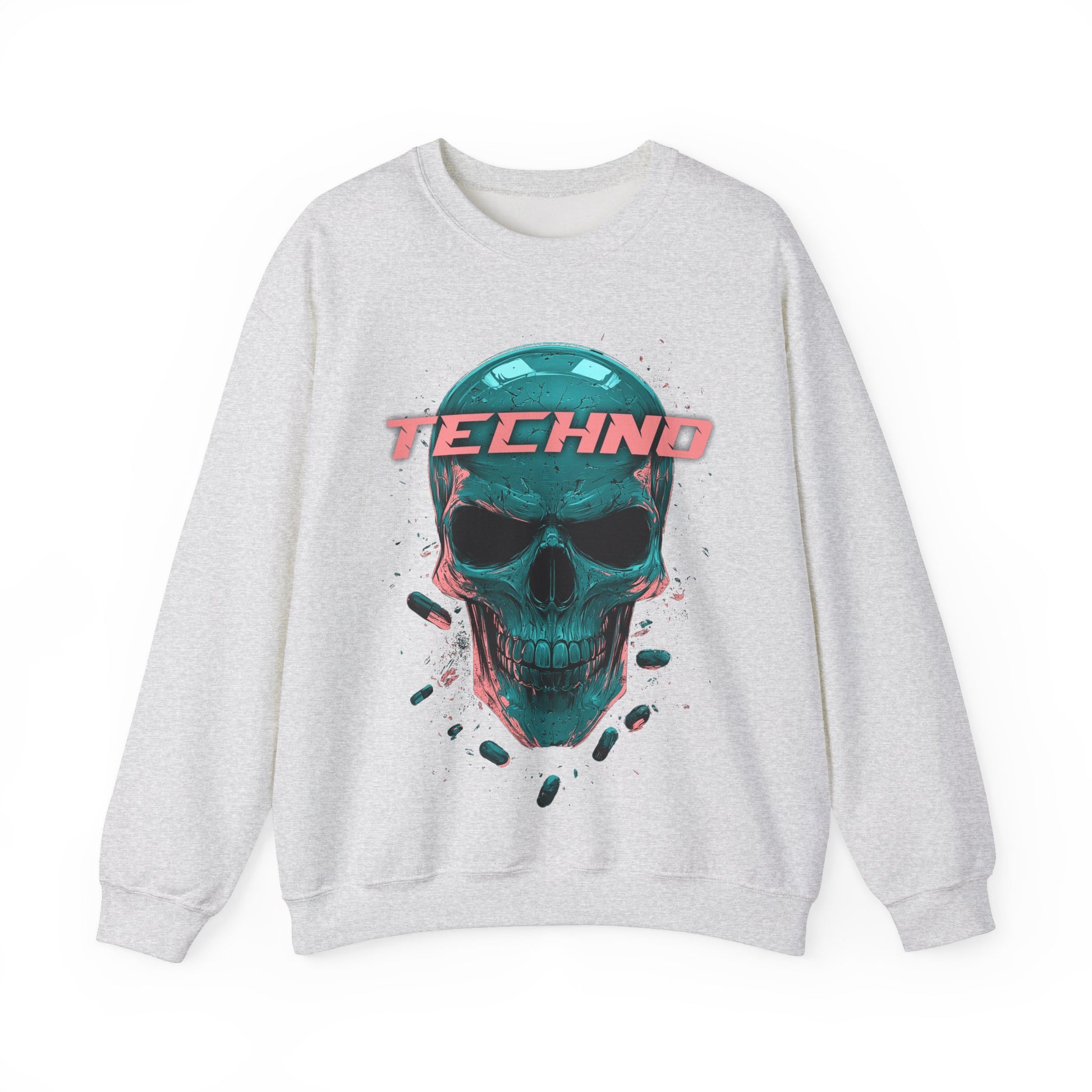 Techno Skullhead Sweatshirt, Edgy Streetwear Jumper, Cool Skull Graphic Pullover, Unisex Crewneck, Rave Fashion Top, Cyberpunk Sweater, Goth