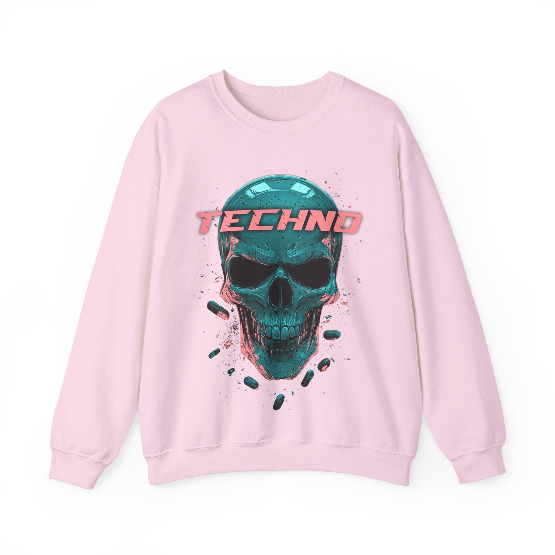 This Techno Skullhead sweatshirt exudes a cool and edgy vibe, making it a perfect addition to any trendy wardrobe. Ideal for adults who love unique and modern designs, this sweatshirt is perfect for Halloween, music festivals, and casual everyday wear.