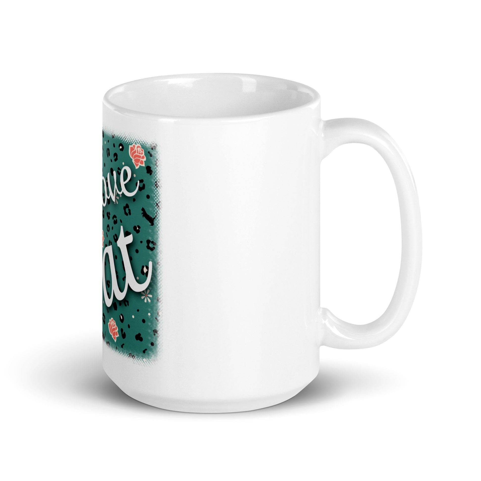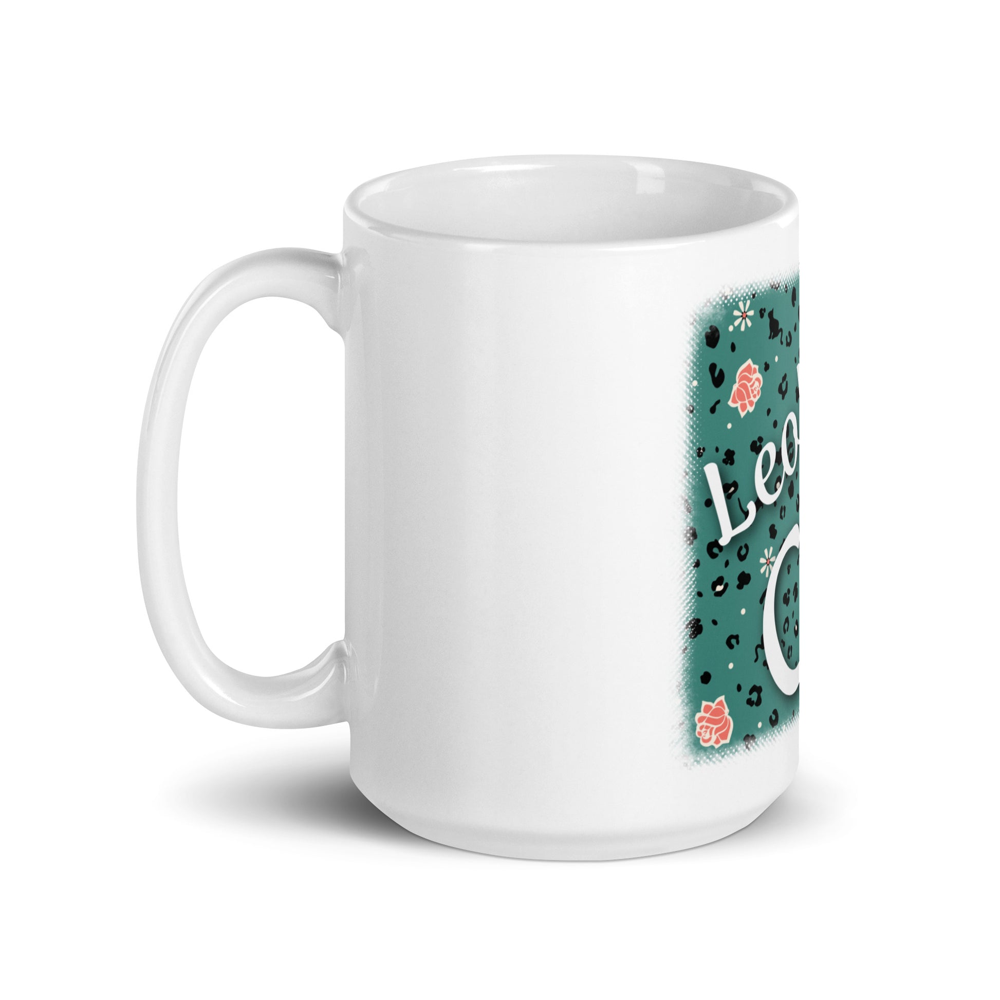 Weiße, glänzende Tasse Leoparden Design "Leo Love Cat"